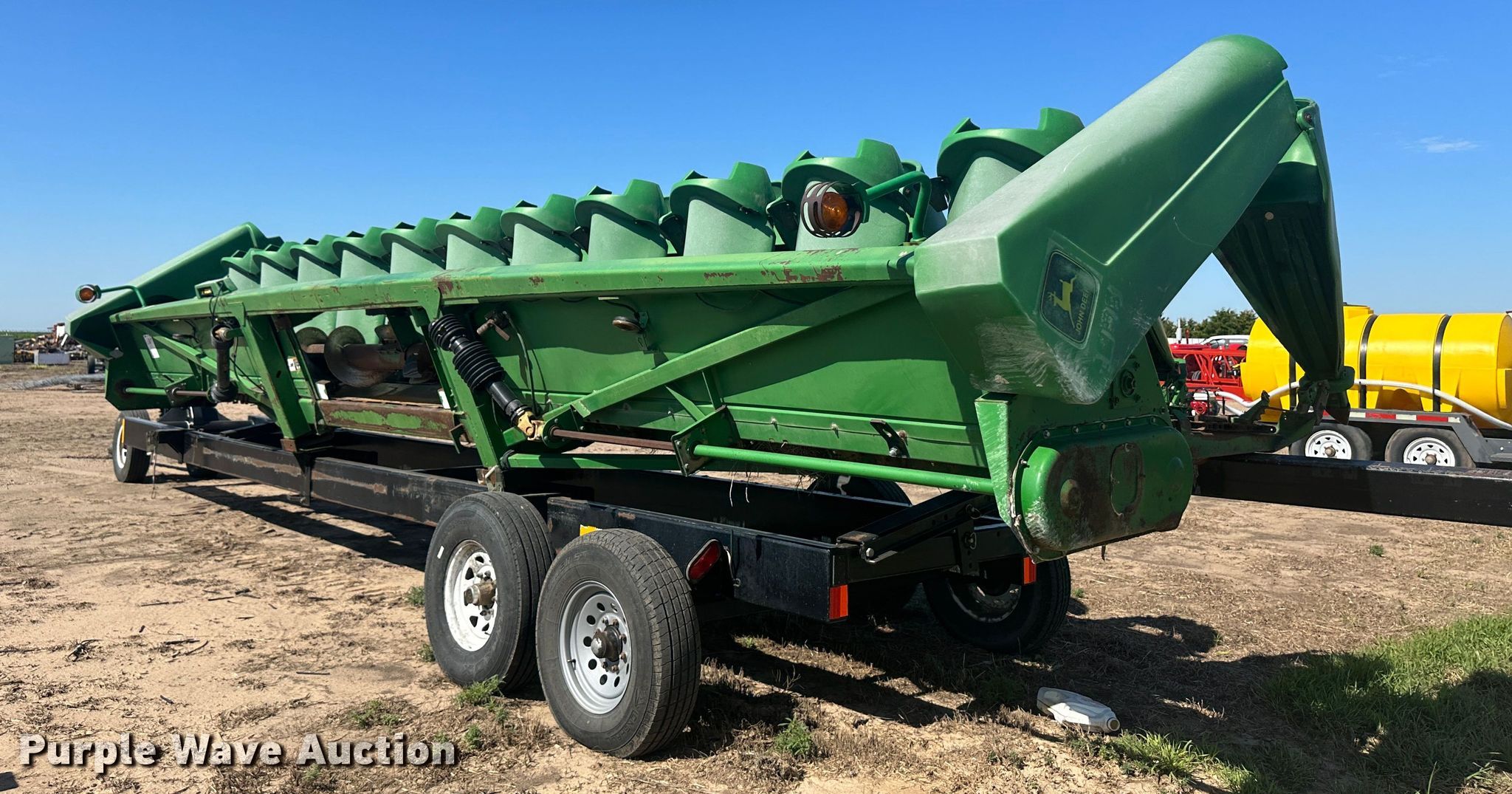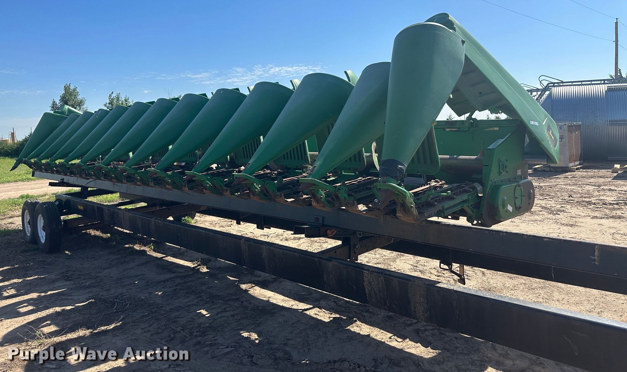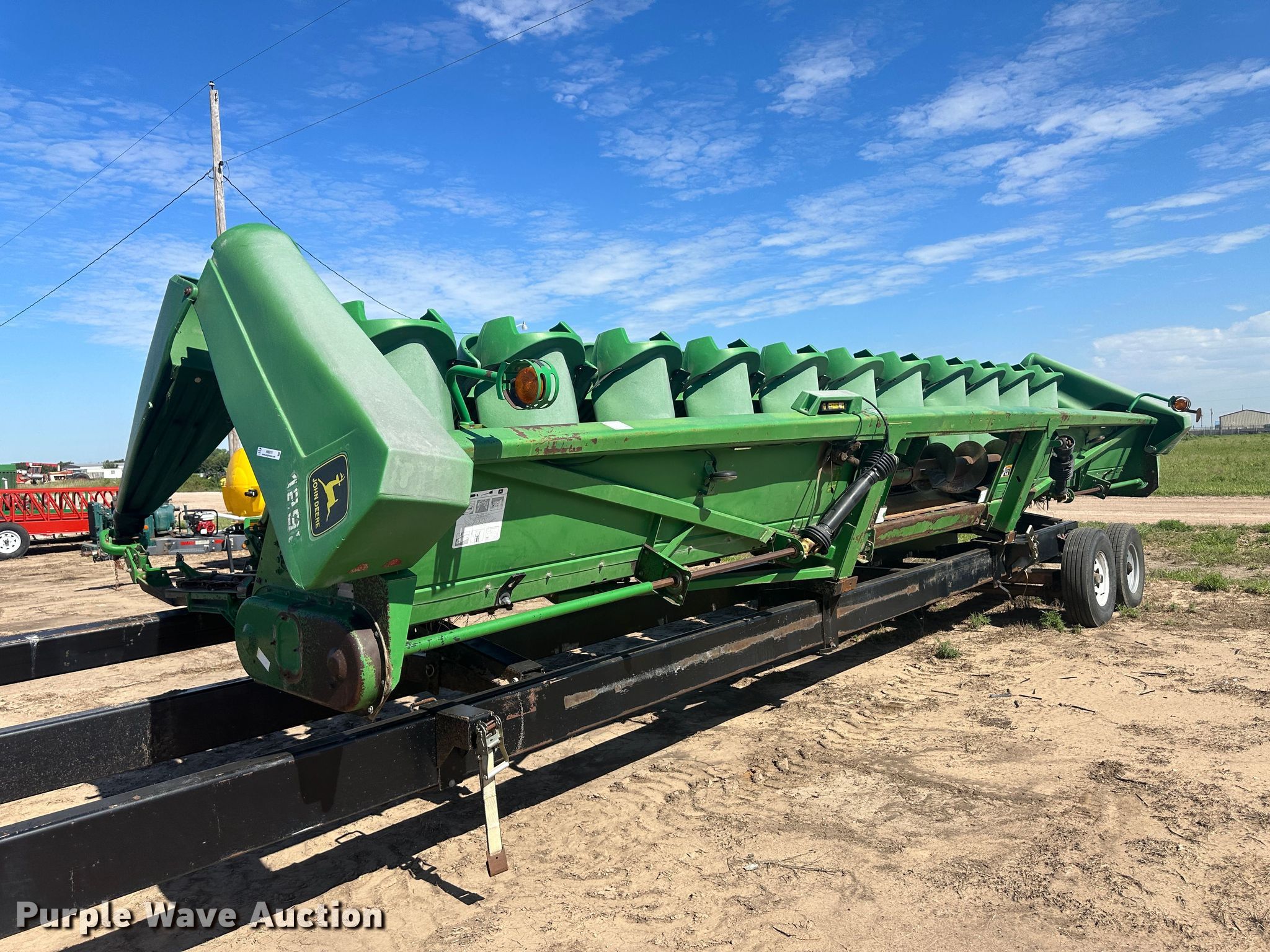 Purple Wave is selling a used Corn or Row Head in Kansas. This item is a 1998 John Deere 1293 corn head with the following: Serial: H01293X675947