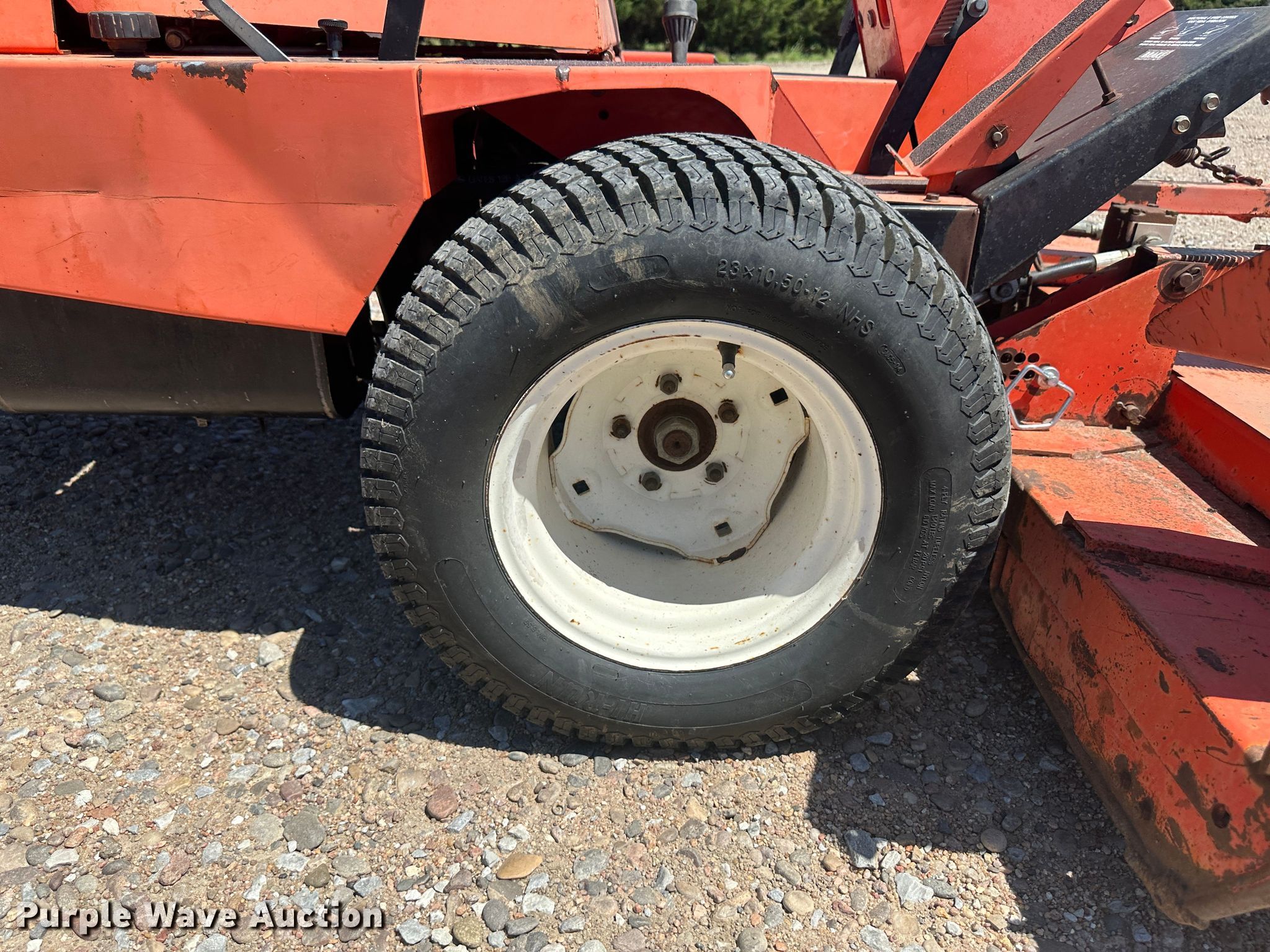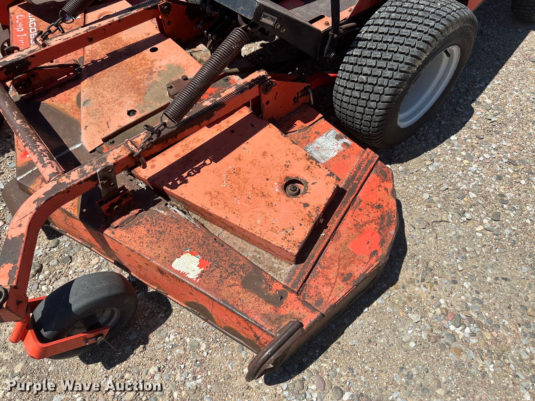 Jacobsen lawn mower. Hours: 2,451, Cutting width: 72". Engine Cylinders: 4, Fuel type: Gas. Transmission Hydrostatic. Features Hydraulic front deck lift. Tires Front: 23x10.50-12, Rear: 16x6.50-8. 1587 Cottonwood. Sublette, KS 67877