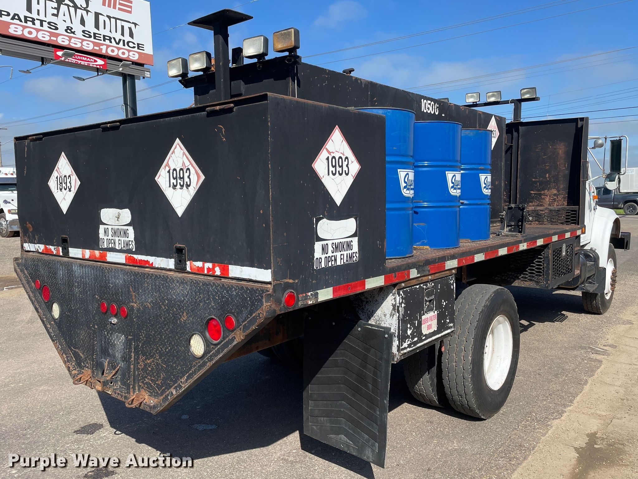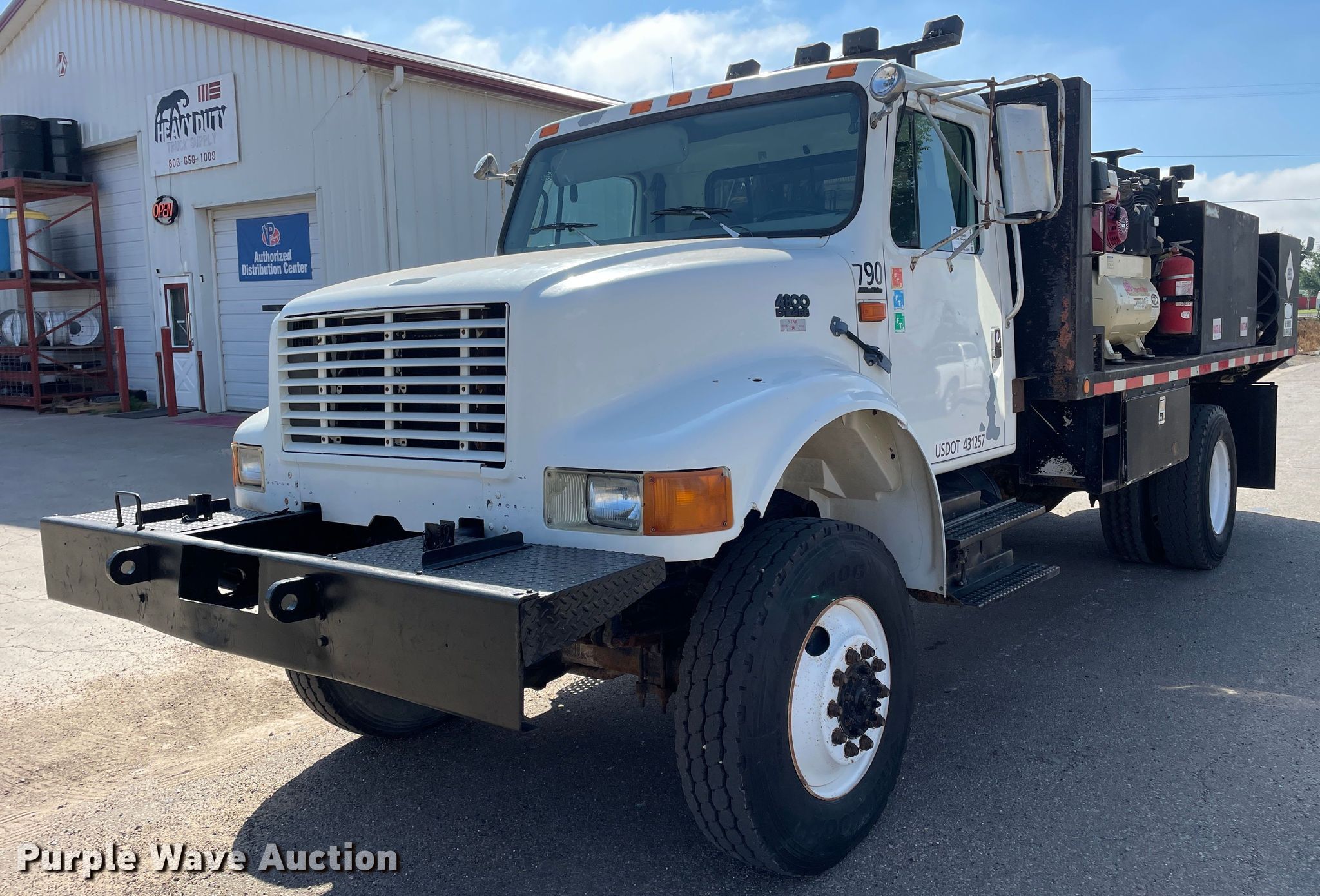 1995 International 4800 fuel / lube truck. Miles: 184,117 on odometer, Hours: 15,327 on meter, VIN: 1HTSEAAN4SH690580. Engine International DT466, Displacement: 7.6L, Cylinders: 6, Fuel type: Diesel. Transmission Automatic. Chassis Four wheel drive, Axles: Single, Suspension: Spring, Brakes: Air. Interior AC, Heat, Cruise control. Features Bed 17' L x 95" W, Air compressor Ingersoll-Rand 2475, Honda GX390, Oil/lube system Hose reels, Nozzles, Pump GPI, Reservoirs Hydraulic fluid, Grease, Used oil, Fuel tank Nozzles, Pump.. Tires Size: 11R22.5. Texas title. Title distribution may be delayed up to 14 days from verification of funds. Mark Sheets Truck Inc... 601 Collard St. Spearman, TX 79081