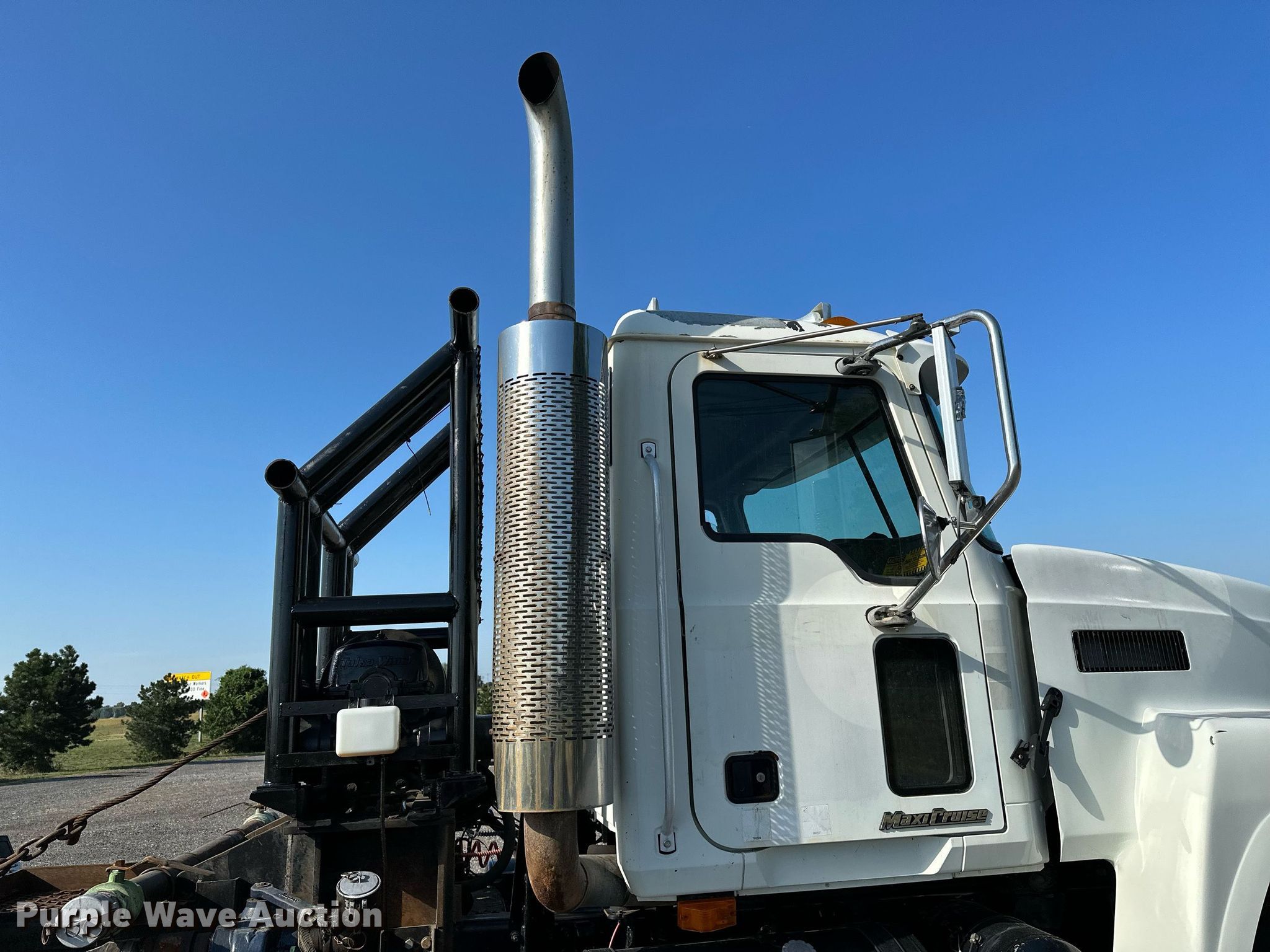 2006 Mack CHN613 semi truck. Miles: 635,692 on odometer, Hours: 23,795 on meter, VIN: 1M1AJ06Y96N005014. Engine Displacement: 12.0L, Cylinders: 6, Fuel type: Diesel, Engine brake. Transmission Mack Maxitorque, Manual, Speed: 10. Chassis Axles: Tandem, Differential lock: Inter-axle, Suspension: Camelback, Brakes: Air, PTO, Wet kit. Interior AC, Heat, Heated mirrors, Cruise control, Air ride cab. Features Deck plate: Steel, Fifth wheel type: Air operated, Sliding, Rolling tailboard, Fuel tank: Dual, Tulsa winch, Masport pump. Tires Size: 11R24.5. Notes Dash warning indicator: ABS, Electrical fault, Possible AC issues, may need charged , Non-operational winch. Oklahoma title. 15107 North 137th East Avenue. Collinsville, OK 74021