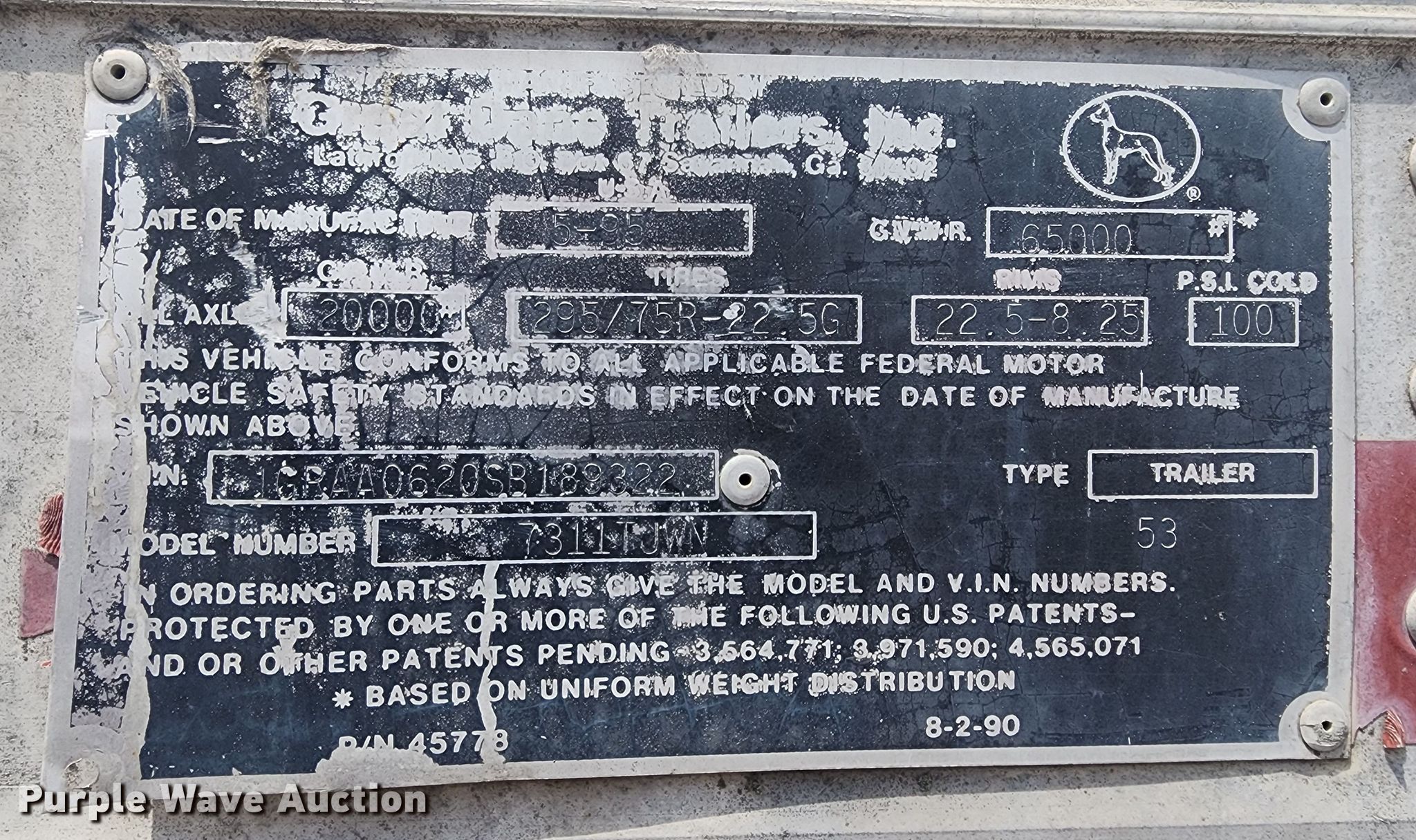 Purple Wave is selling a used Dry Van Trailer in Missouri. This item is a 1995 Great Dane dry van trailer with the following: VIN: 1GRAA0620SB189322