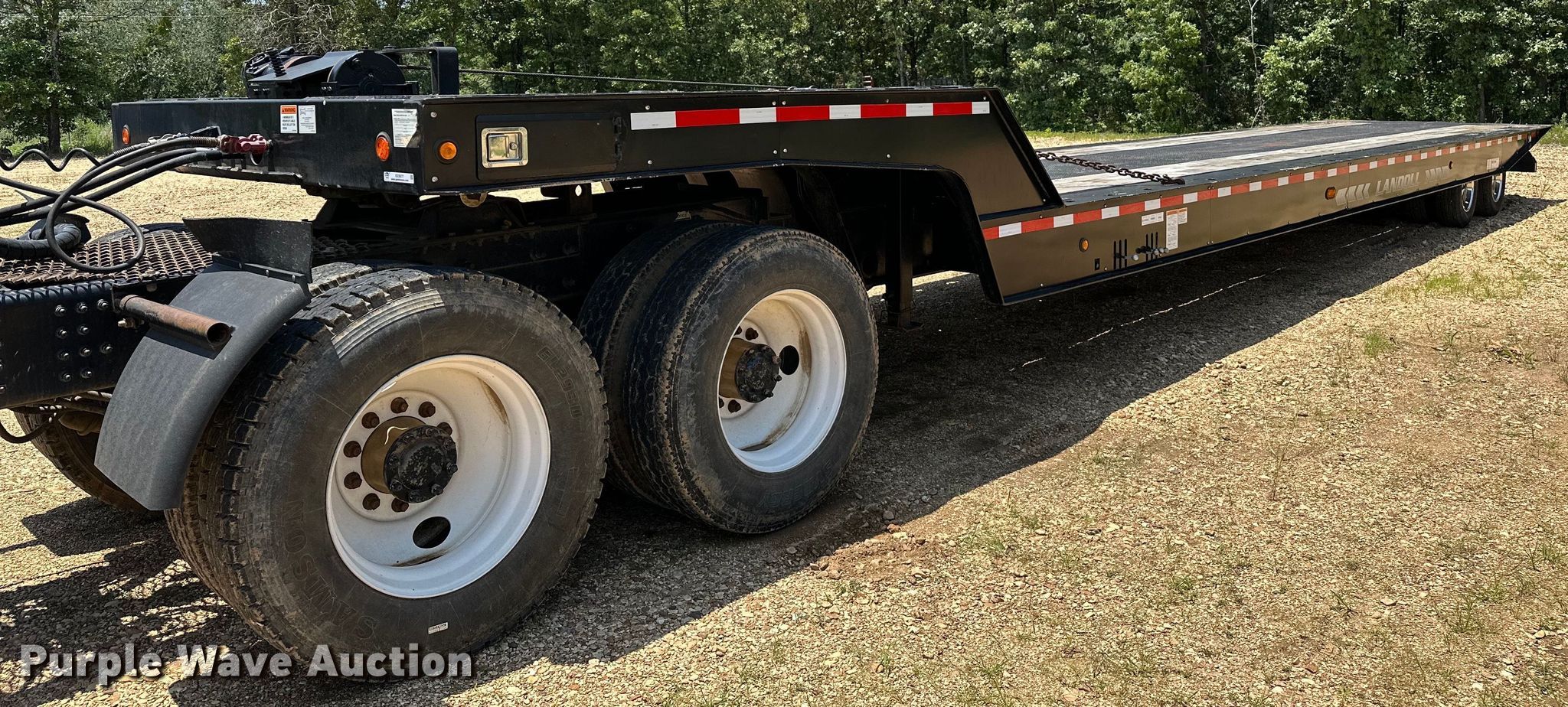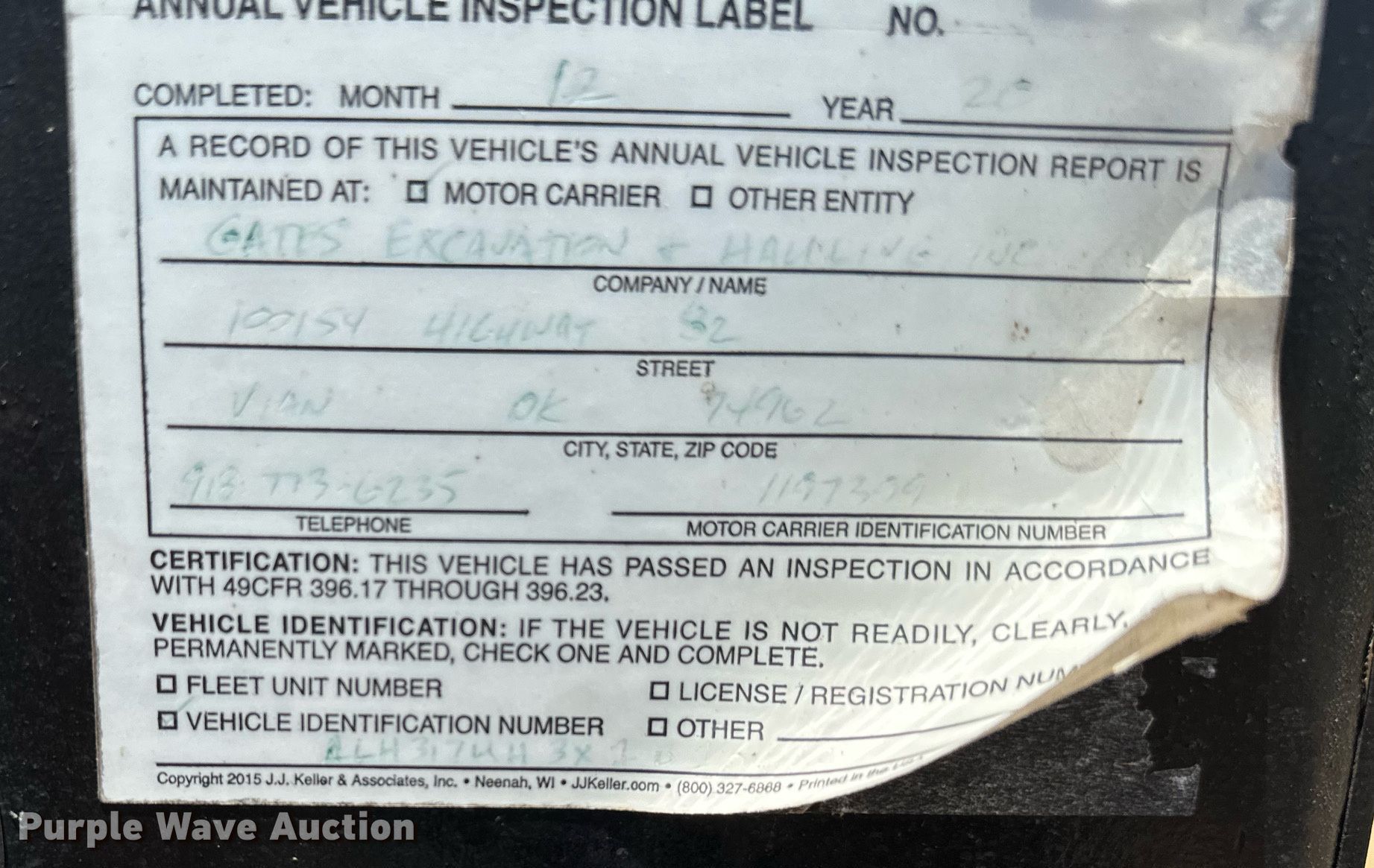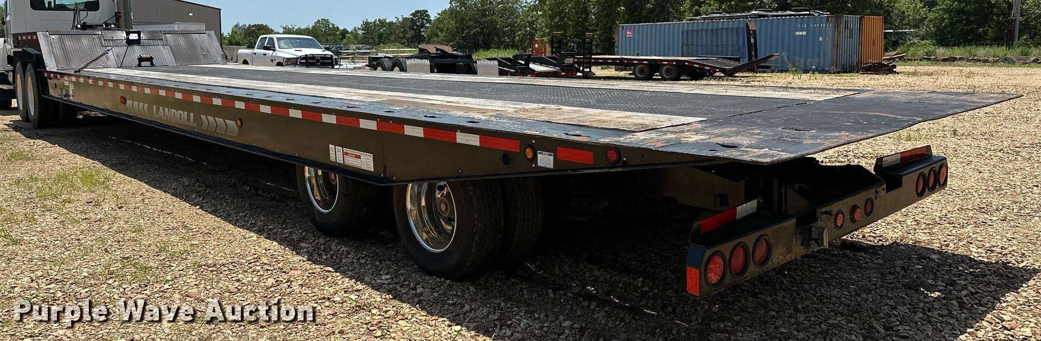 1999 Landoll 317C tilt deck equipment trailer. VIN: 1LH317UH3X1B10422. Dimensions Overall: 47' 8" L x 102" W, Deck: 37' 2" L x 102" W, Top deck length: 8' 6", Deck height: 2' 8". Features Deck type: Steel, Wood, Board size: 7", Winch, Hydraulic controls: Manual. Chassis Landing gear: Dual, Hydraulic, Suspension: Air, Brakes: Air, Axles: Tandem, Sliding. Tires Aluminum wheels, Size: 235/75R17.5. Notes Contents not included, Truck not included. Cherokee Nation title. Title distribution may be delayed up to 14 days from verification of funds. Gates Excavation & Hauling, Inc... 100154 Hwy 82. Vian, OK 74962
