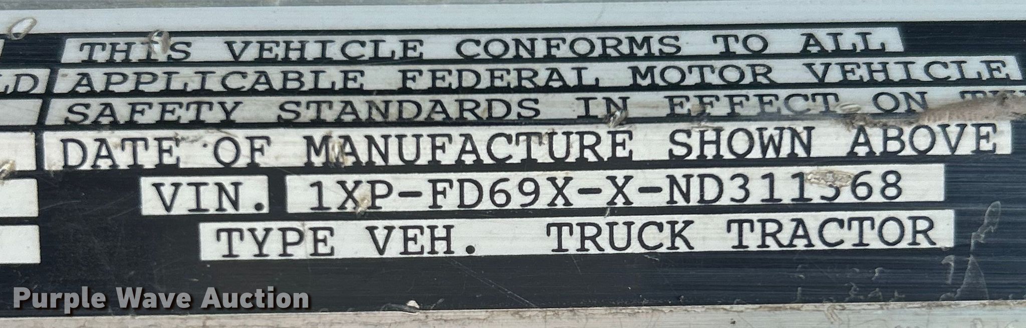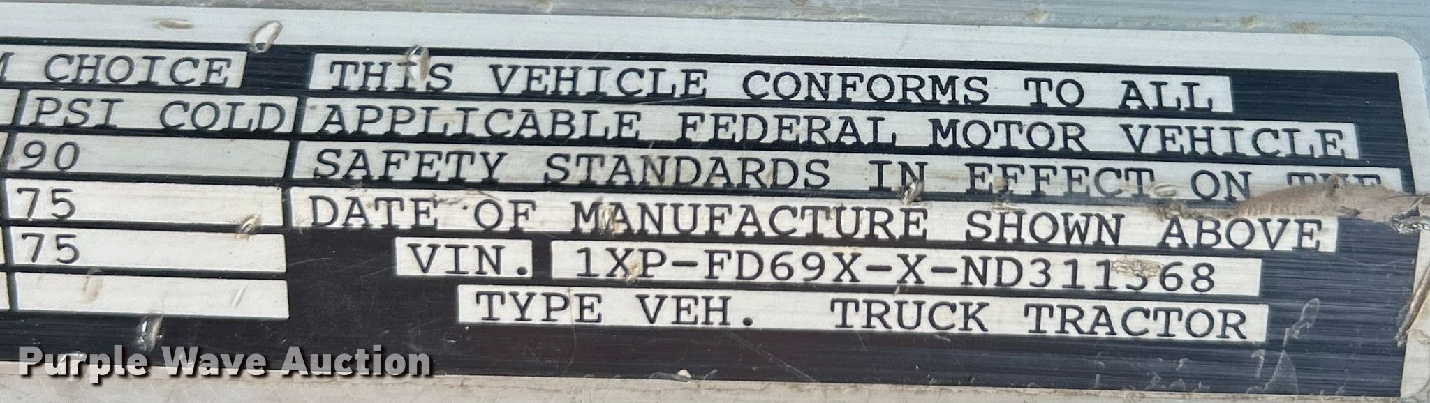 1992 Peterbilt 378 semi truck. Miles: 631,508 on odometer, VIN: 1XPFD69XXND311368. Engine Cummins N14, Displacement: 14.0L, Cylinders: 6, Fuel type: Diesel. Transmission Eaton Fuller, Manual, Speed: 10. Chassis Axles: Tandem, Differential lock: Inter-axle, Suspension: Air, Brakes: Air, PTO, GVWR: 52,000 lbs FAWR: 12,000 lbs, IAWR: 20,000 lbs, RAWR: 20,000 lbs, Wheelbase: 208". Interior AC, Heat, Heated mirrors, Cruise control. Features Deck plate: Aluminum, Fifth wheel type: Air operated, Sliding, Fuel tank: Single. Tires Front: 285/75R22.5, Rear: 11R24.5. Notes Non-operational PTO, lines missing. Illinois title. Title distribution may be delayed up to 14 days from verification of funds. Freeburg, IL 62243