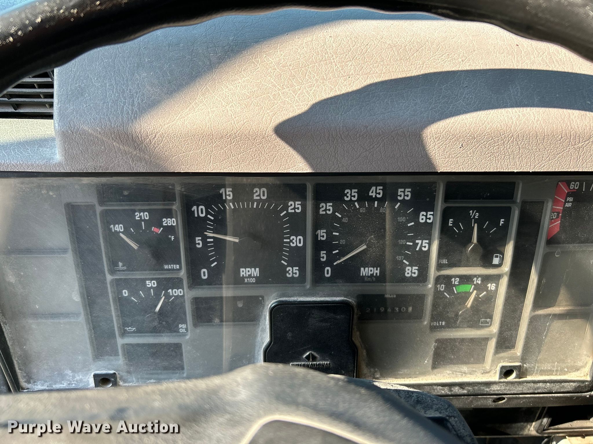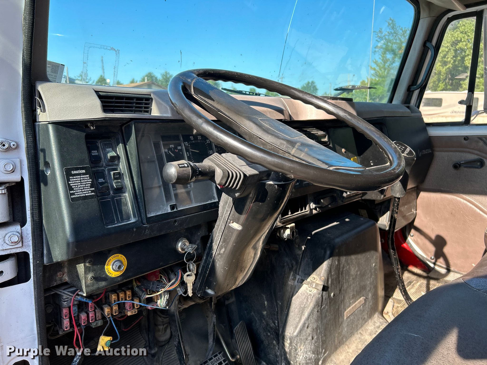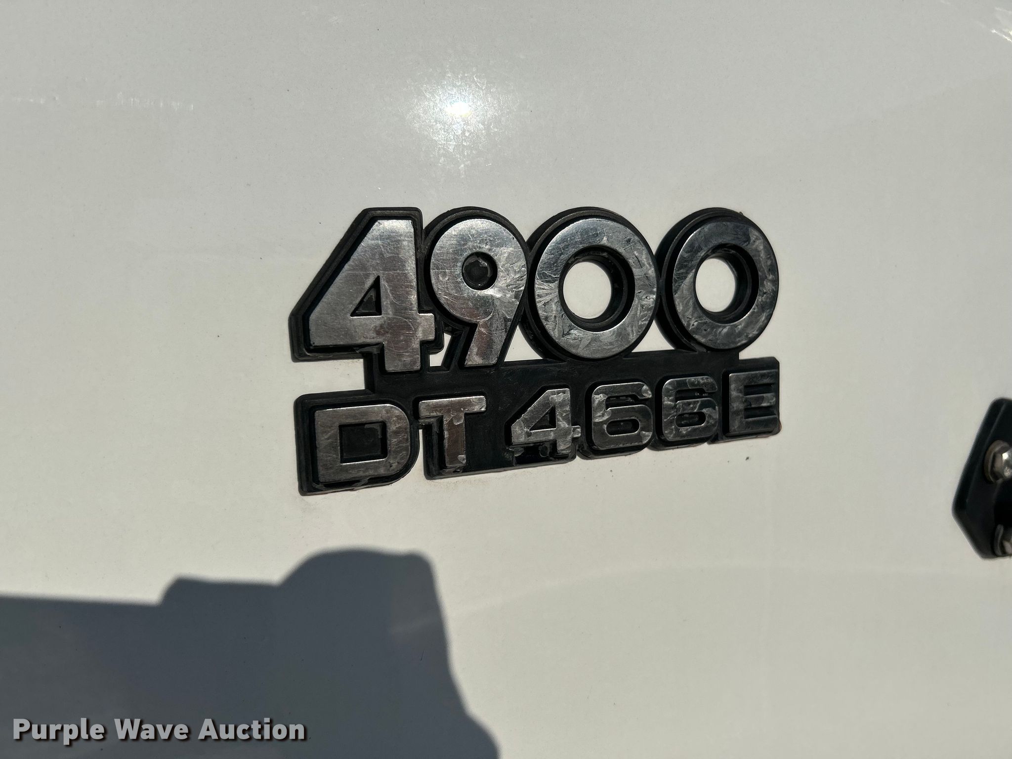1999 International 4900 Crew Cab truck cab and chassis. Miles: 219,431 on odometer, VIN: 1HTSDAAL7XH694499. Engine International B195, Displacement: 7.6L, Cylinders: 6, Fuel type: Diesel. Transmission Spicer, Manual, Speed: 5. Chassis Double frame, Axles: Single, Suspension: Air, Brakes: Air, Truck chassis: 19' 6", Wheelbase: 266". Interior AC, Heat, Heated mirrors, Cruise control. Features Fuel tank: Dual. Tires Size: 11R22.5. Notes Windshield chipped or cracked. Missouri title. Title distribution may be delayed up to 14 days from verification of funds. Summit Plastering LLC. Overland, MO 63114