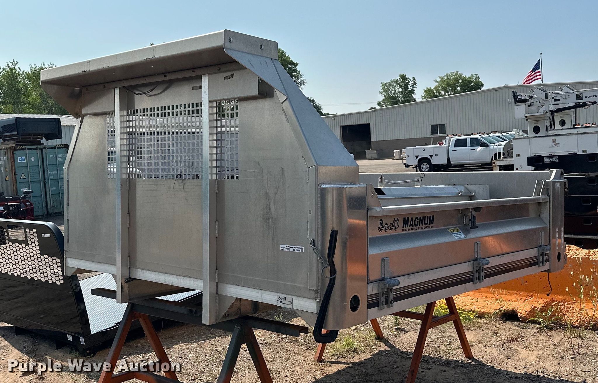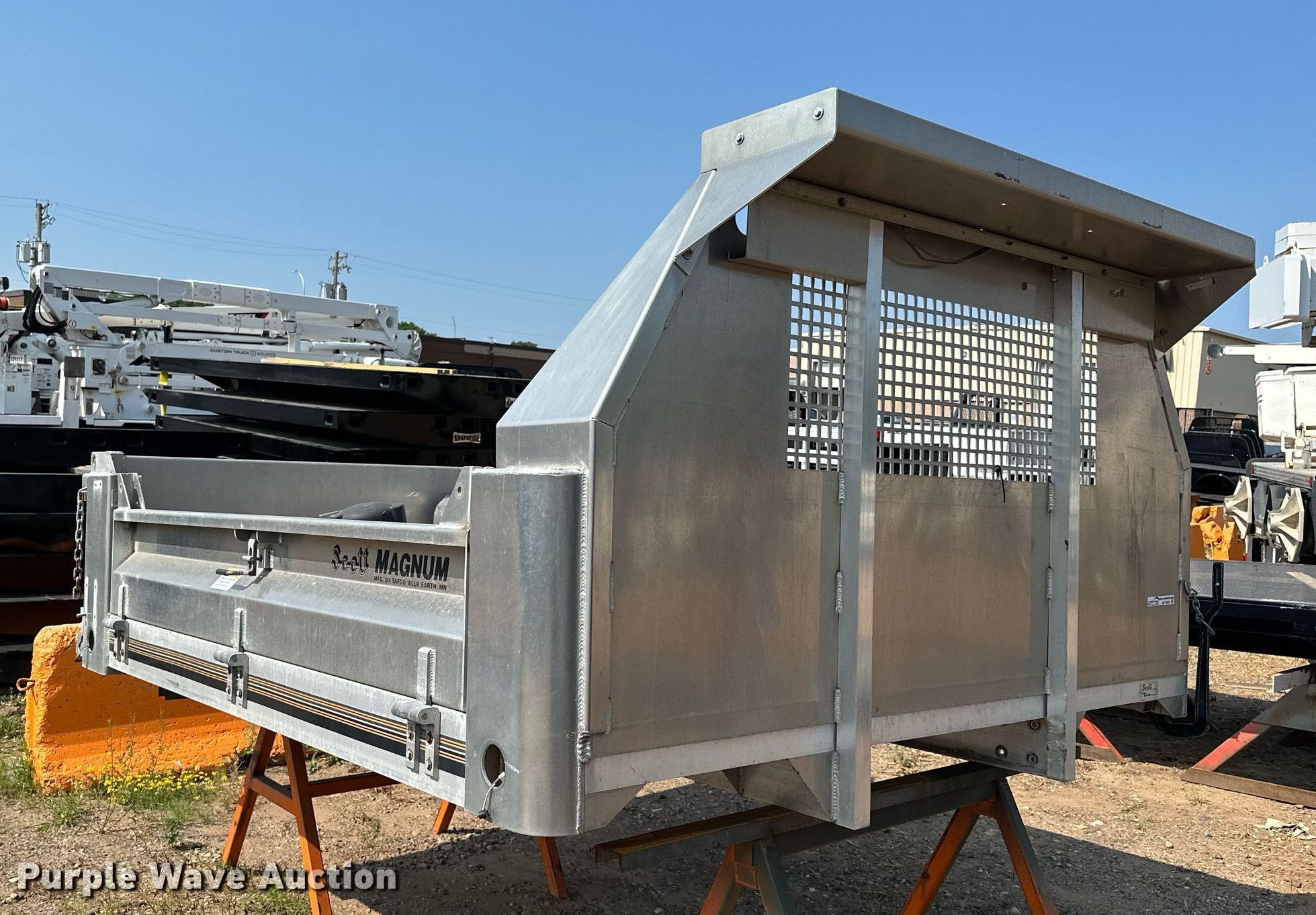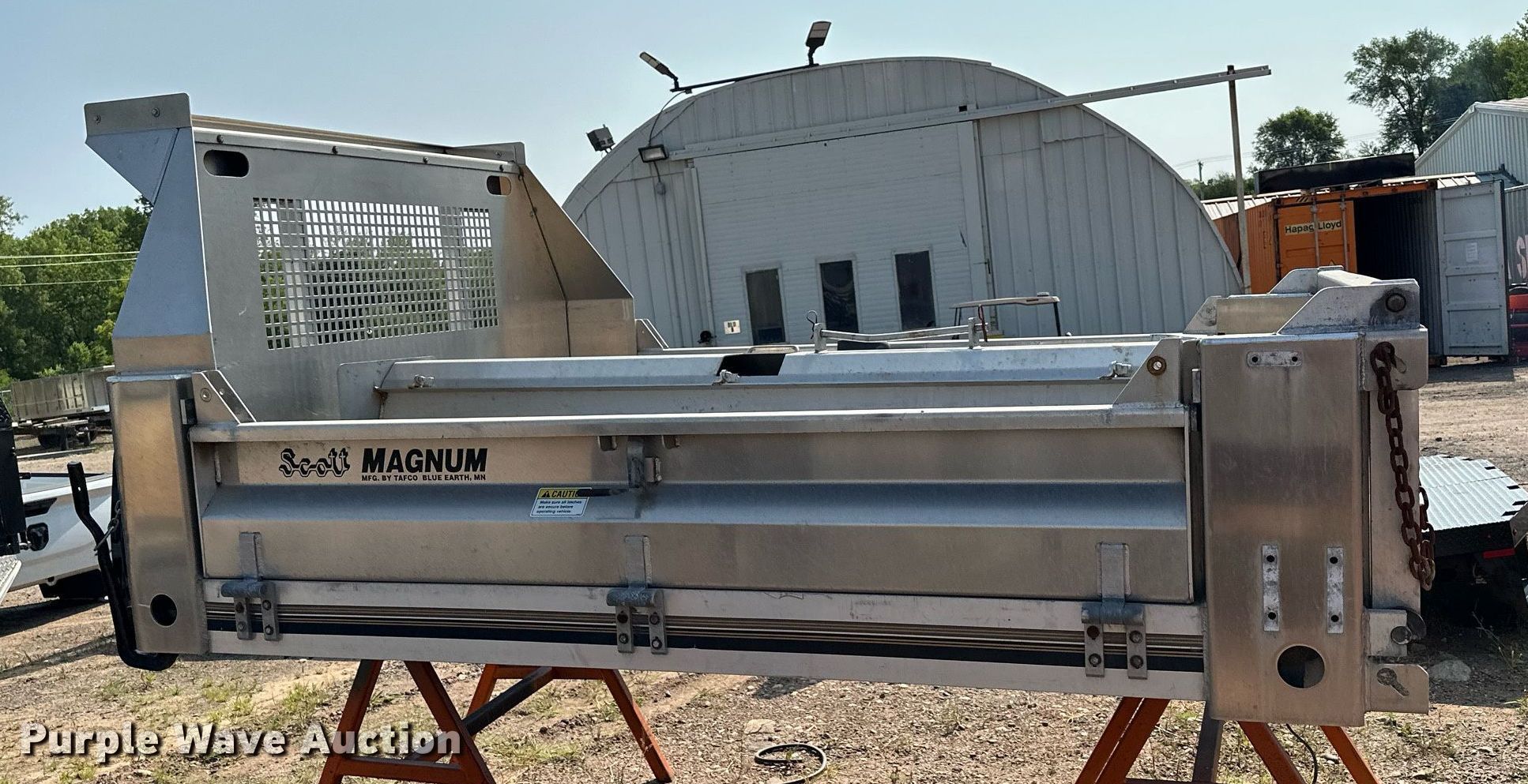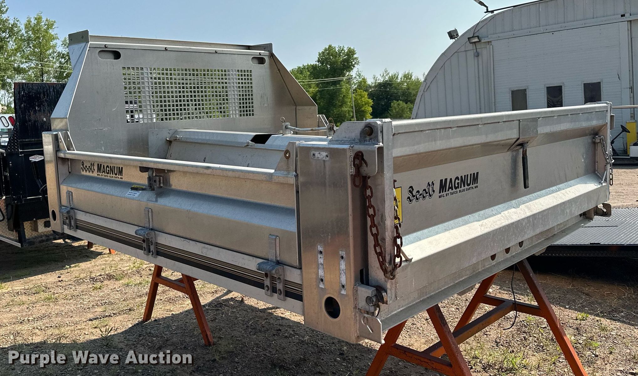 Purple Wave is selling a used Truck Part and Attach. in Minnesota. This item is a Tafco Magnum flatbed with the following: 112" L x 97" W, Drop down sides, Manual end gate, Spreader, Unused