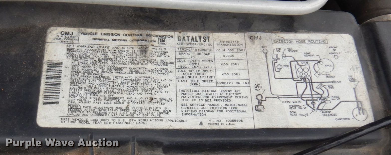1988 Chevrolet Monte Carlo SS. Miles: 17,305 on odometer Actual mileage unknown, VIN: 1G1GZ11G2JP103797. Engine Displacement: 5.0L V8 OHV, Cylinders: 8, Fuel type: Gas. Transmission Automatic. Interior AC, Heat, Power windows, Power locks, Cruise control. Tires Size: 215/65R15. Wisconsin title. Title distribution may be delayed up to 14 days from verification of funds. Mileage has not been verified. Exempt will be written in the odometer disclosure on the title. E7015 Kutchenriter Road. Clintonville, WI 54929