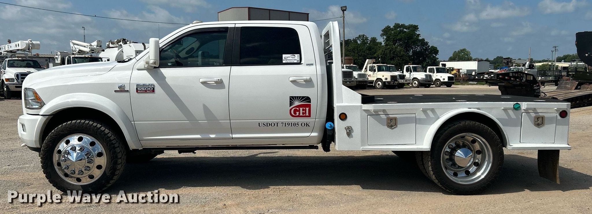 Purple Wave is selling a used Flat Bed Truck in Oklahoma. This item is a 2012 Dodge Ram 5500HD Crew Cab flatbed pickup truck with the following: Miles: 297,458 on odometer, VIN: 3C7WDNEL0CG264059