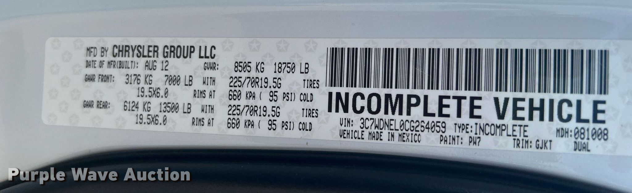 - VIN: 3C7WDNEL0CG264059