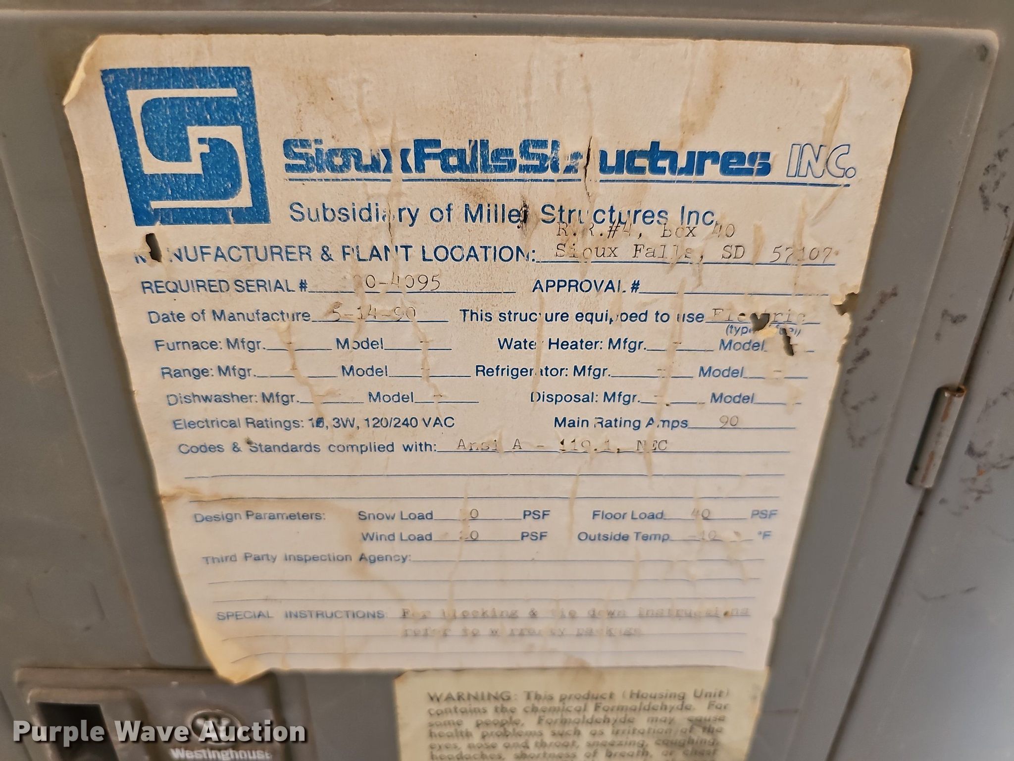 Purple Wave is selling a used Manufactured Home or Office in Kansas. This item is a 1990 Miller Structures Jobsite office trailer with the following: VIN: 304095