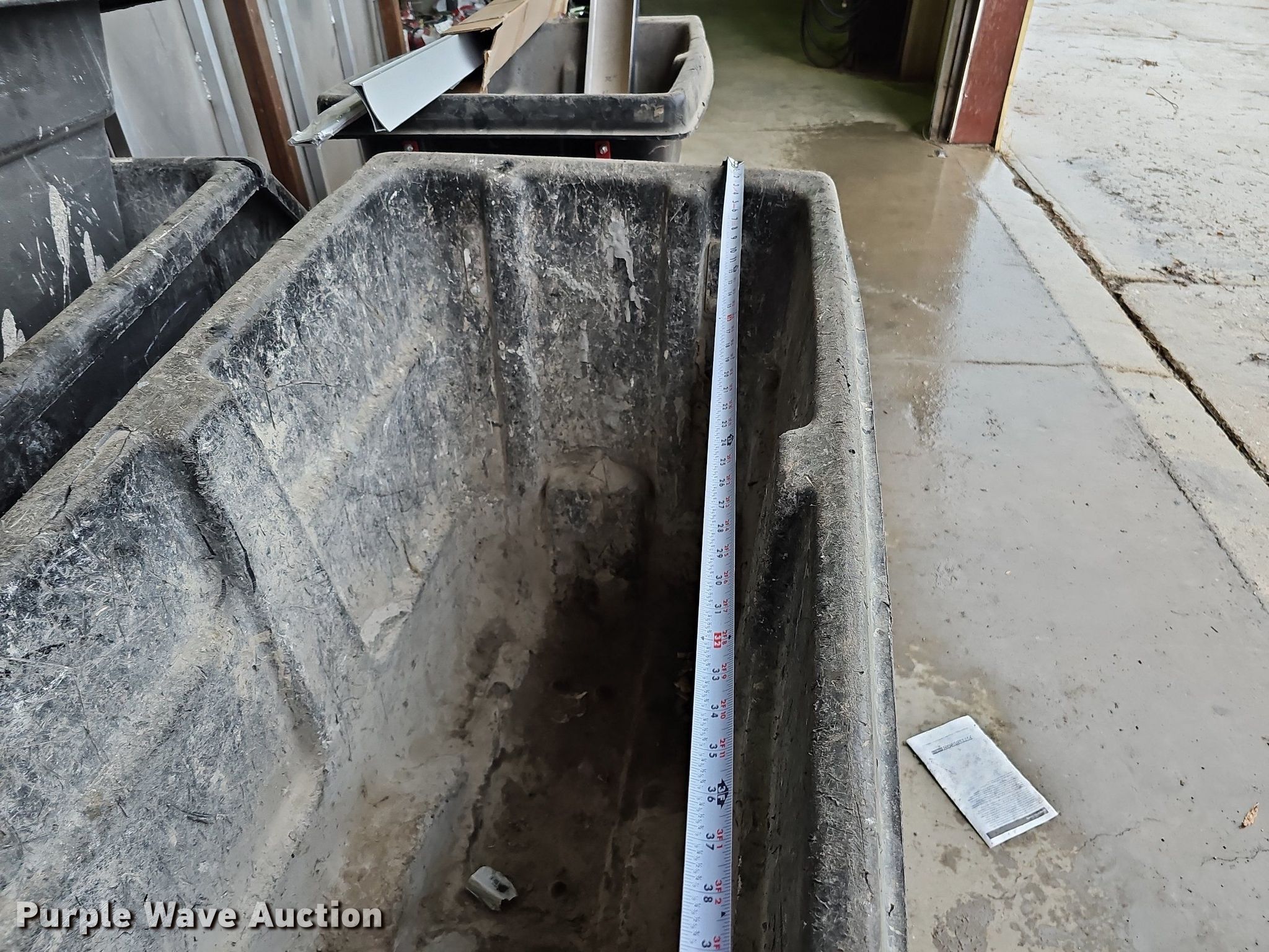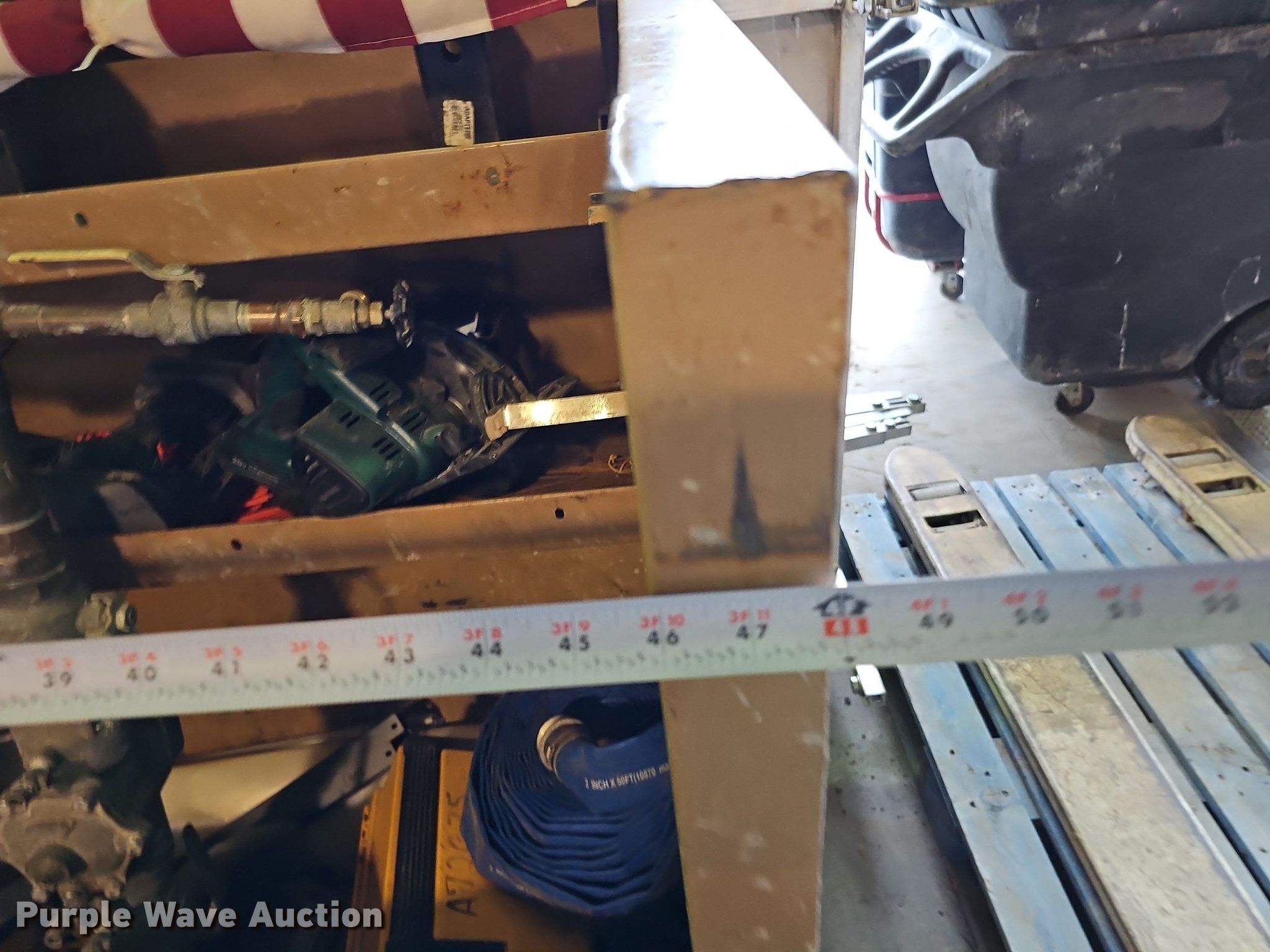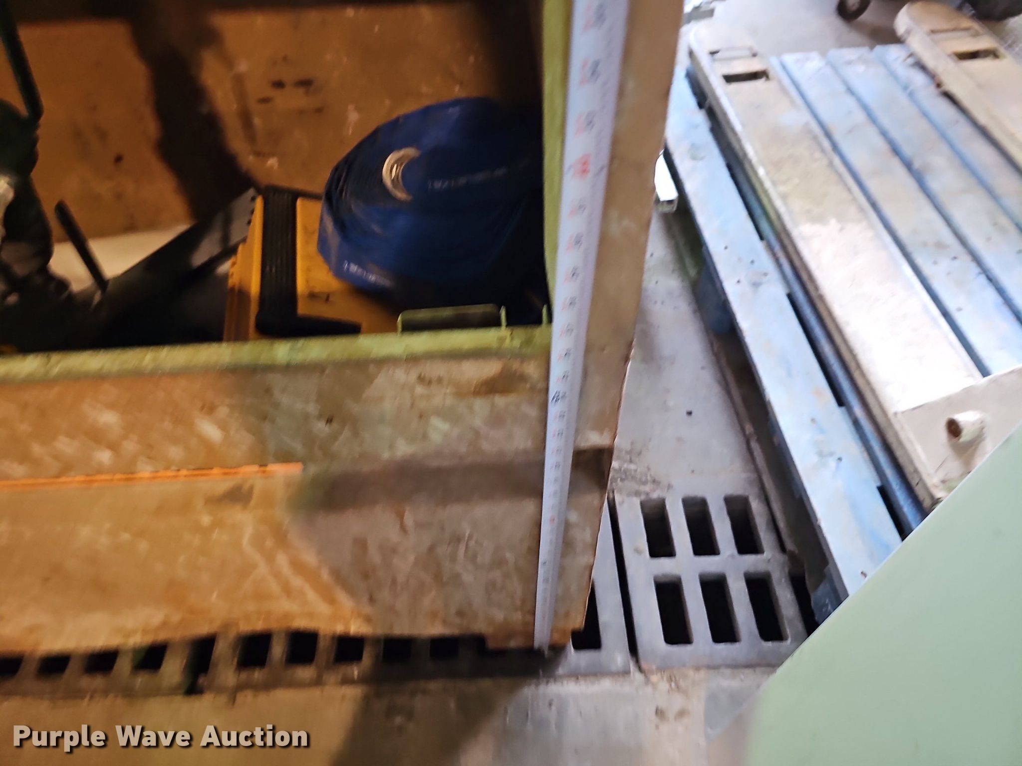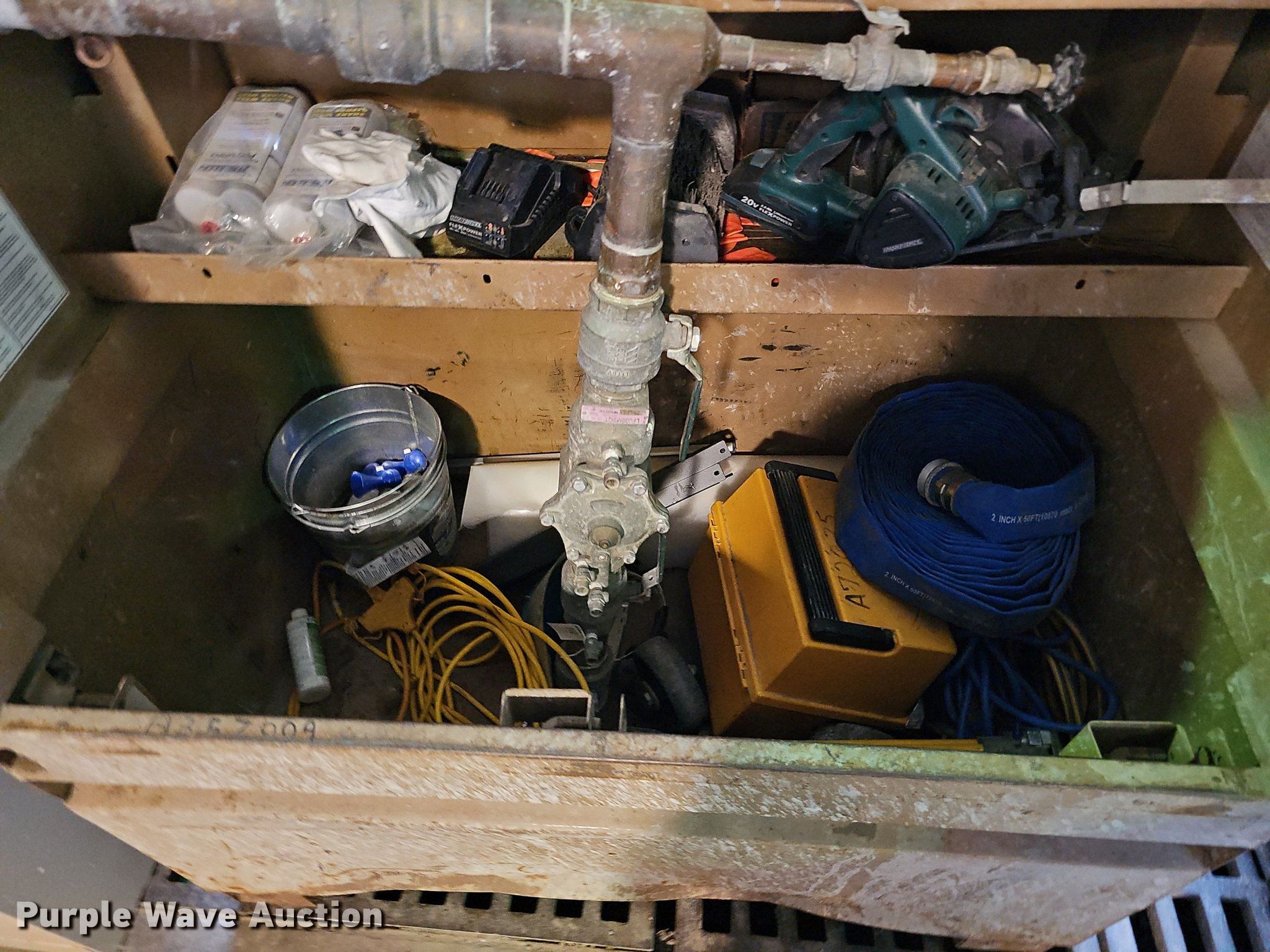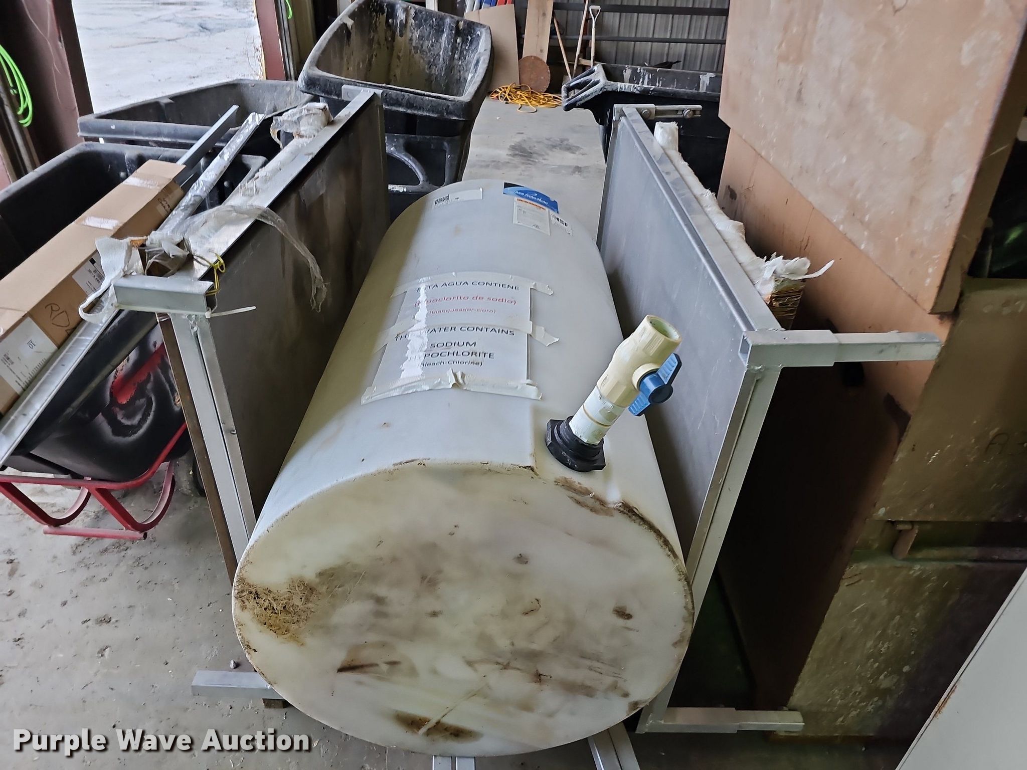 Purple Wave is selling a used Tools in Nebraska. This item is a Tools with the following: Knaack 79 tool box, 48"W x 30"D x 49"H, Contents included, 15"W x 25"D x 52"H filing cabinet, Avanti mini fridge, Volts: 110, Jet 48"L pallet dolly, (5) Rubbermaid refuse carts, 175 gallon poly tank, 54" H x 32" D, (2) stands, 60"L x 40"W x 5"H