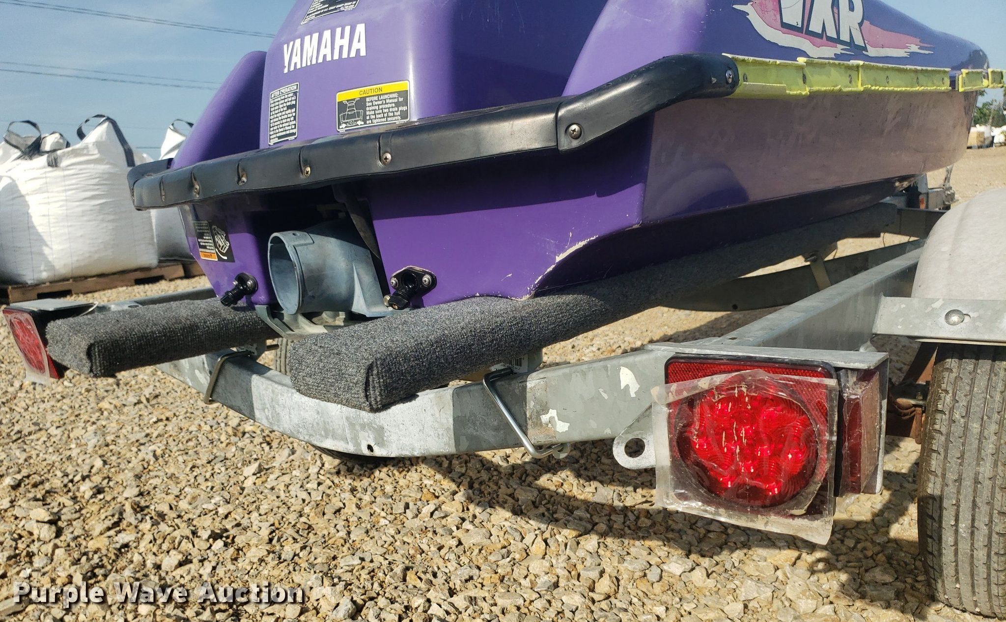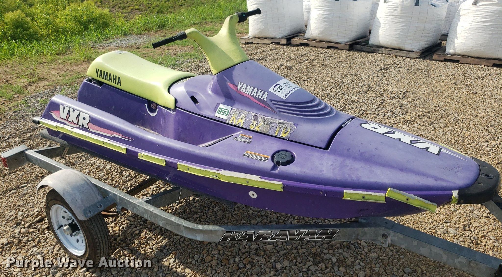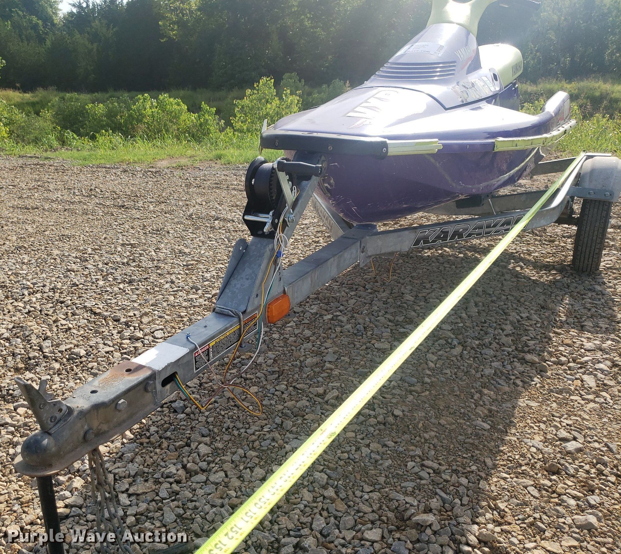 Yamaha VXR personal watercraft. Hours: Unknown, Hull ID: YAMA1060K394. Engine Engine type: Inboard, Displacement: 650, Cylinders: 2, Fuel type: Gas. Operators station Capacity Person: 2. Trailer Karavan, Overall length: 12', Overall width: 56", Ball hitch size: 2", Axles: Single, Tire size: 4.80R12. Notes Non-operational unit. Transfer of ownership documentation will be a bill of sale. 15550 E Kellogg St. Wichita, KS 67230