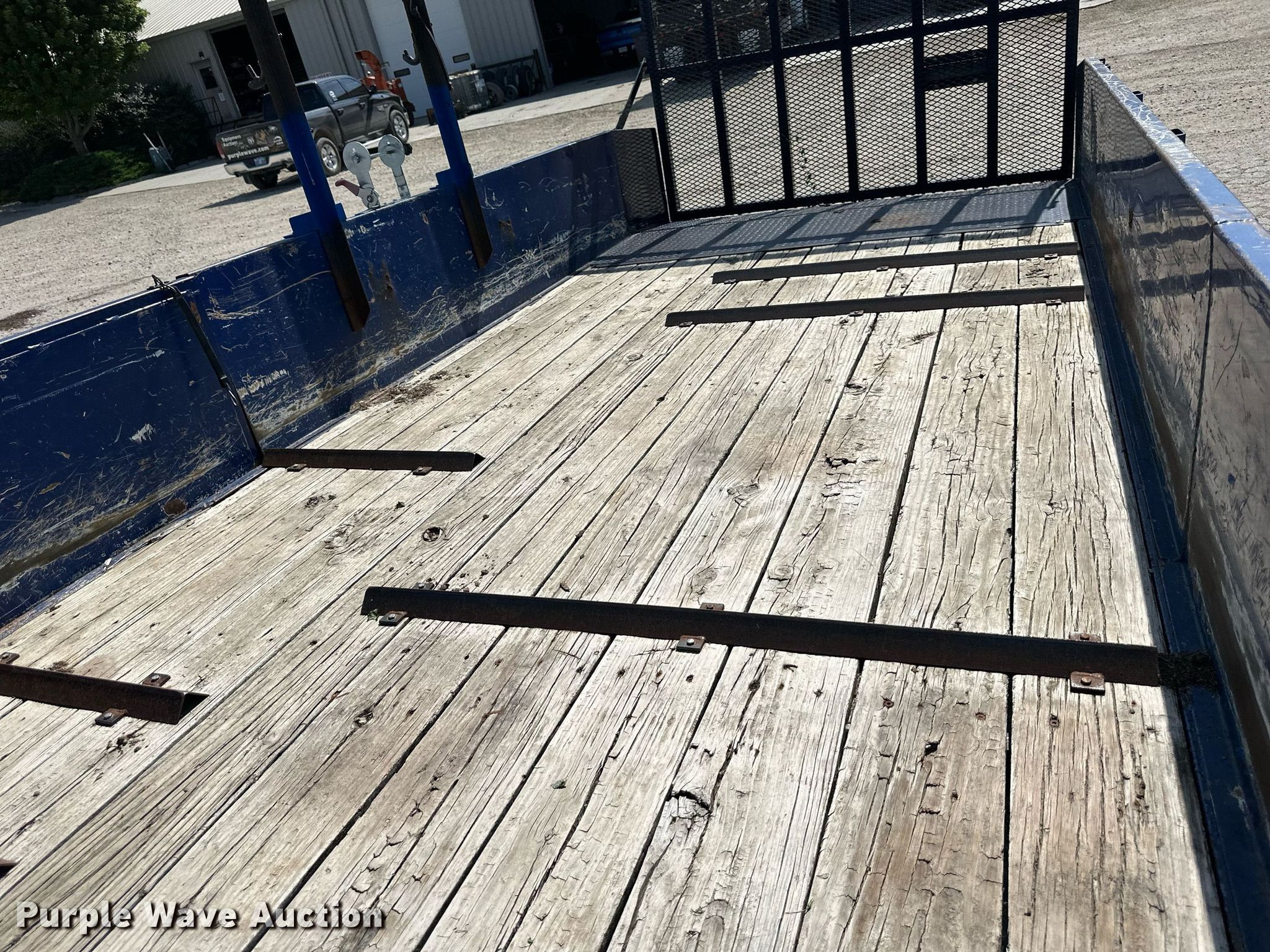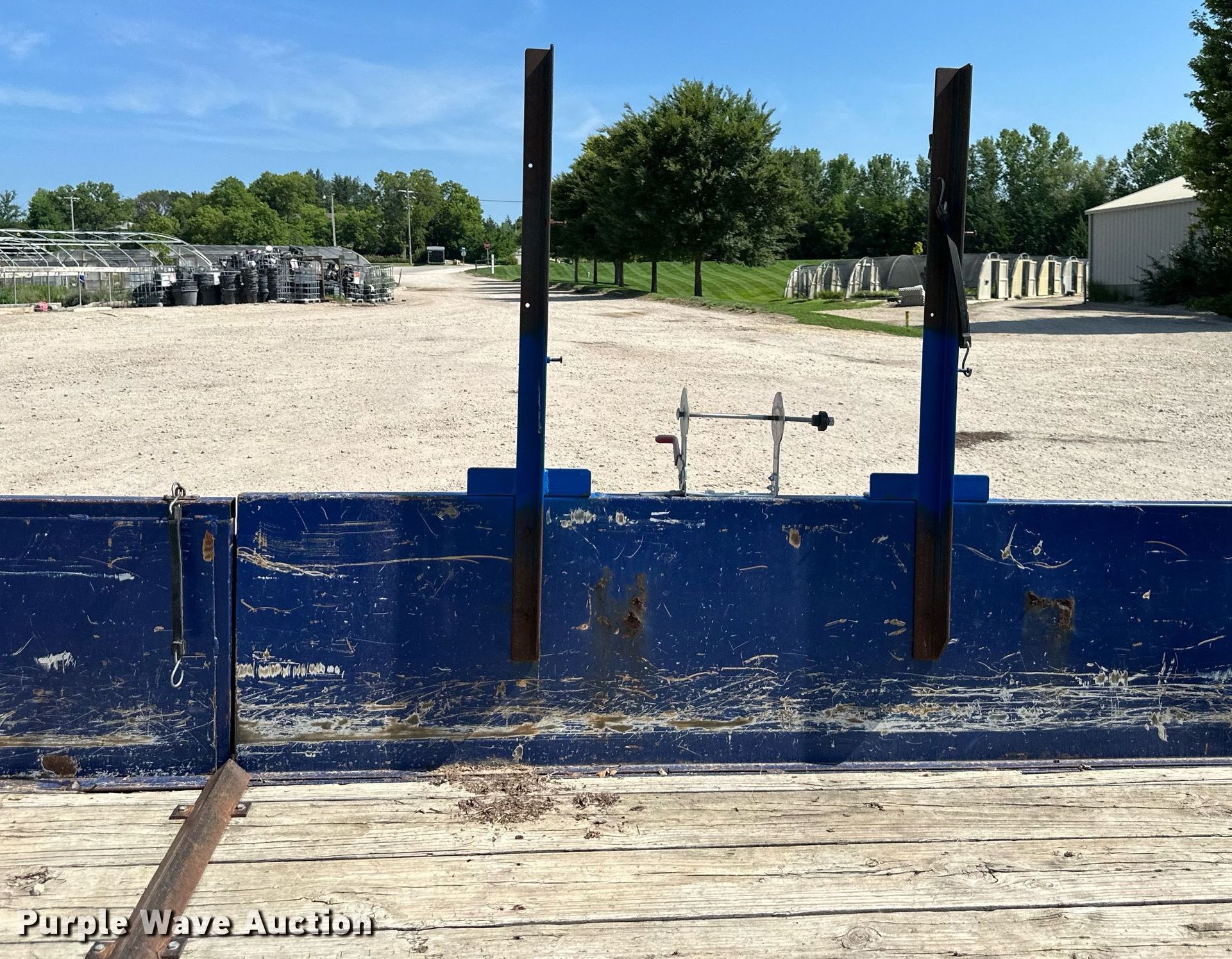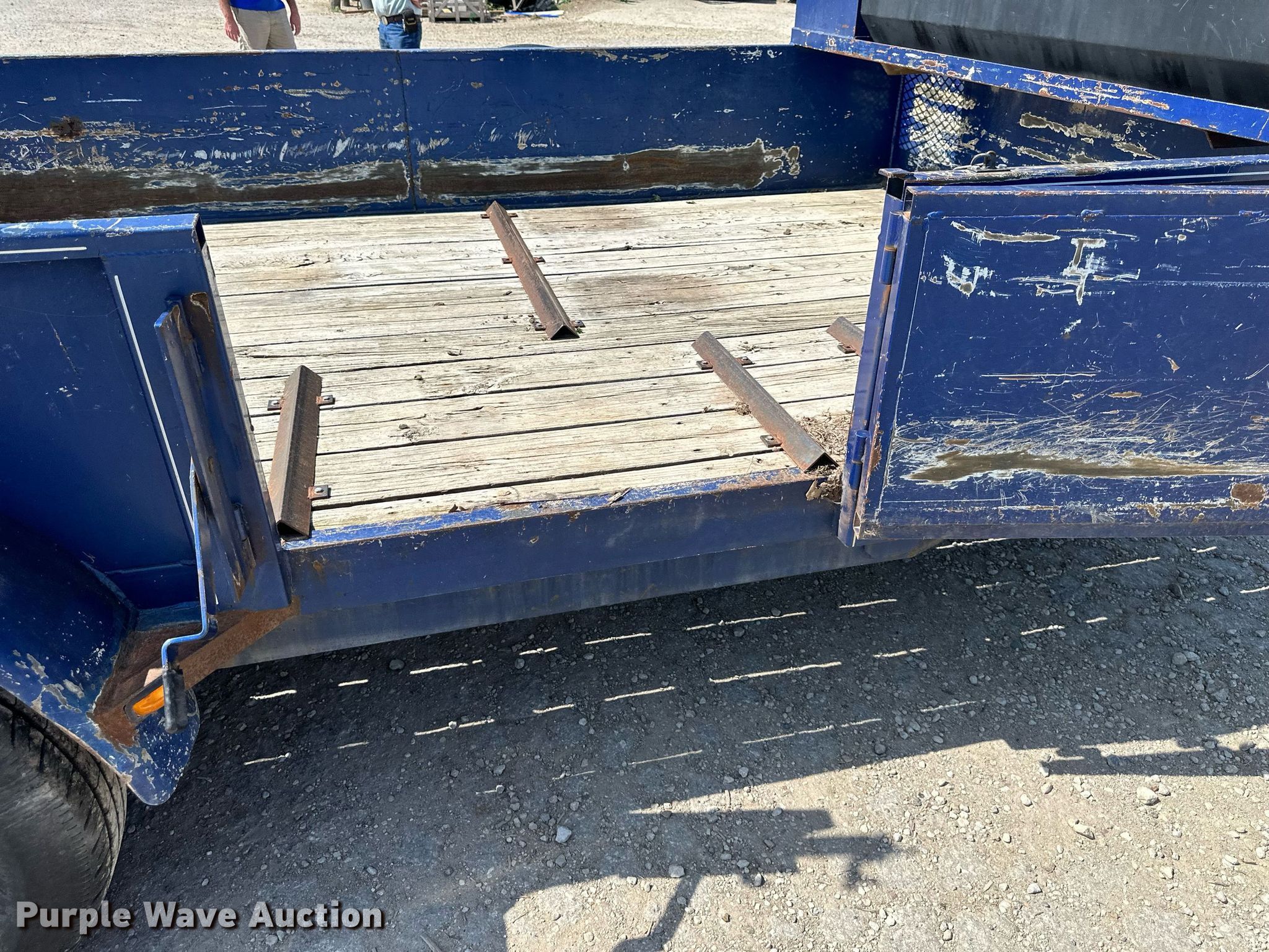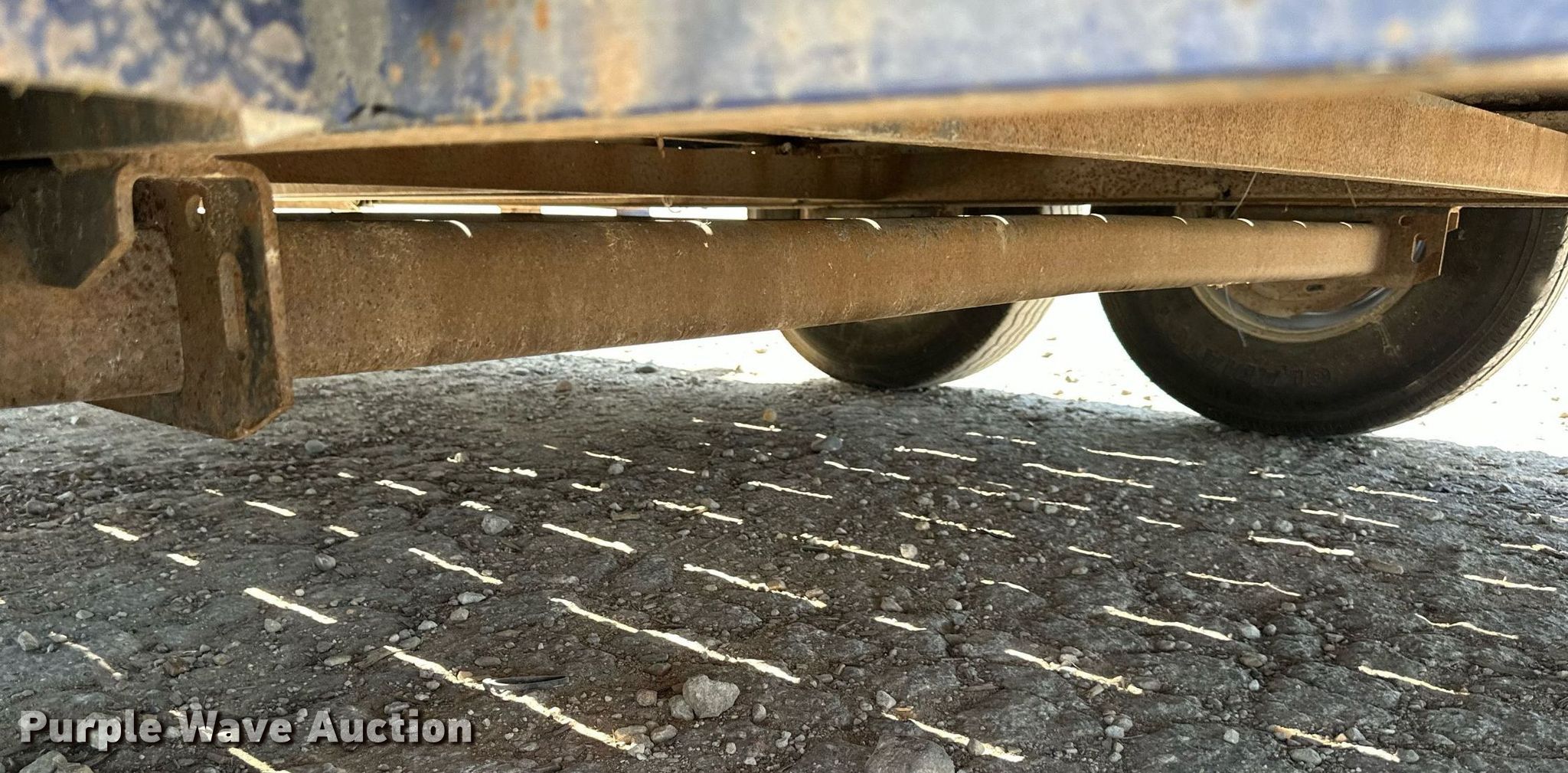 2005 Titan 4875 utility trailer. VIN: 4TGF1820351037520. Dimensions Overall: 22' L x 102" W, Deck: 16' L x 81" W, Tail length: 2', Ramps: Manual Length: 6'. Features Deck type: Wood. Chassis Hitch: Pintle, Landing gear: Single, Suspension: Spring, Brakes: Electric, Axles: Tandem, GVWR: 14,000 lbs. Tires Steel wheels, Size: 235/85R16. Kansas title. Title distribution may be delayed up to 14 days from verification of funds. Blueville Landscape. 4539 Anderson Avenue. Manhattan, KS 66503