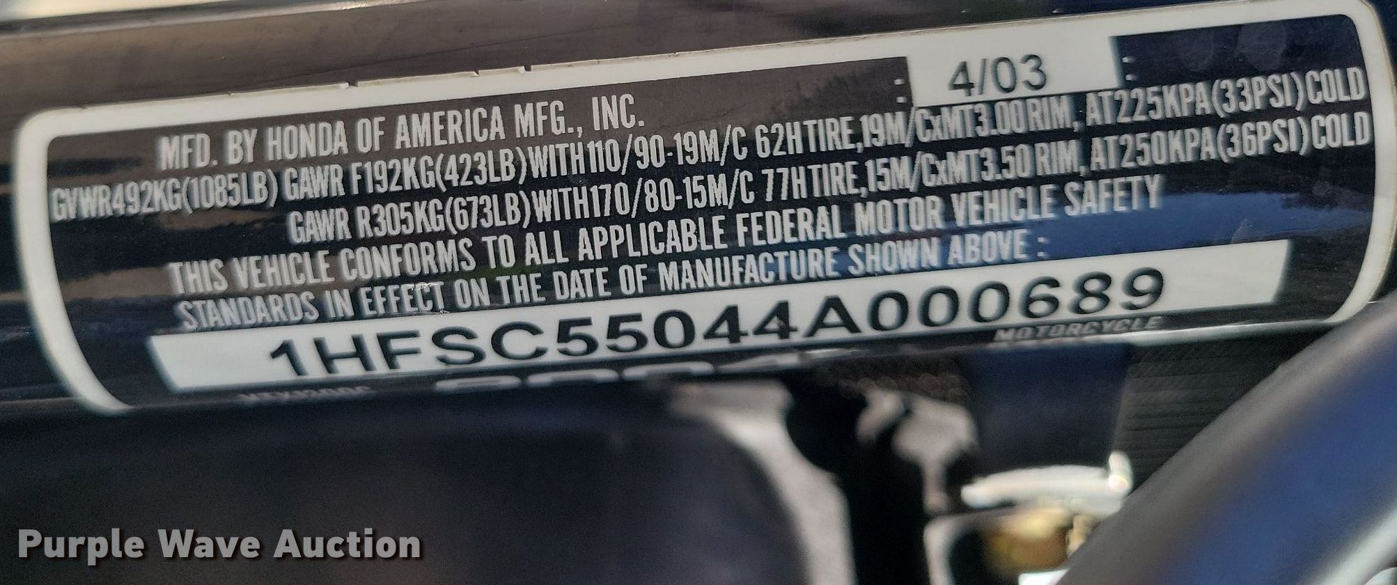 - VIN: 1HFSC55044A000689