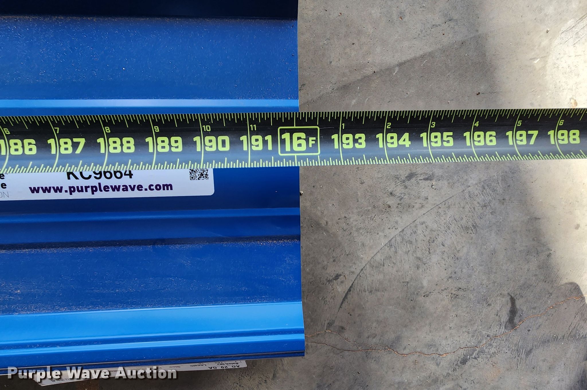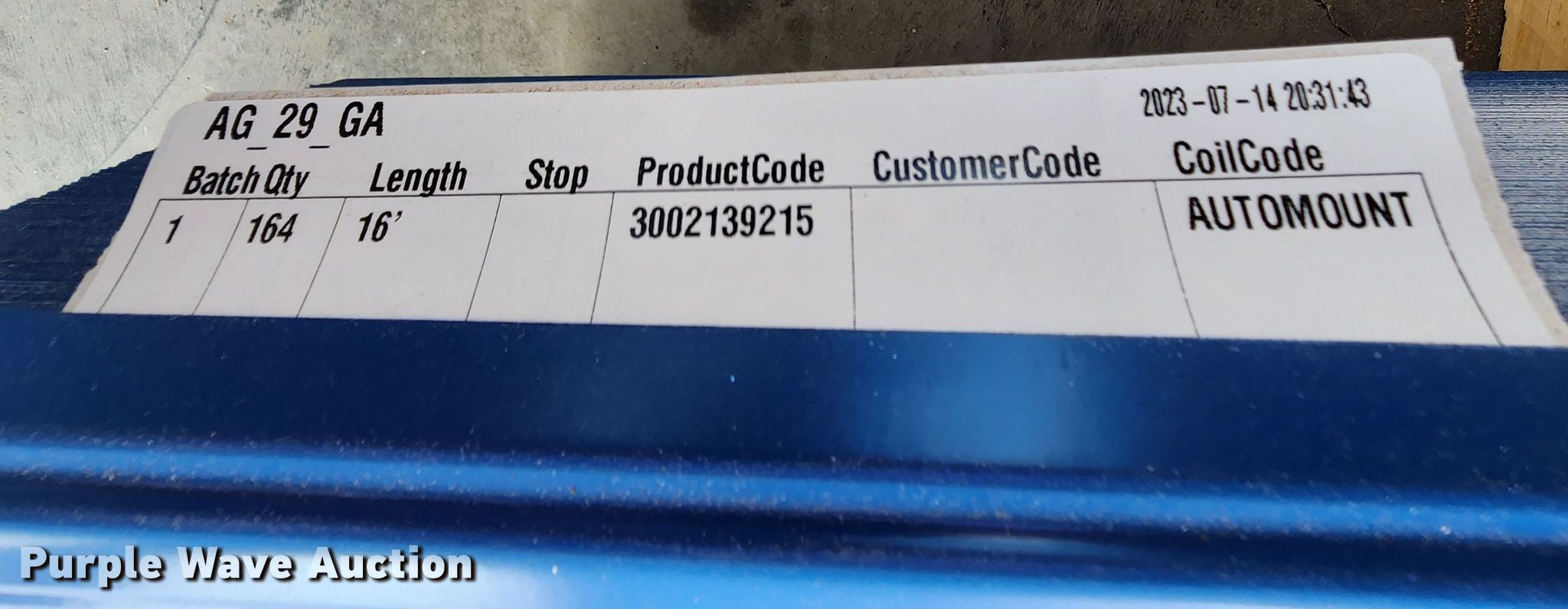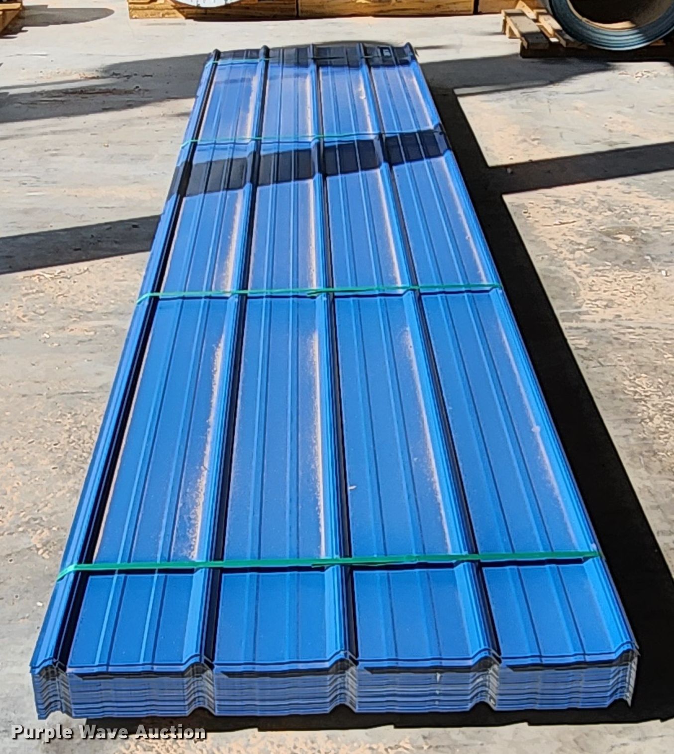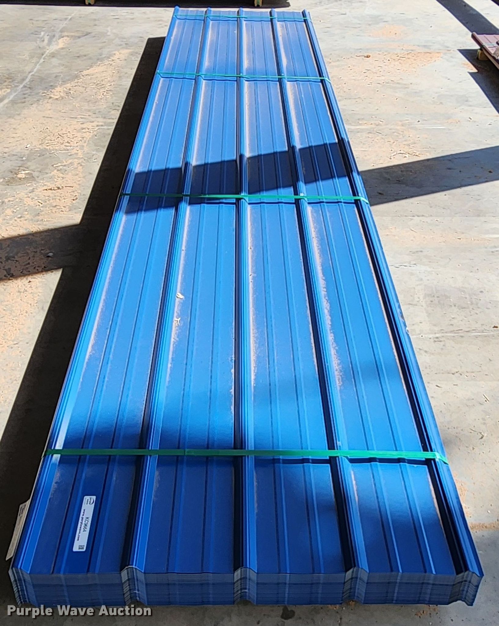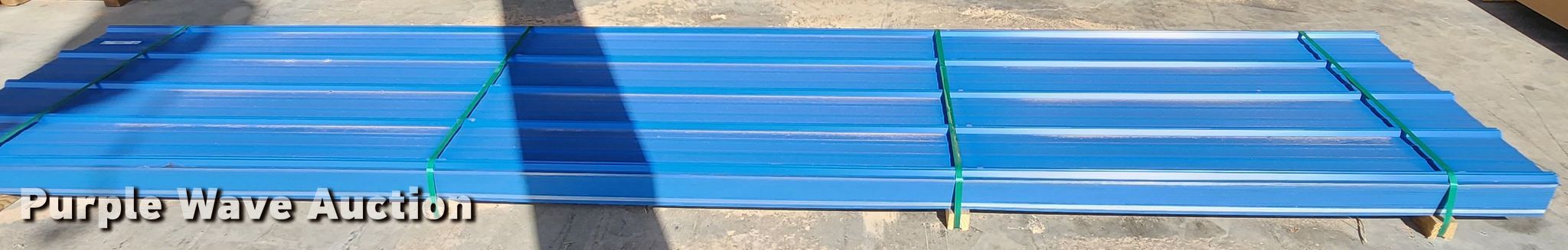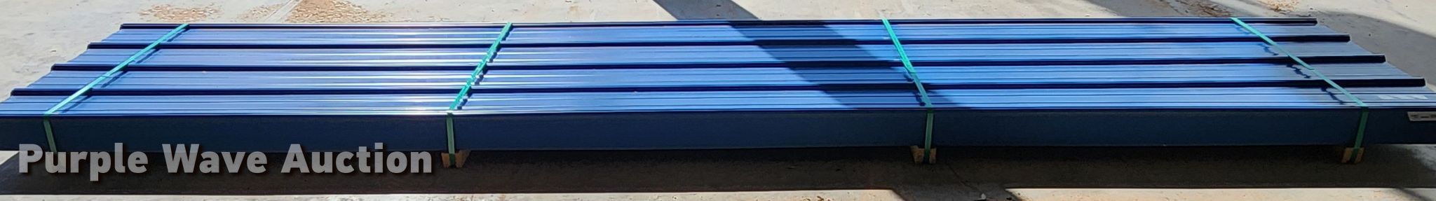 Purple Wave is selling a used Building Materials in Texas. This item is a (164) sheets of Doerkson Metal Components metal siding/roofing with the following: 16' L x 36" W overlap coverage, AG panel profile, 29 gauge, Color: Blue, Possible blemishes