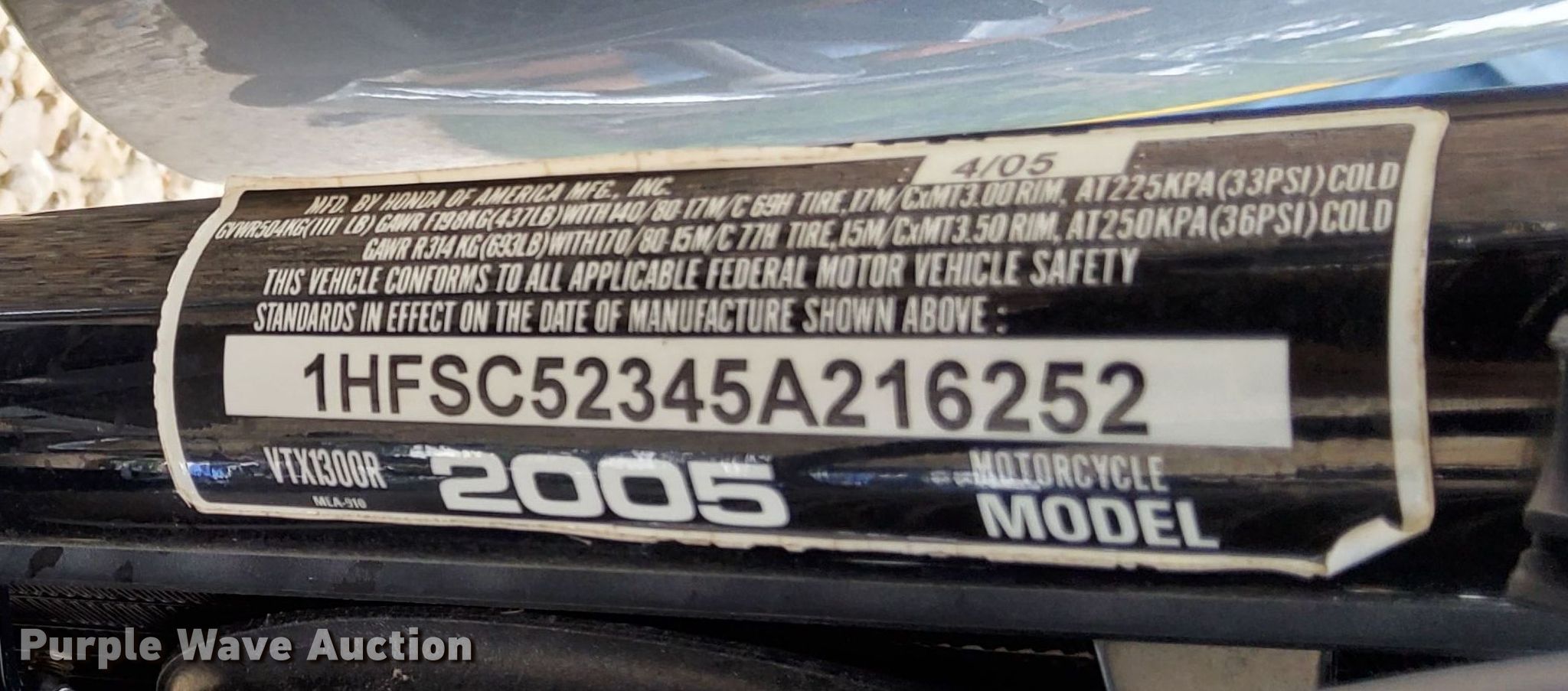 Purple Wave is selling a used Motorcycle in Kansas. This item is a 2005 Honda VTX1300R motorcycle with the following: Miles: 46,408 on odometer, VIN: 1HFSC52345A216252