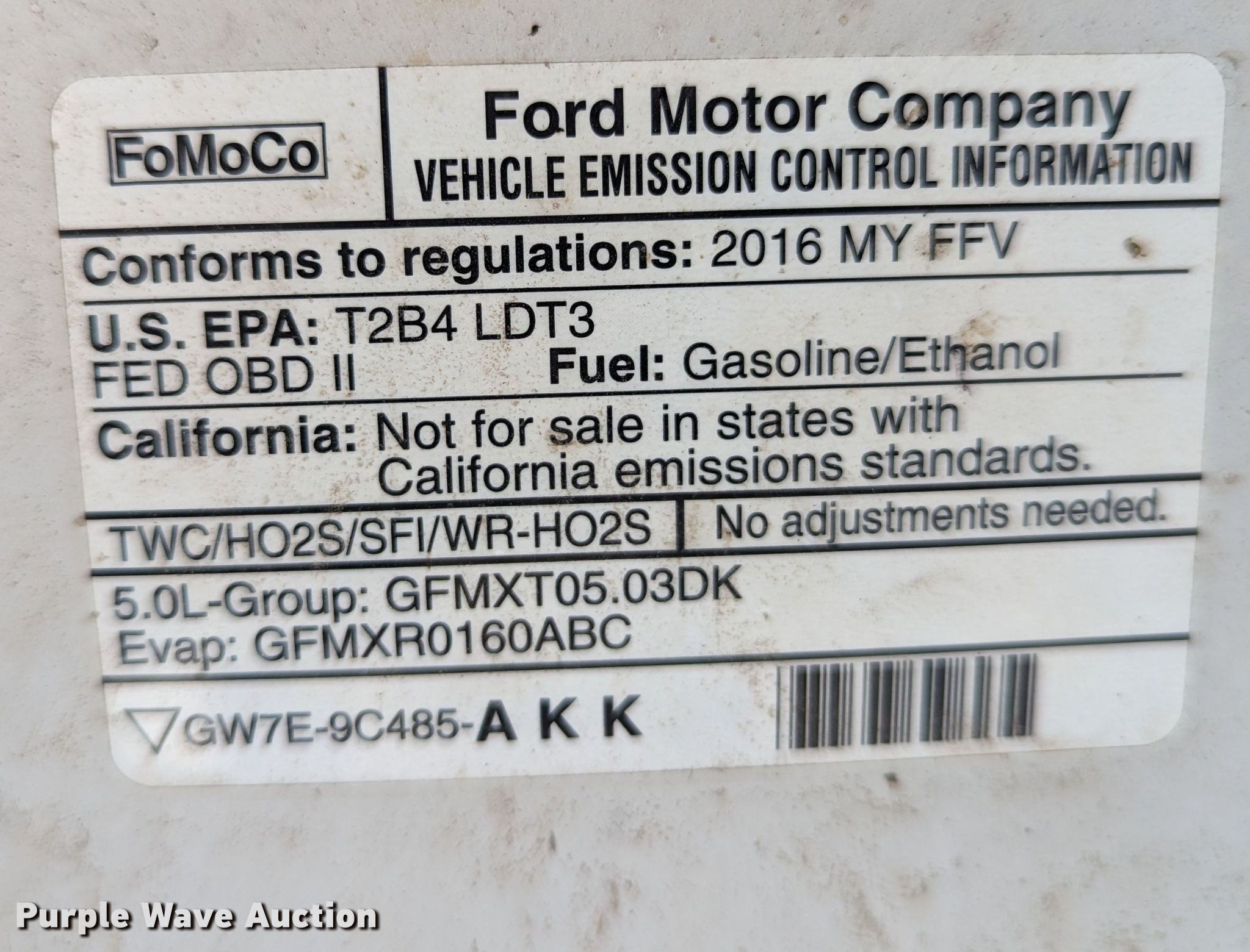 2016 Ford F150 SuperCrew pickup truck. Miles: 150,270 on odometer, VIN: 1FTEW1CF3GKE85002, Unit #: 701.332. Engine Displacement: 5.0L V8, Cylinders: 8, Fuel type: Gas. Transmission Automatic. Interior AC, Heat, Power windows, Power locks, Cruise control. Tires Size: 265/70R17. Notes Dash warning indicator: TPMS. Oklahoma title. Title distribution may be delayed up to 30 days from verification of funds. Duit Holdings Inc.. 7183 E Waterloo Industrial Rd. Edmond, OK 73034