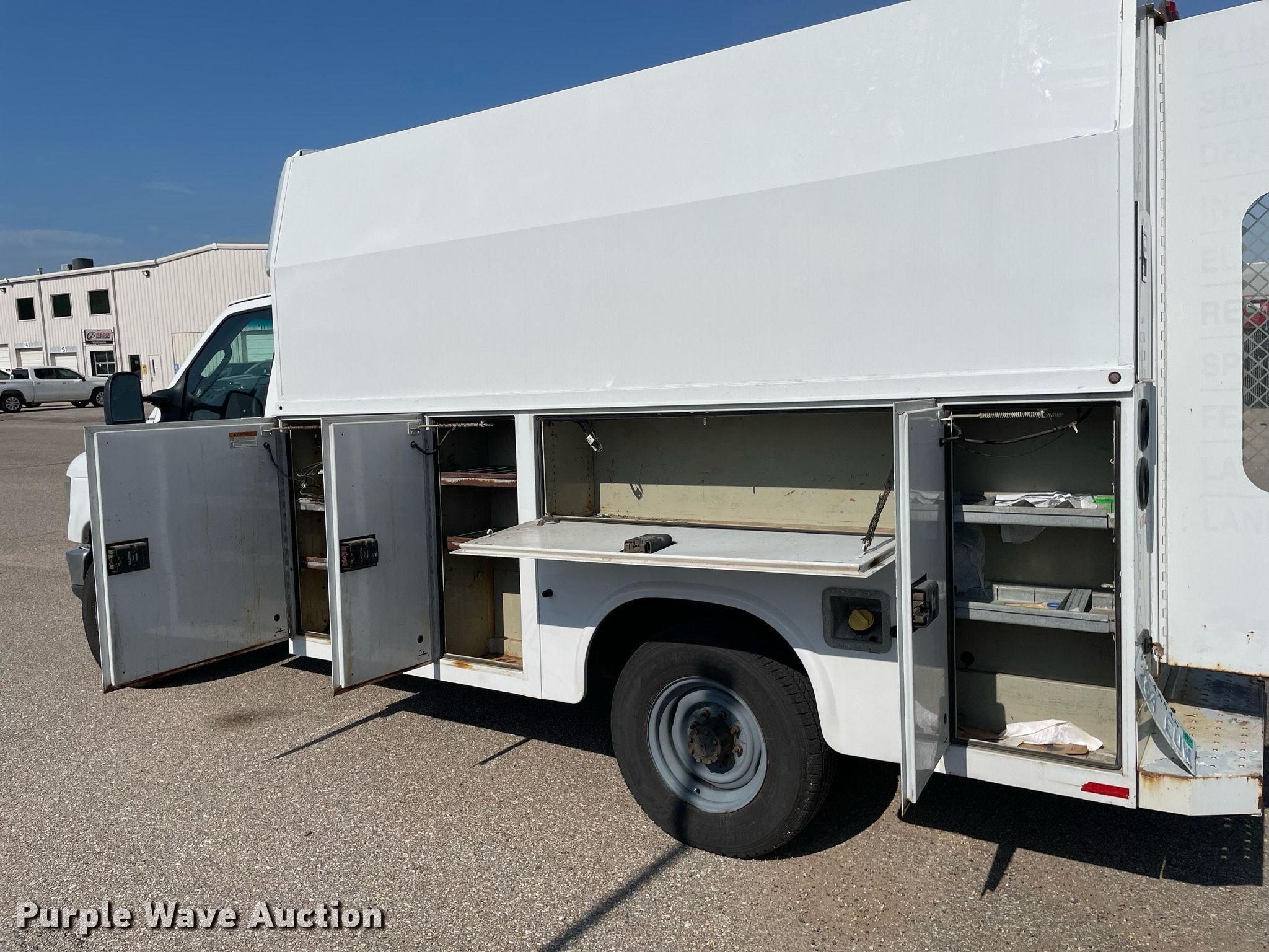 2011 Ford E350 Super Duty utility van. Miles: 216,111 on odometer, VIN: 1FDSE3FL4BDB20369. Engine Displacement: 5.4L V8 SOHC, Cylinders: 8, Fuel type: Gas. Transmission Automatic. Interior AC, Heat, Power windows, Power locks. Features Utility bed Knapheide, 11' 8" L x 84" W, Warn 2000 winch. Tires Size: 245/75R16. Notes Contents included , Dash warning indicator: TPMS, Airbag, Windshield chipped or cracked, Rear door latch issues, Hail damage, Dead battery. Kansas title. Title distribution may be delayed up to 14 days from verification of funds. Reddi Industries. Wichita, KS 67217