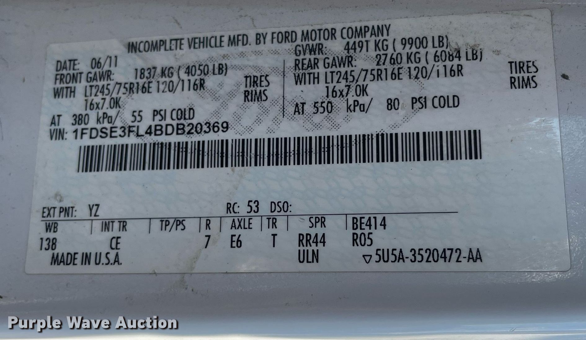 - VIN: 1FDSE3FL4BDB20369