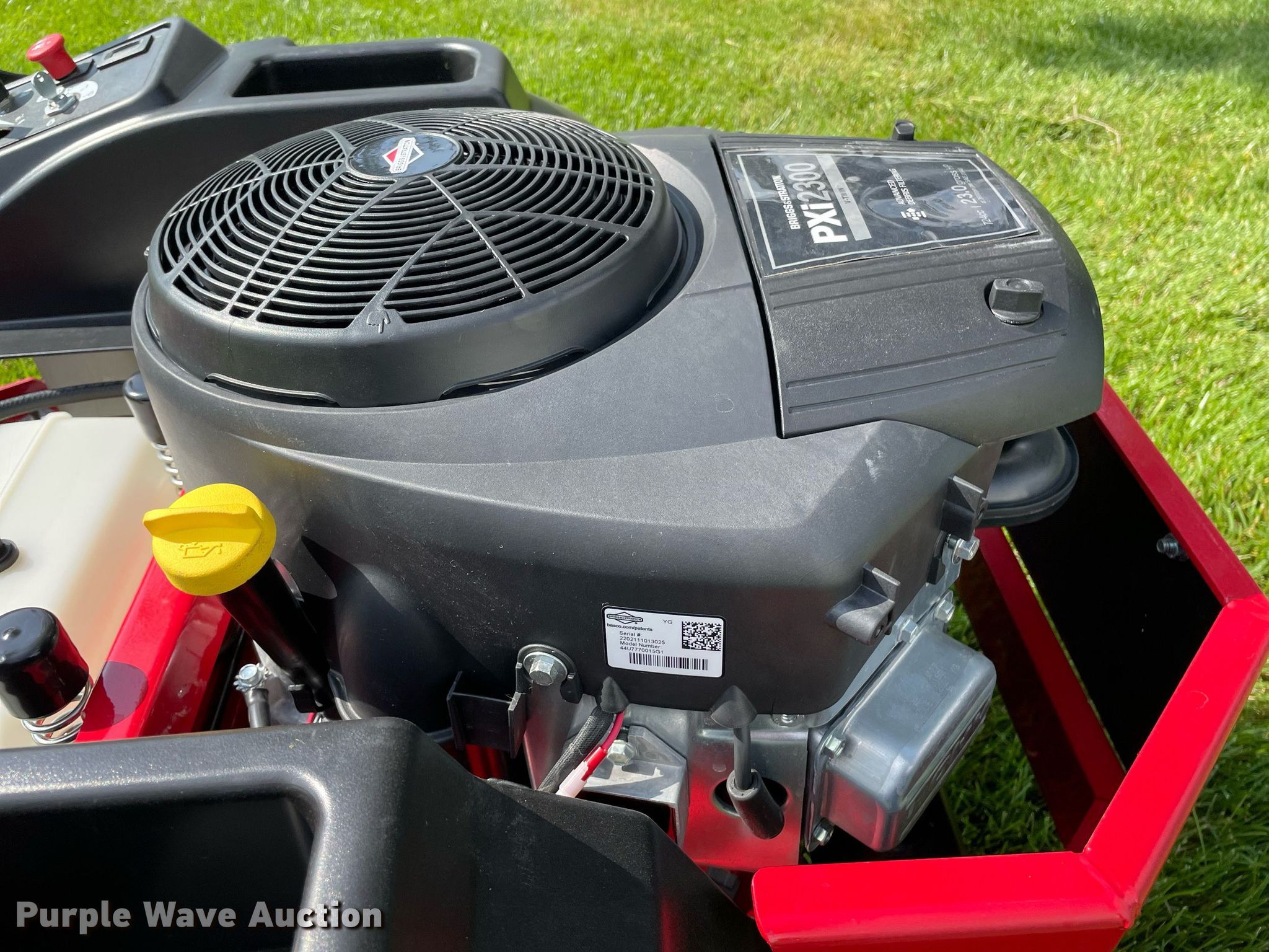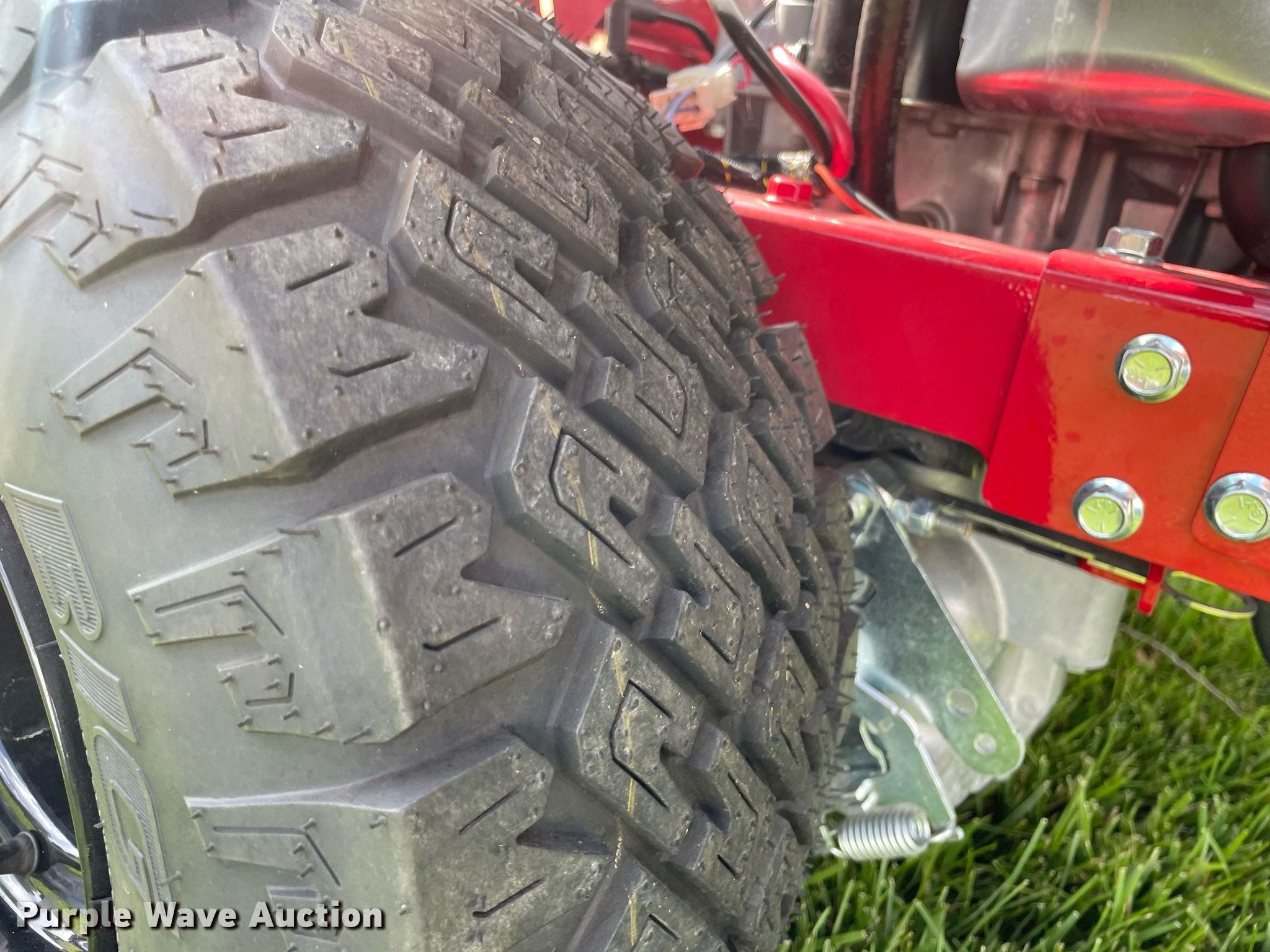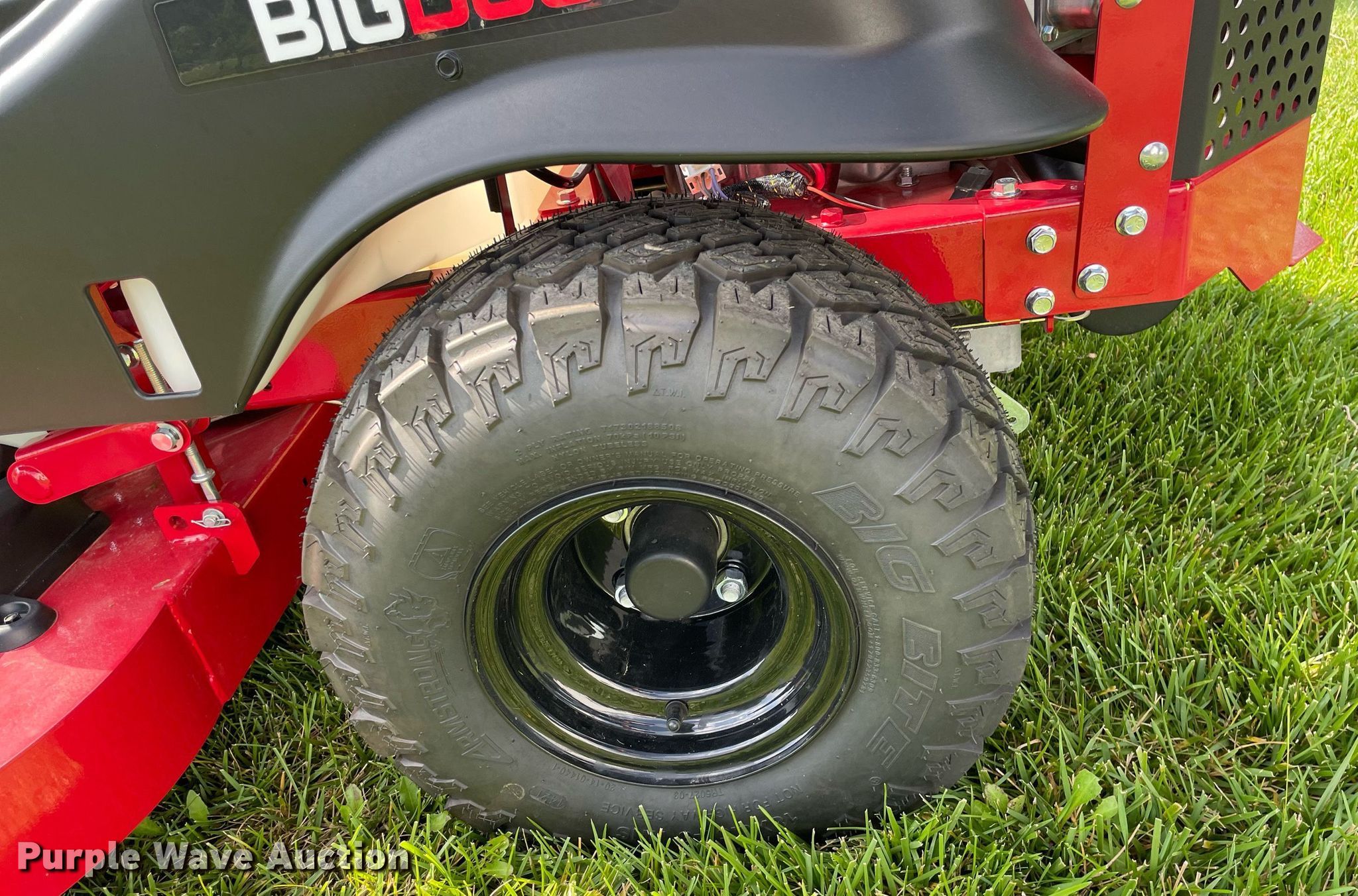 Big Dog Alpha ZTR lawn mower. Hours: 0.2 on meter, Cutting width: 52", Serial: 22043298. Engine Briggs & Stratton PXi2300, Displacement: 724cc, Cylinders: 2, Fuel type: Gas, HP: 23. Transmission Hydrostatic. Tires Front: 11x6.00-5, Rear: 18x8.50-8. Notes Unused. Sedgwick, KS 67135