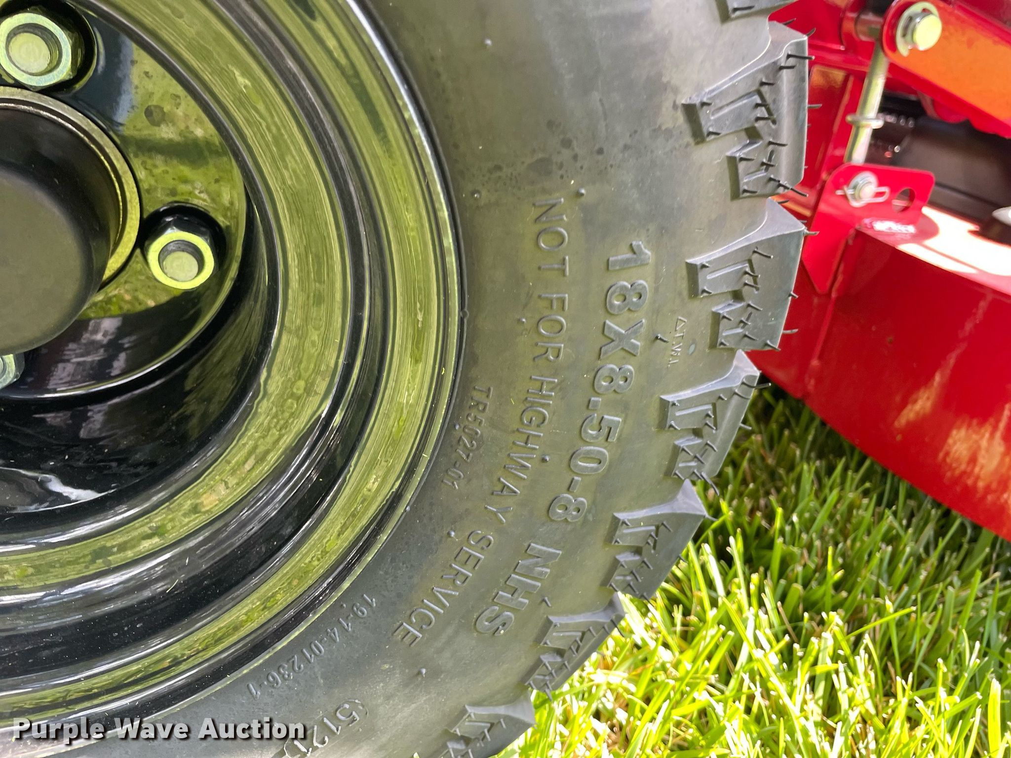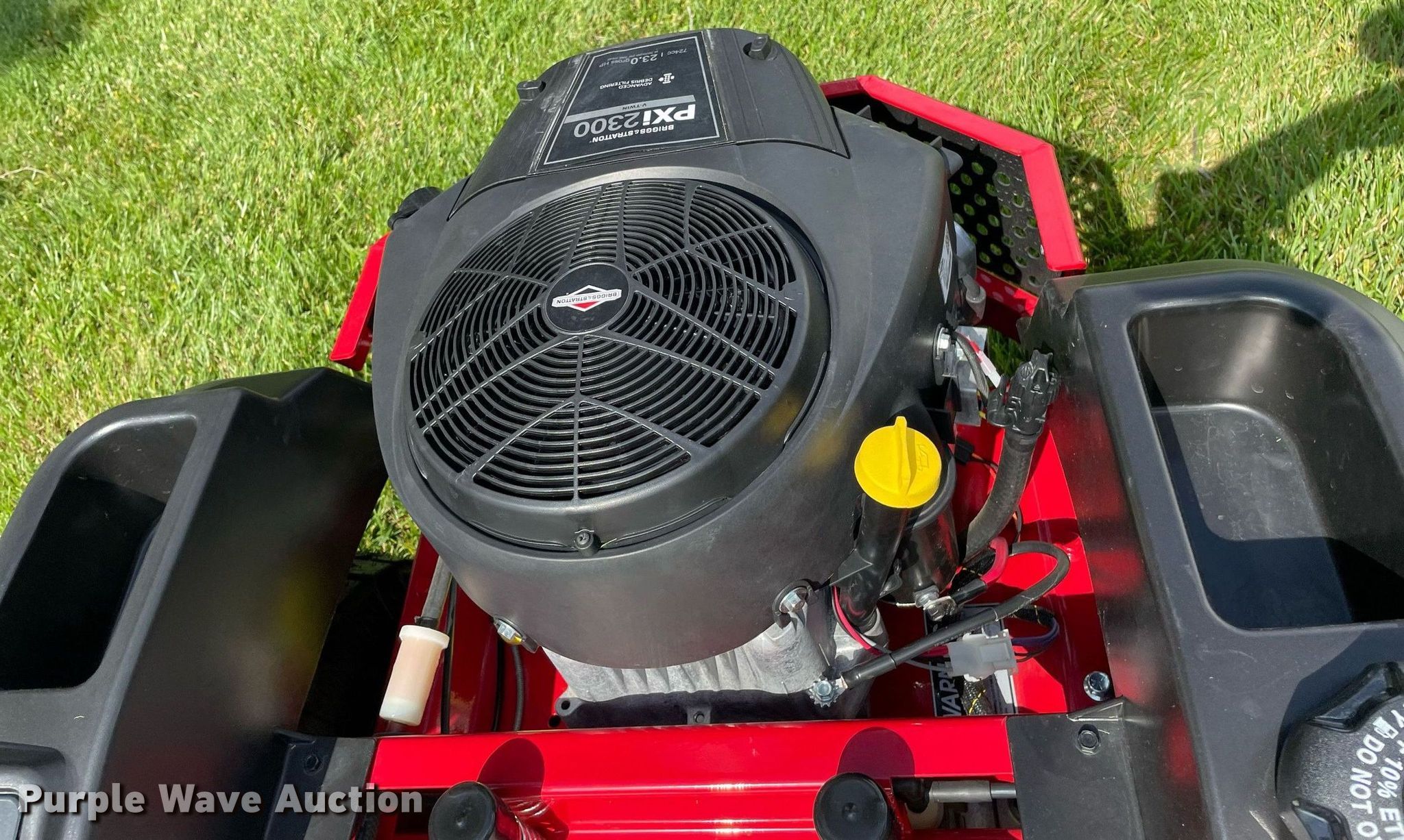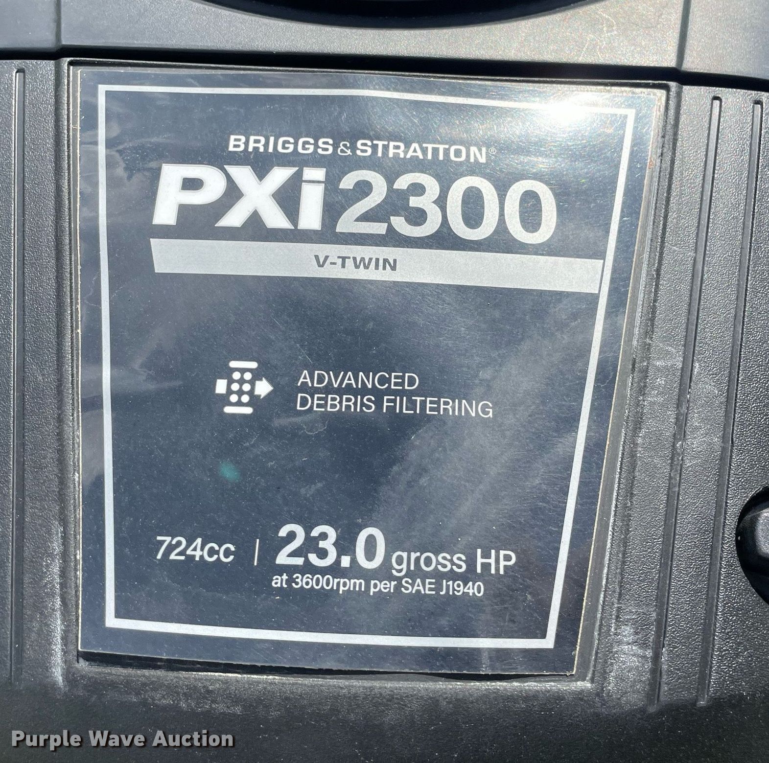 Big Dog Alpha ZTR lawn mower. Hours: 0.2 on meter, Cutting width: 52", Serial: 22043298. Engine Briggs & Stratton PXi2300, Displacement: 724cc, Cylinders: 2, Fuel type: Gas, HP: 23. Transmission Hydrostatic. Tires Front: 11x6.00-5, Rear: 18x8.50-8. Notes Unused. Sedgwick, KS 67135
