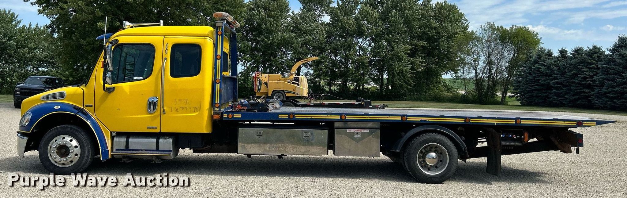 Purple Wave is selling a used Rollback or Tow Truck in Iowa. This item is a 2006 Freightliner Business Class M2 106 rollback truck with the following: Miles: 295,497 on odometer, Hours: 17,150 on meter, VIN: 1FVACWCS36HW65291