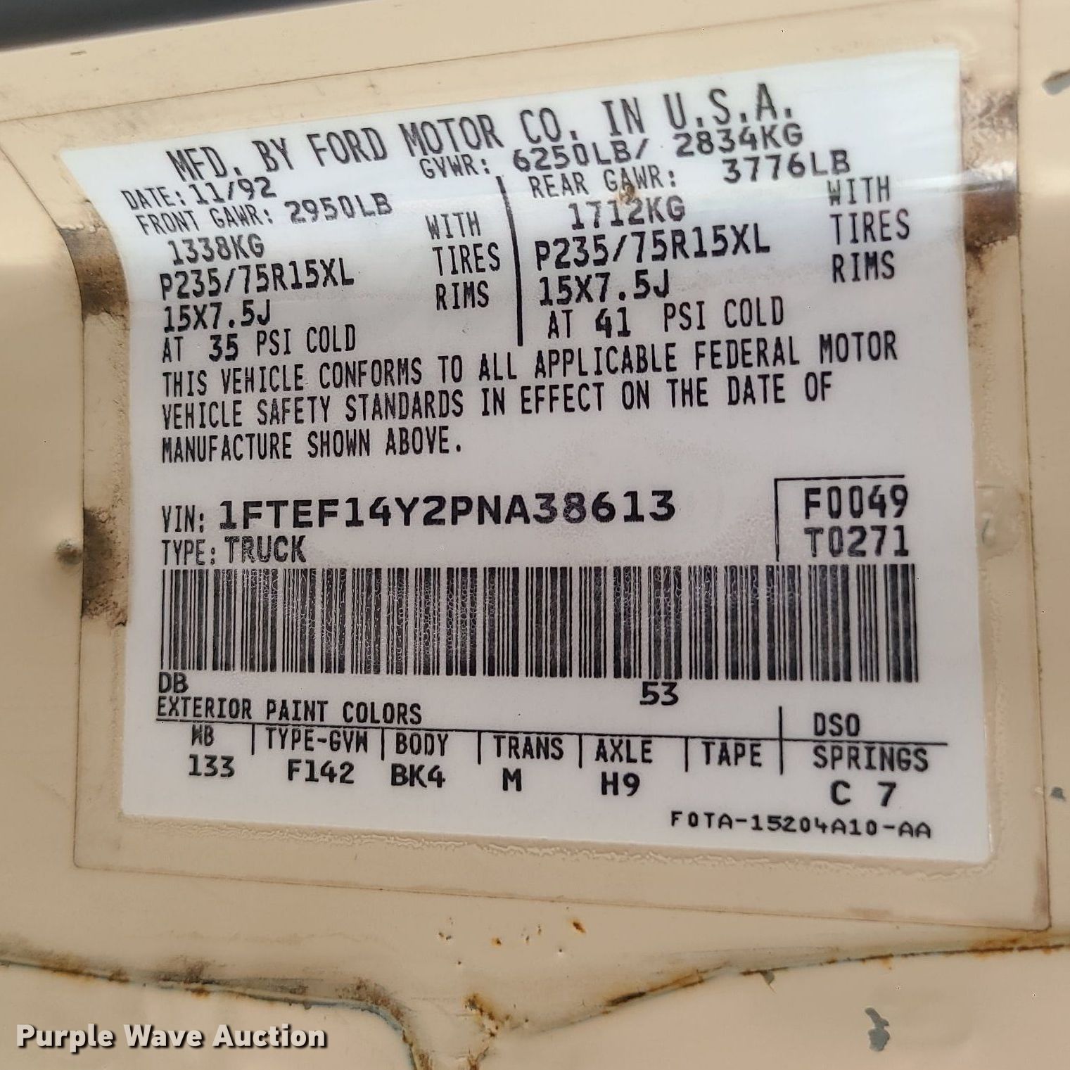 Purple Wave is selling a used 1/2 Ton Pickup or Van in Missouri. This item is a 1993 Ford F150 pickup truck with the following: Miles: 204,293 on odometer, VIN: 1FTEF14Y2PNA38613
