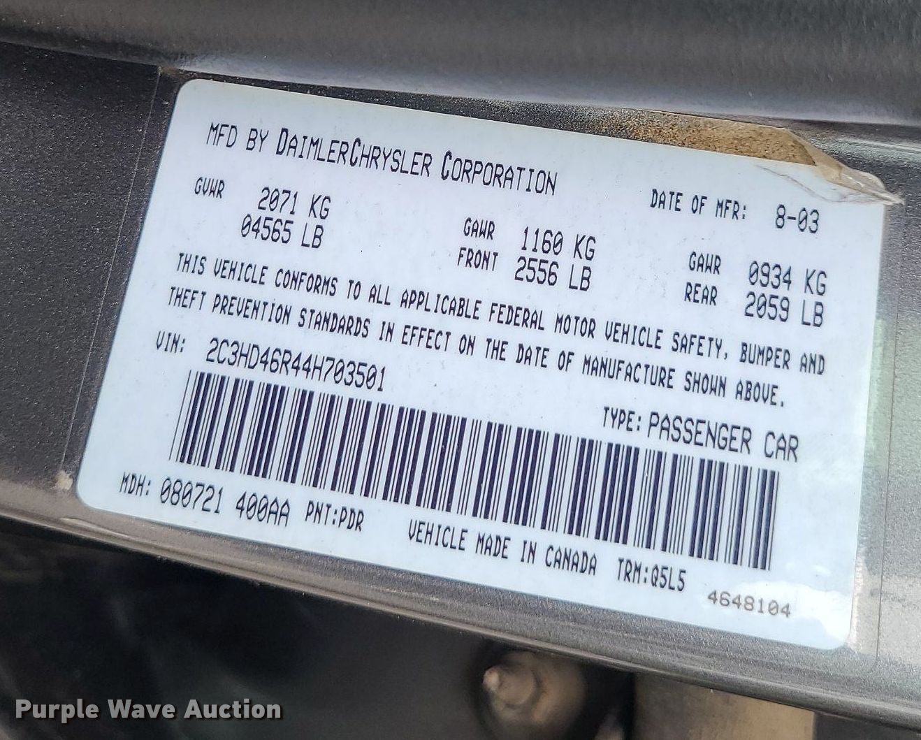 - VIN: 2C3HD46R44H703501