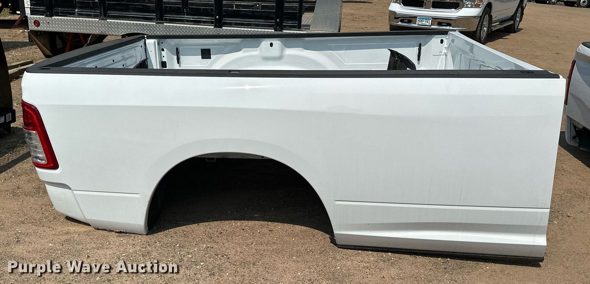 Purple Wave is selling a used Automotive Parts or Acces. in Minnesota. This item is a Dodge pickup bed with the following: Length: 8', Includes:, Tail gate, Bumper, Receiver hitch, Additional contents not included