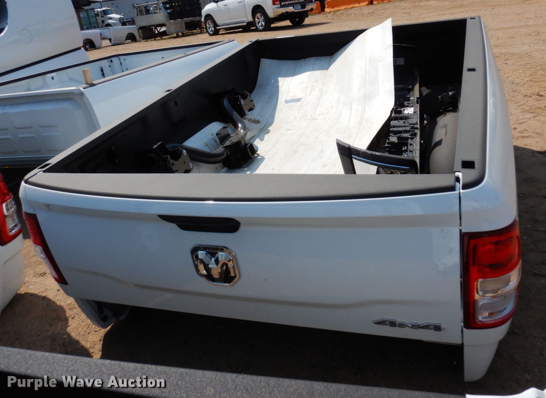 Purple Wave is selling a used Automotive Parts or Acces. in Minnesota. This item is a Dodge pickup bed with the following: Length: 8', Includes:, Tail gate, Bumper, Receiver hitch, Additional contents not included