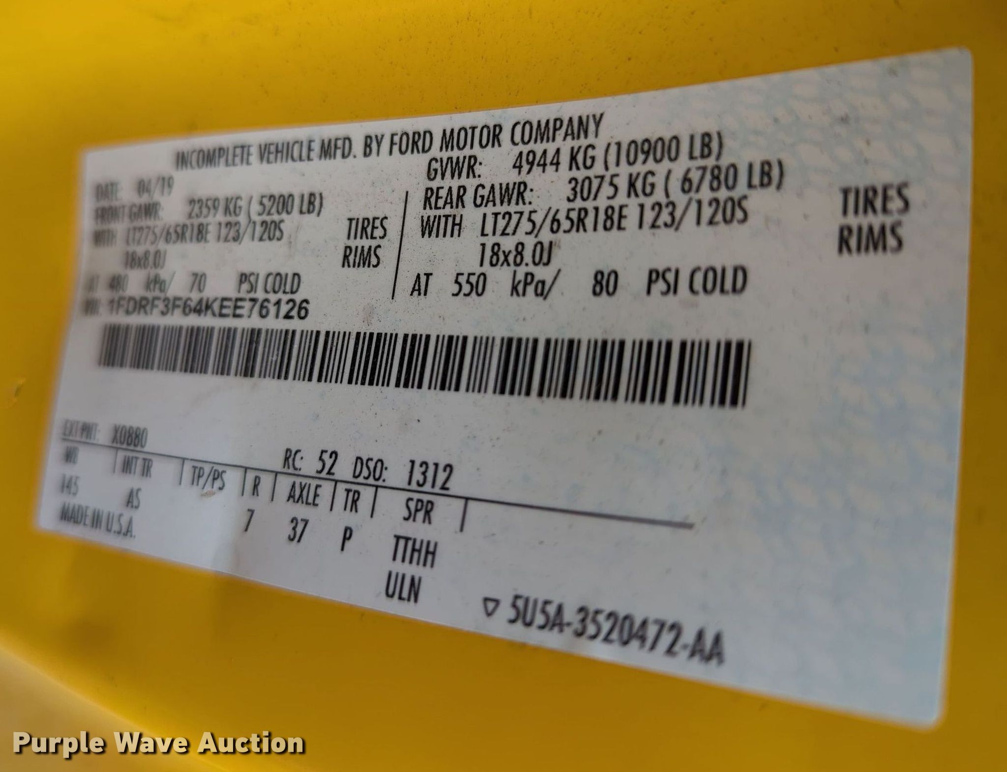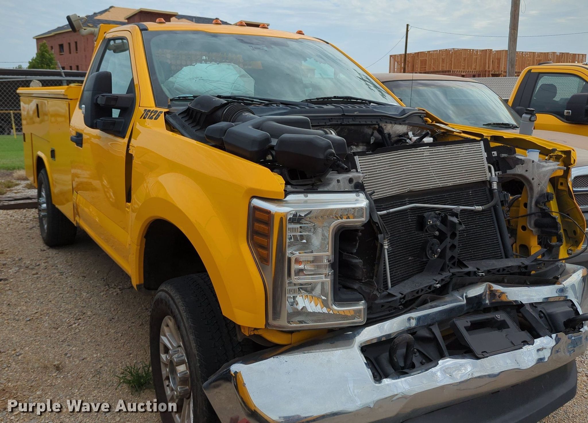 Purple Wave is selling a used 3/4 or 1 Ton Pickup or Van in Oklahoma. This item is a 2019 Ford F350 Super Duty XL utility bed pickup truck with the following: Miles: 58,870 on odometer, VIN: 1FDRF3F64KEE76126