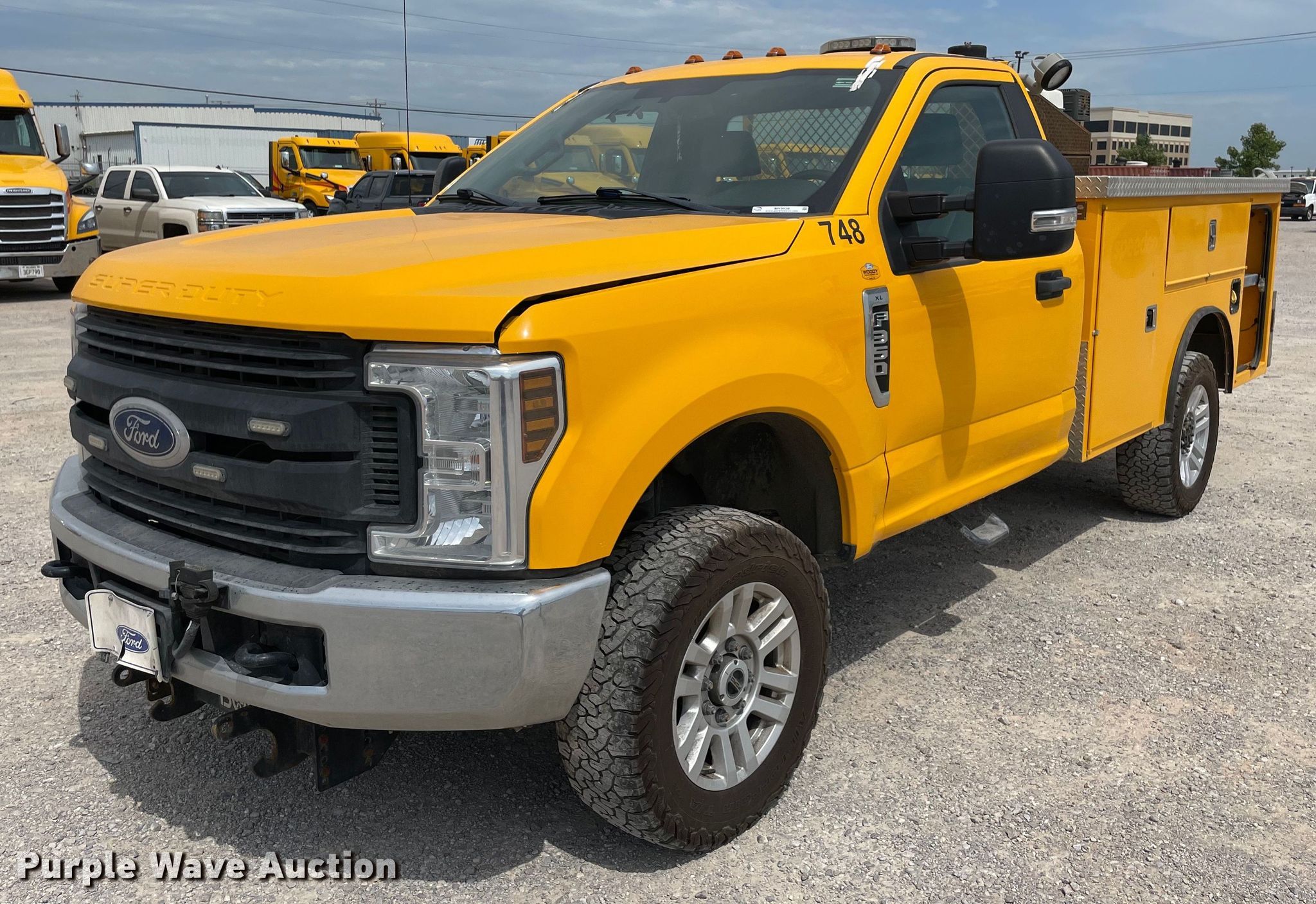 Purple Wave is selling a used 3/4 or 1 Ton Pickup or Van in Oklahoma. This item is a 2019 Ford F350 Super Duty XL utility bed pickup truck with the following: Miles: 122,854 on odometer, VIN: 1FDRF3F69KEE76087