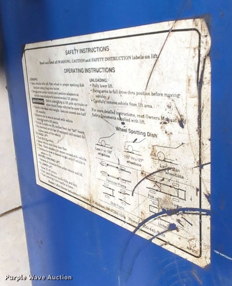 Purple Wave is selling a used Tools in Oklahoma. This item is a Rotary two post automotive lift with the following: Capacity: 9,000 lbs