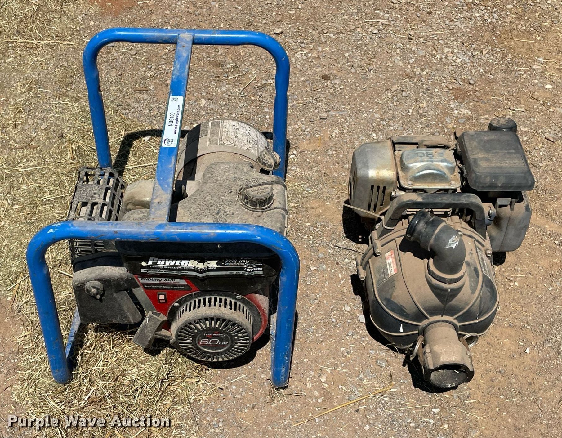 generator. Engine. Cylinders: 1, Fuel type: Gas. Features Generator Watts: 3,000, Phase: Single, Fuel tank. Pacer Pump water pump Cylinders: 1, Fuel type: Gas, Inlet: 2.5", Outlet: 2". Overhead Door Company of Ada, Inc.. 11264 Oklahoma 133. Pauls Valley, OK 73075