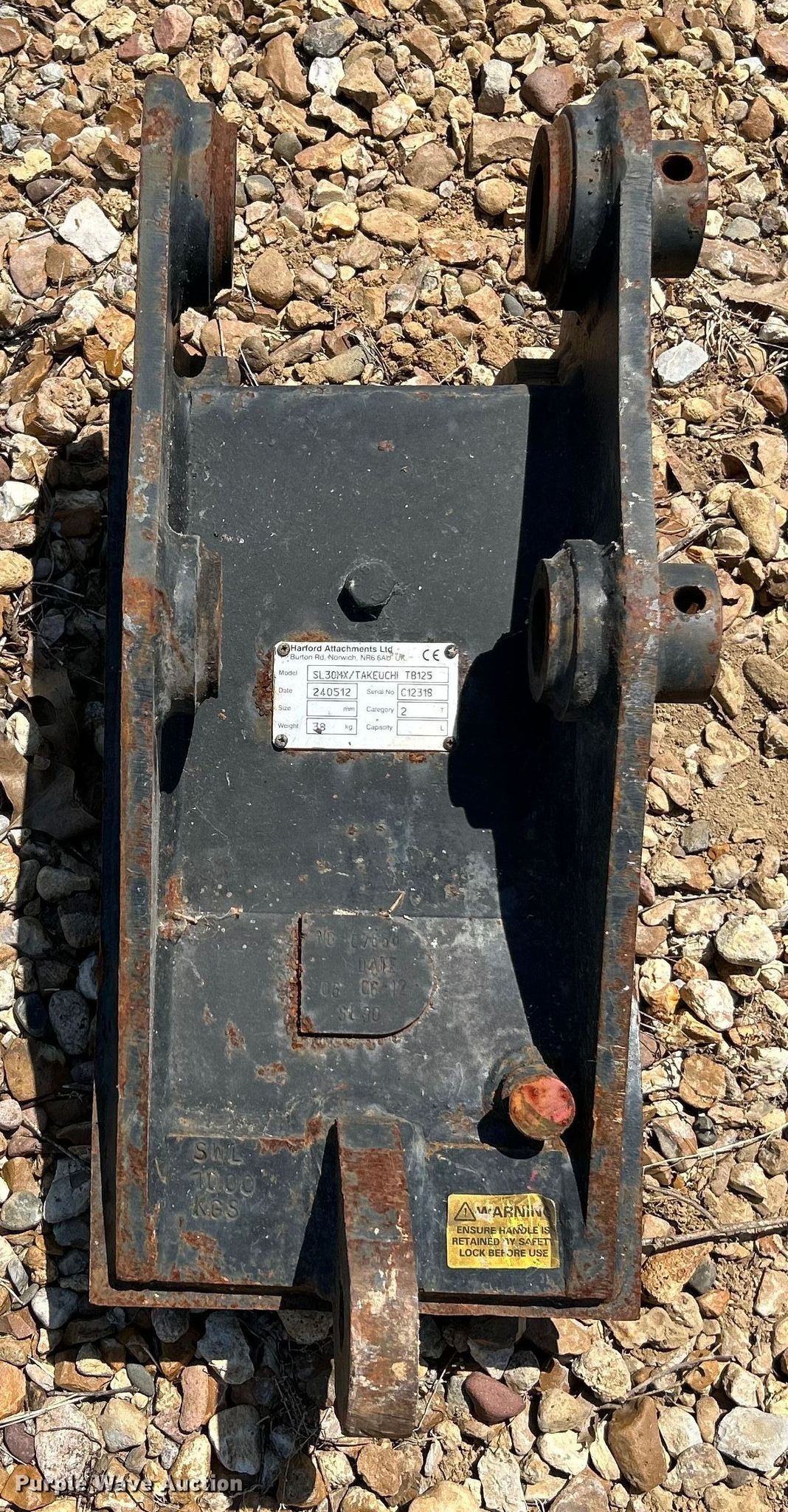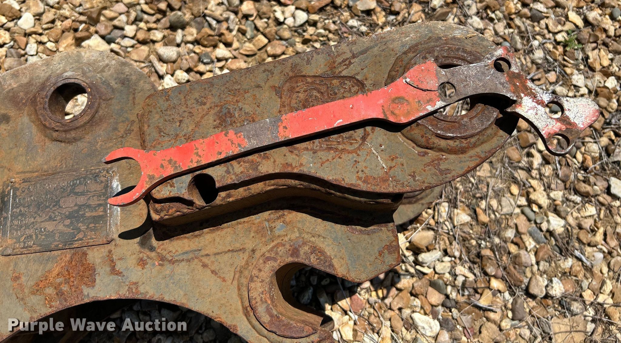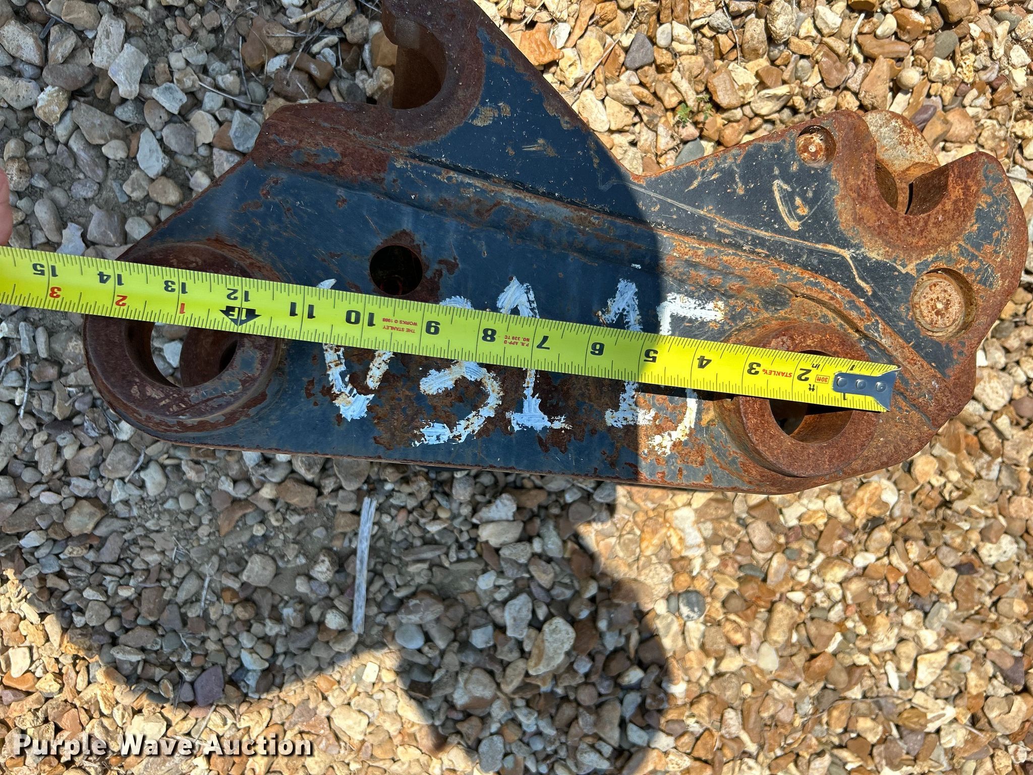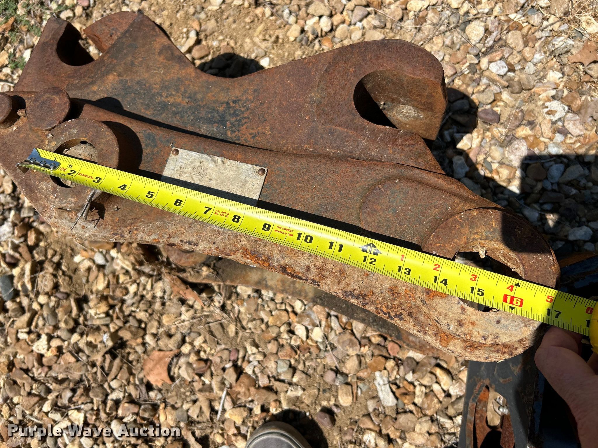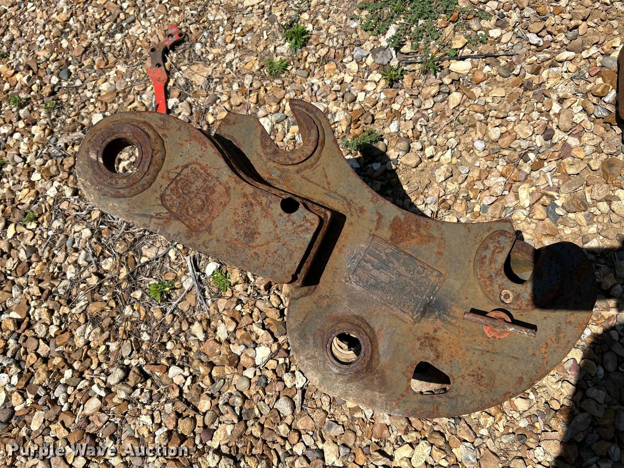 Purple Wave is selling a used Other Attach. or Equip. in Missouri. This item is a (4) quick couplers with the following: Takeuchi TB125, Pin diameter: 1.5", Pin spacing: 7", Ear to ear spacing: 5", Hydraulic coupler, Pin diameter: 1 5/8", Pin spacing: 11", Ear to ear spacing: 7", Caterpillar, Pin diameter: 1.5", Pin spacing: 13.5", Ear to ear spacing: 10", Fits Caterpillar 420D/430D, C&P, Pin diameter: 1.5", Pin spacing: 13", Fits Case 580L
