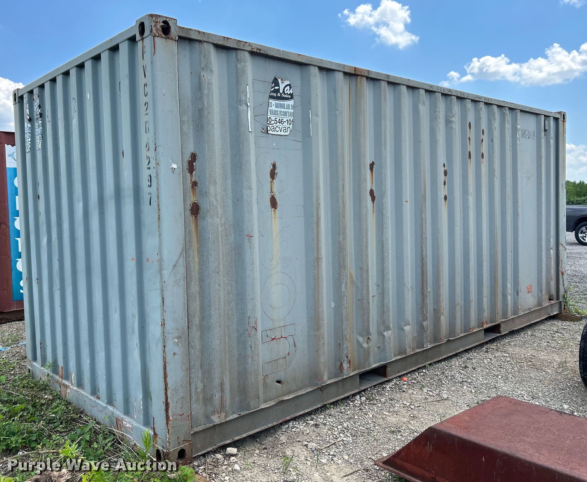 Purple Wave is selling a used Storage or Shipping Container in Missouri. This item is a Storage container with the following: 19' L x 92" W x 94" H, Wood floor, Contents not included