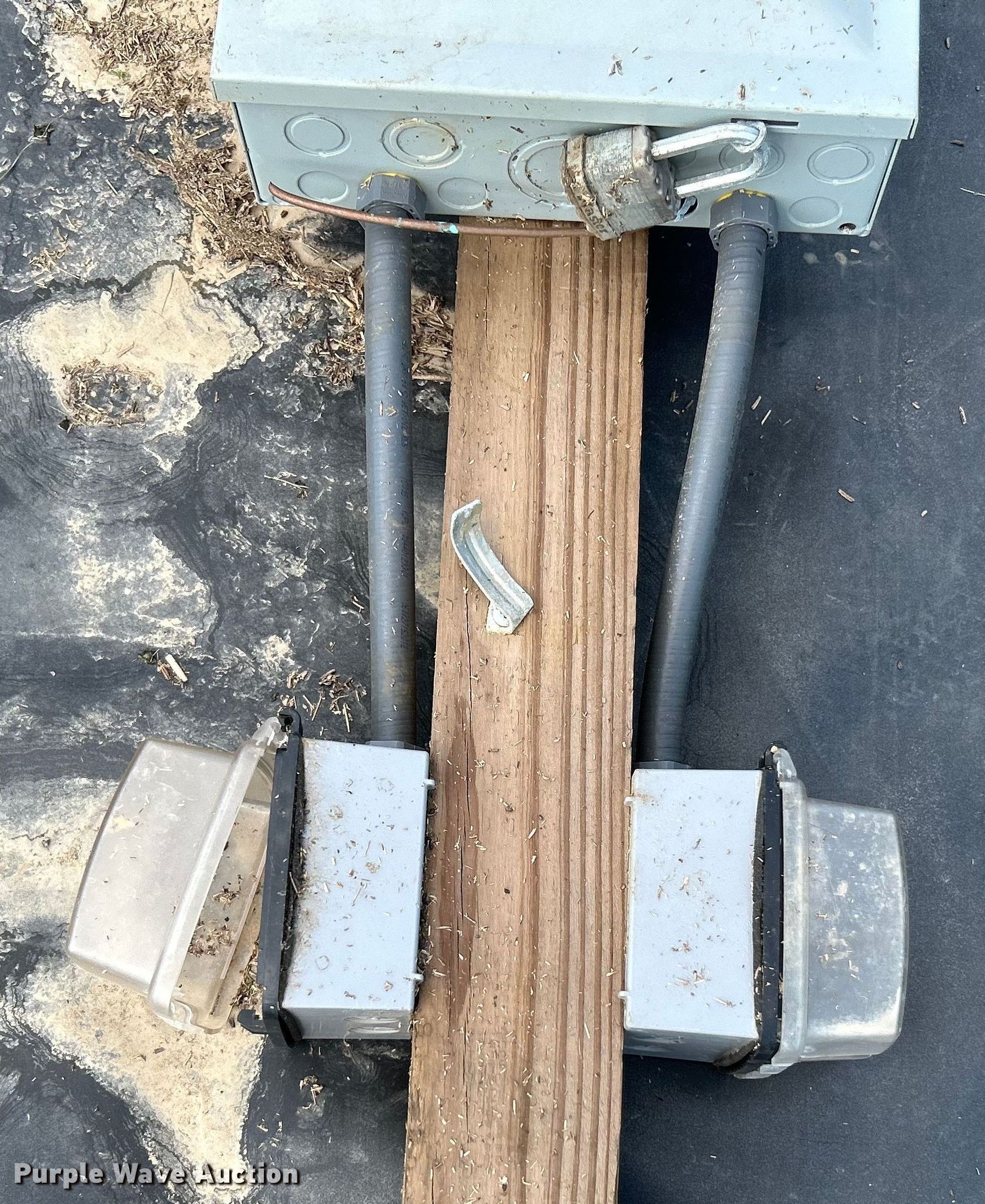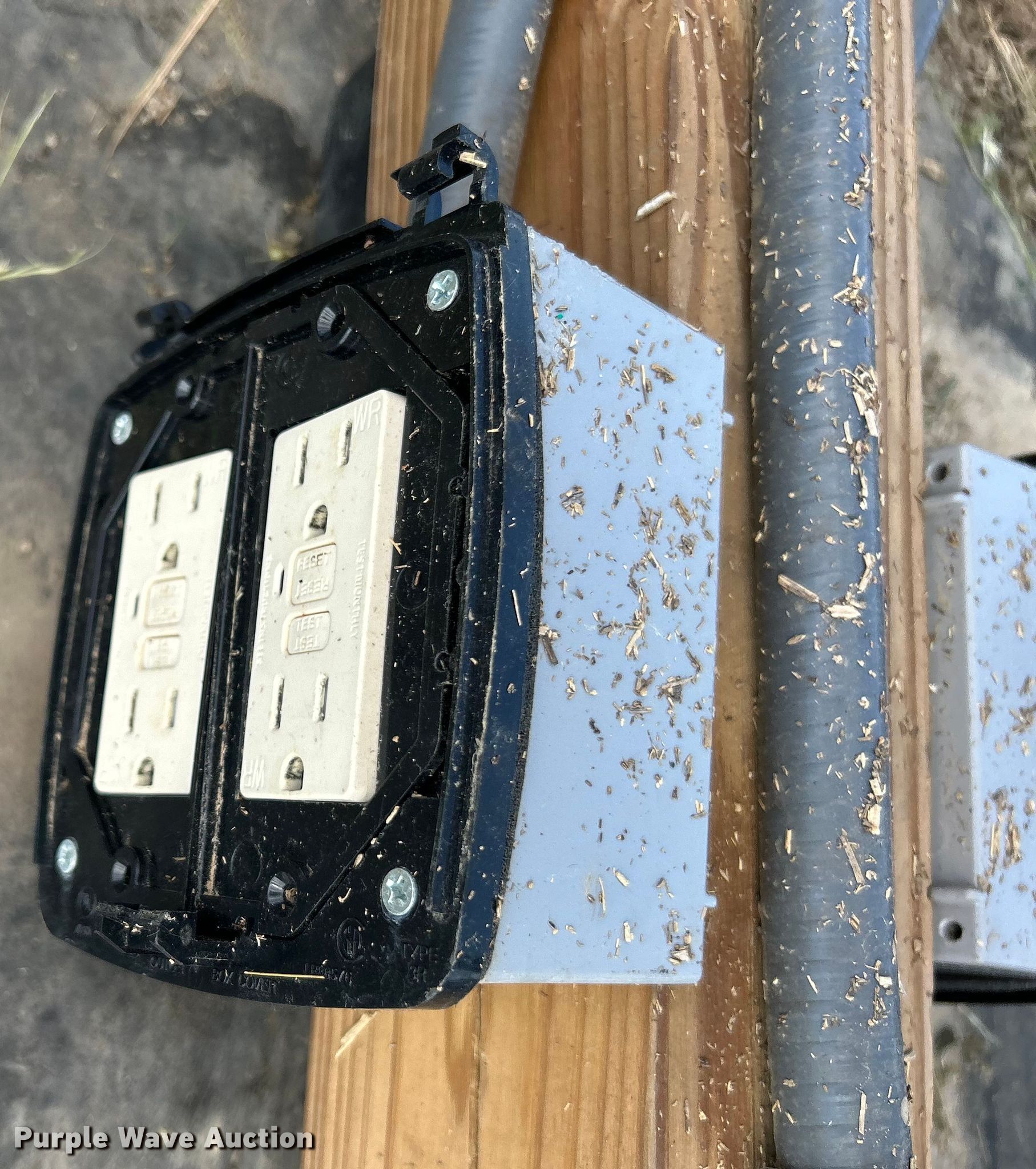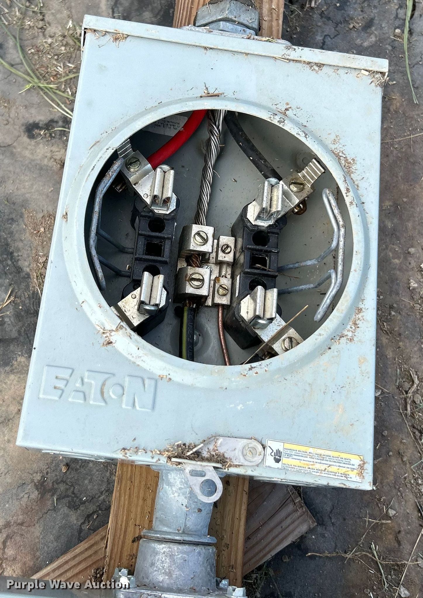 Purple Wave is selling a used Building Materials in Missouri. This item is a (4) temporary electric service meters with the following: Meter socket box, Breaker box, 110V outlets, 4" x 4" wood post