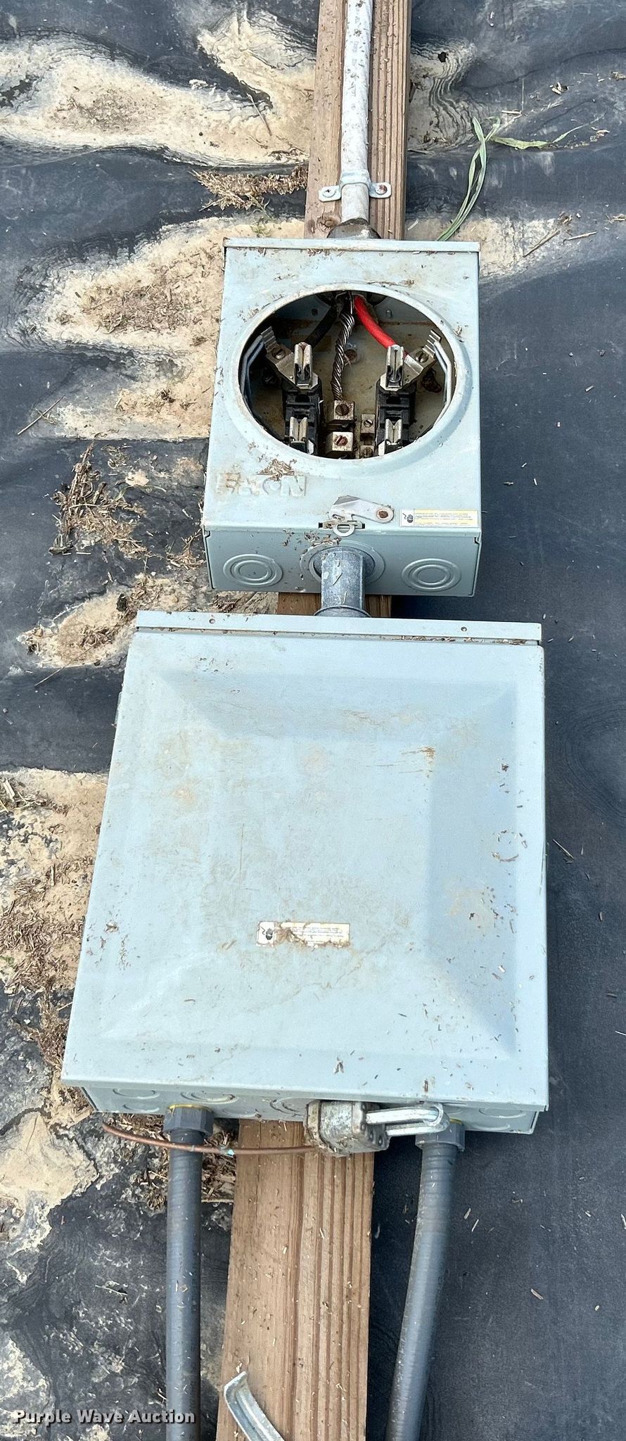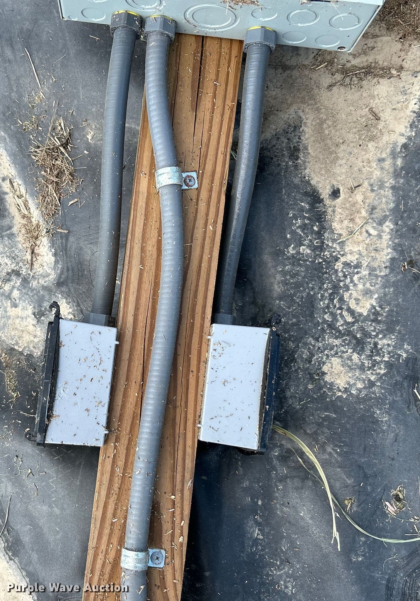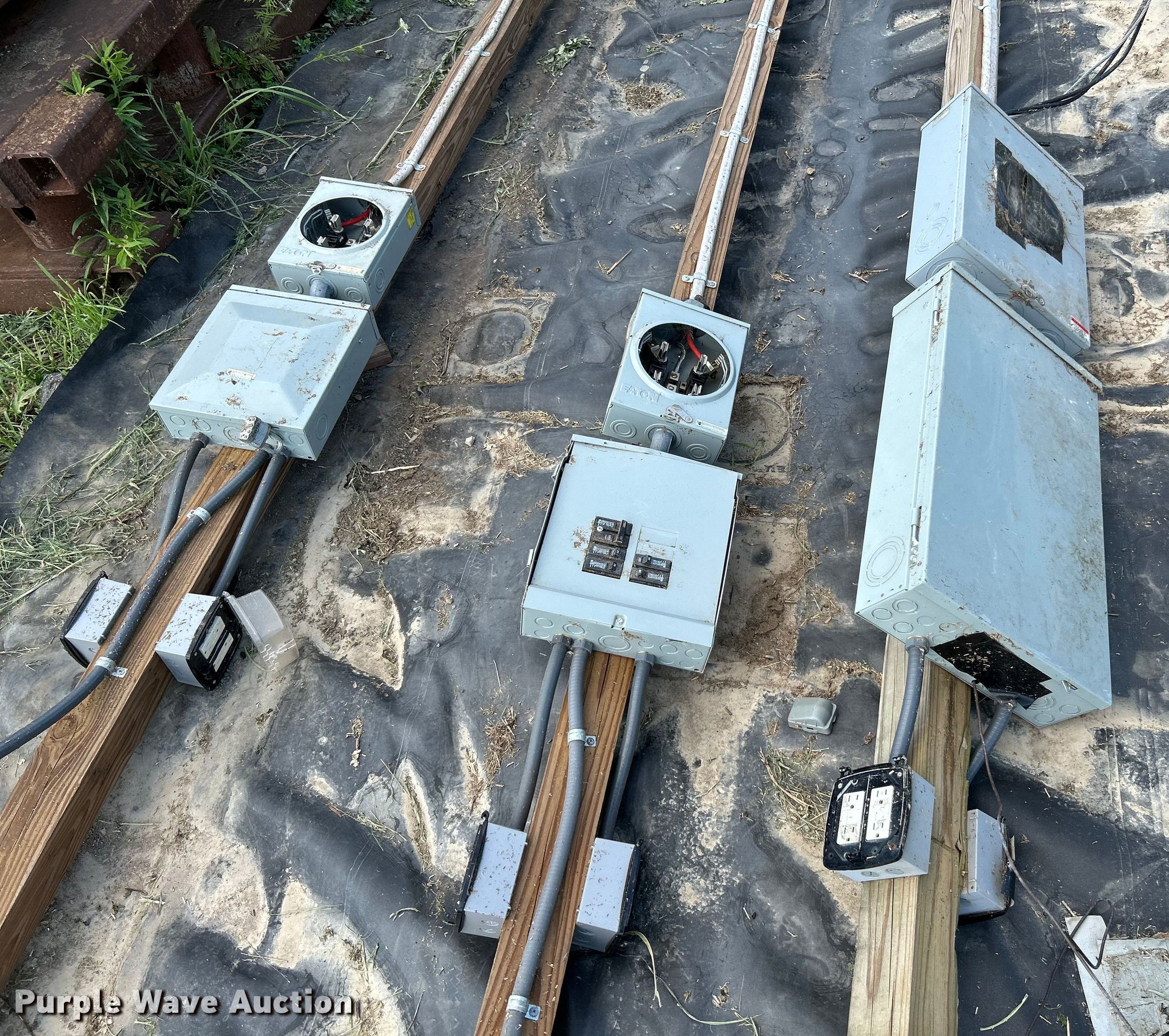 Purple Wave is selling a used Building Materials in Missouri. This item is a (4) temporary electric service meters with the following: Meter socket box, Breaker box, 110V outlets, 4" x 4" wood post