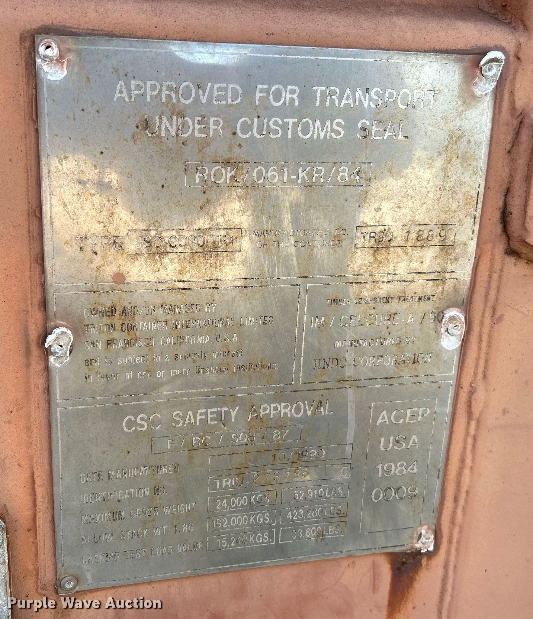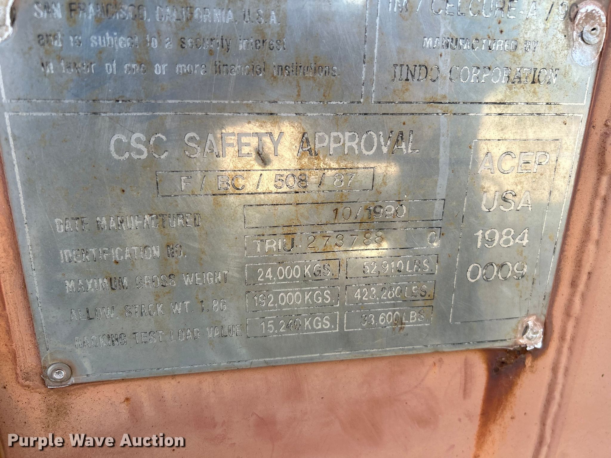 Purple Wave is selling a used Storage or Shipping Container in Missouri. This item is a Storage container with the following: 19' x 92" x 94"