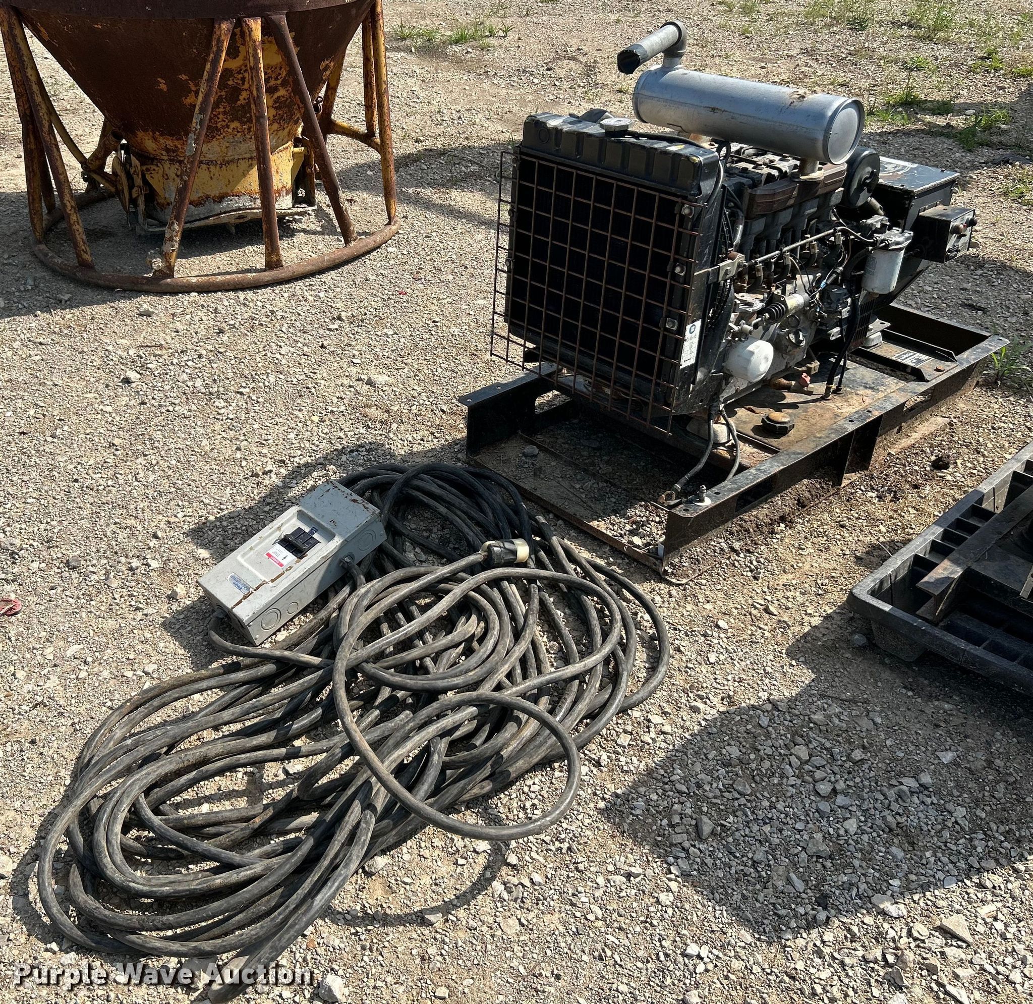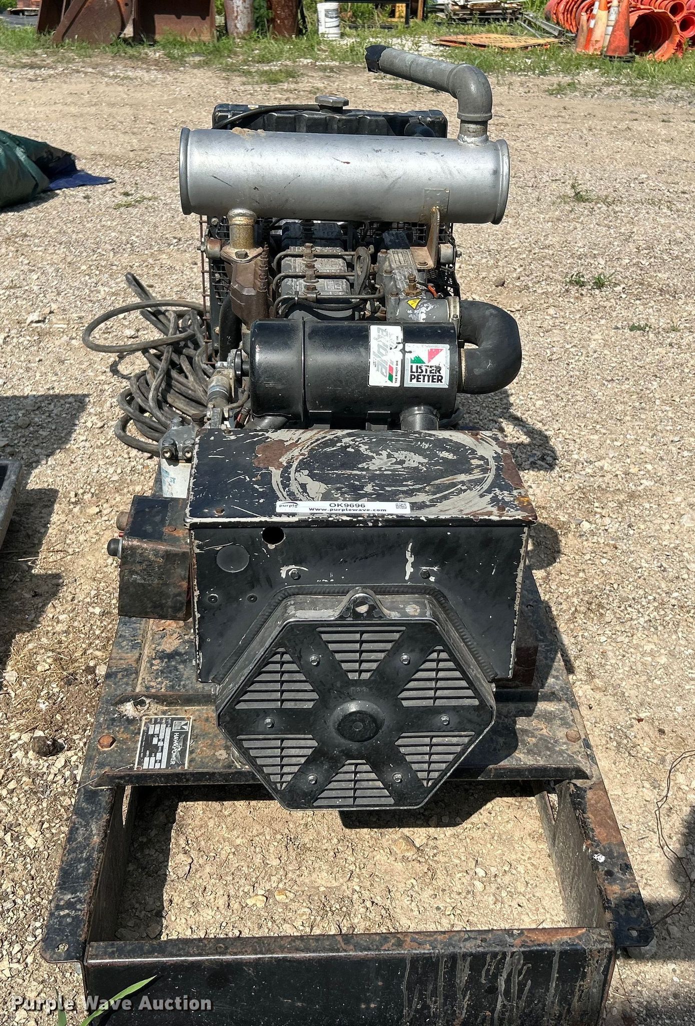 Hawk Power generator. Hours: 1,555 on meter. Engine Lister Petter, Cylinders: 4, Fuel type: Diesel. Features kVA: 20.3, kW: 16.3, Phase: Three, Electric start, Cables, Skid mounted. Notes Unknown operating condition. Southern Ditching & Excavating. Saint Charles, MO 63304
