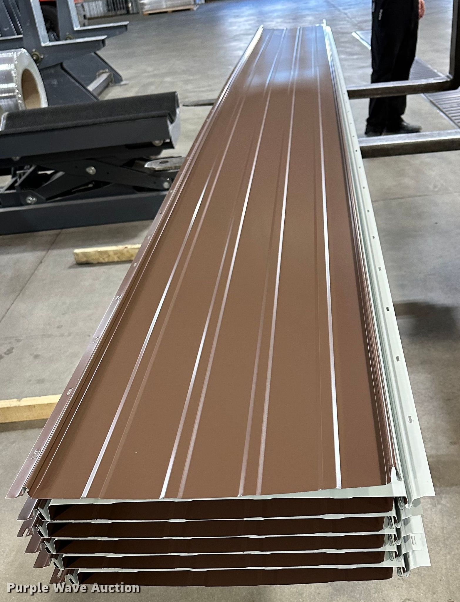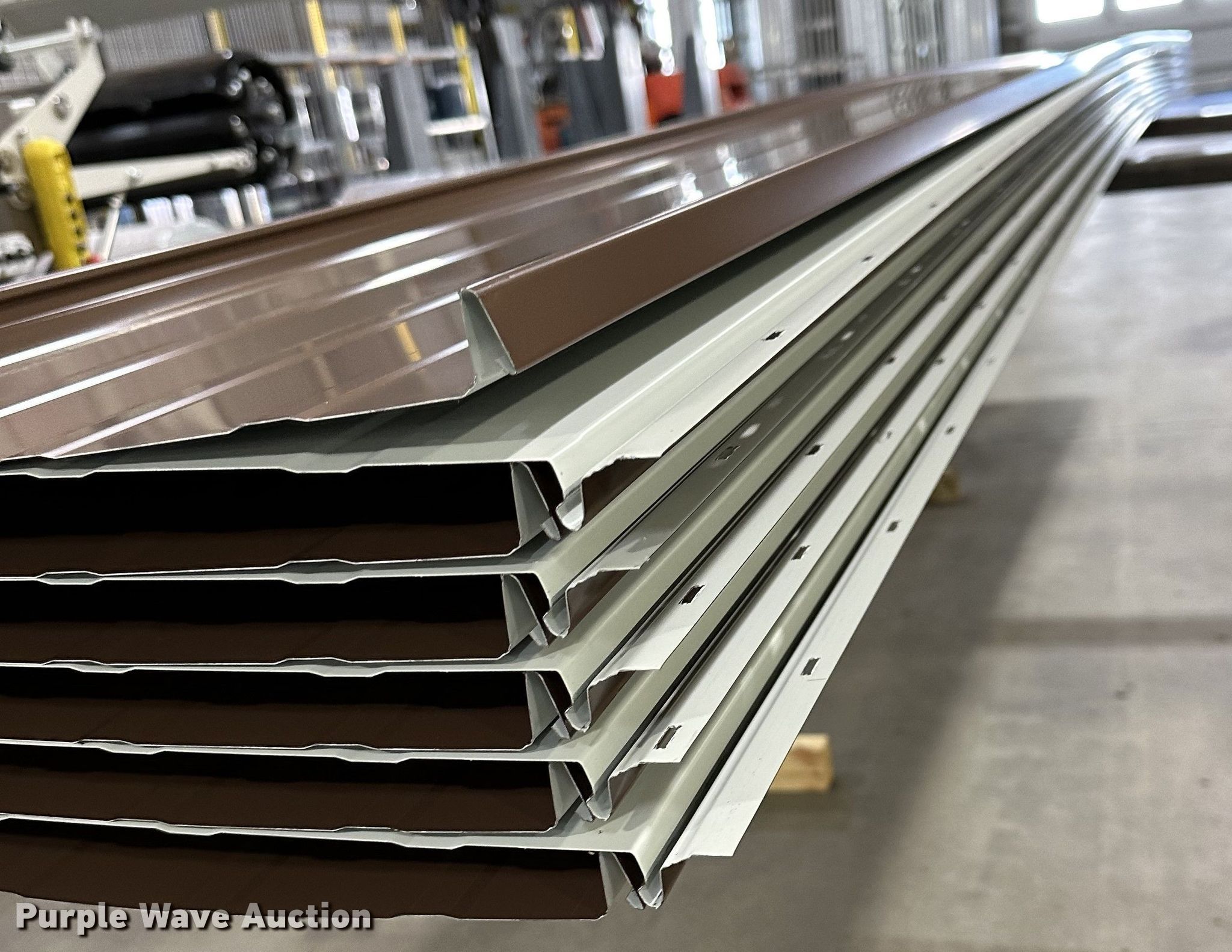 Purple Wave is selling a used Building Materials in North Dakota. This item is a (49) sheets of metal siding/roofing with the following: (11) 14' 3" X 36", (38) 10' X 36", Snap lock panel, 29 gauge, Color: Brown, Possible blemishes, Unused