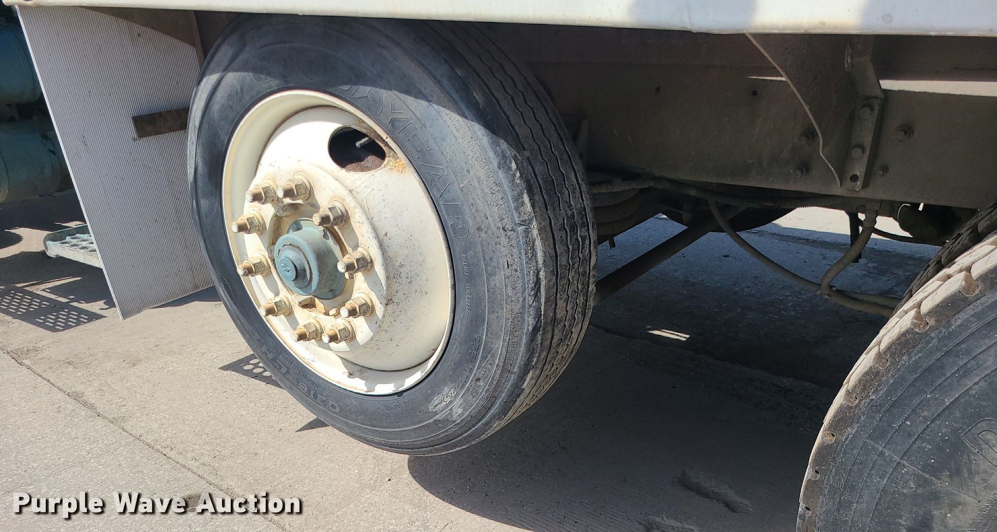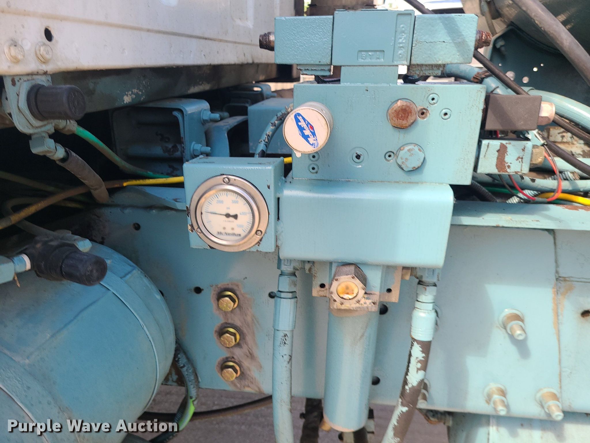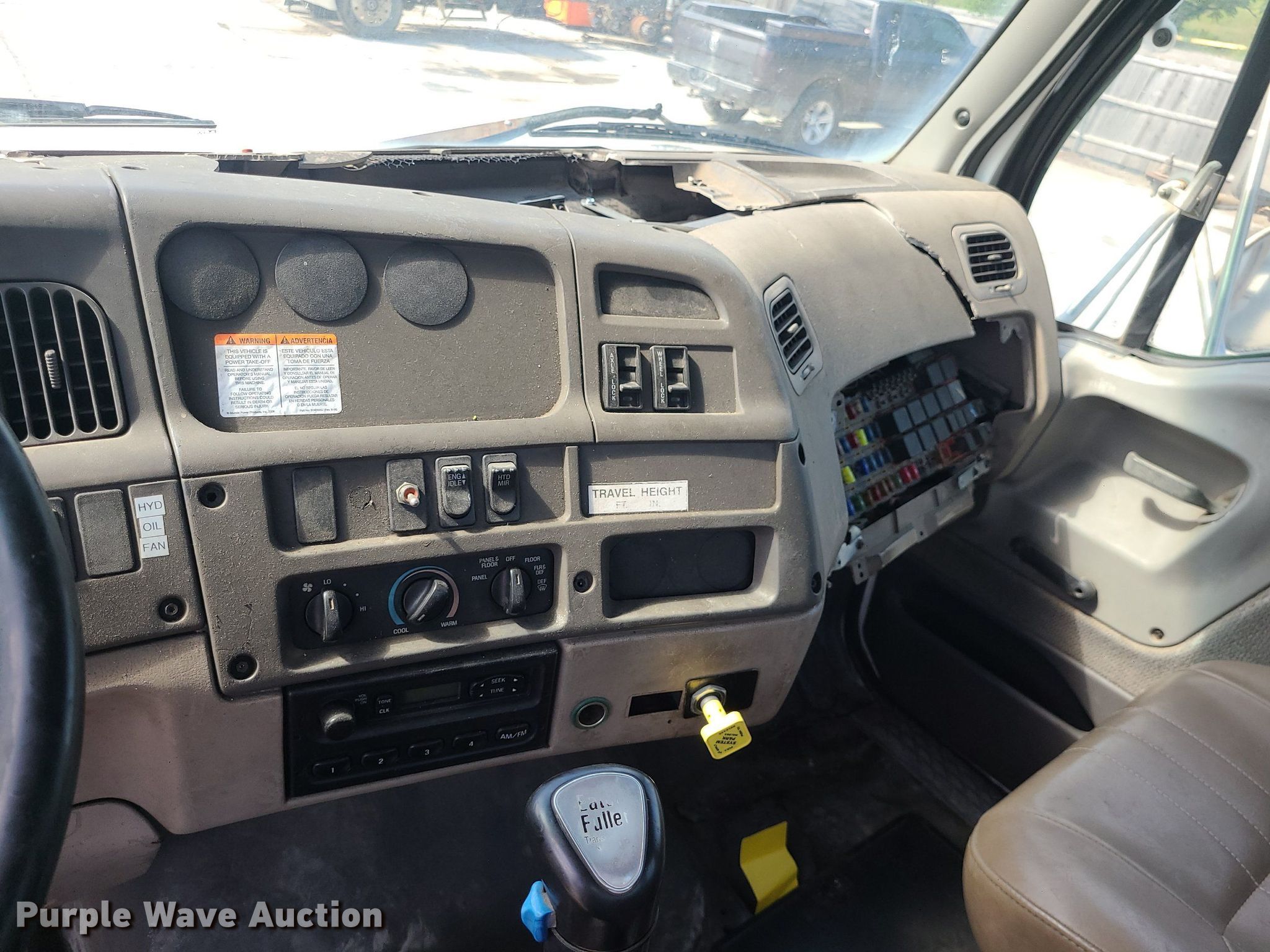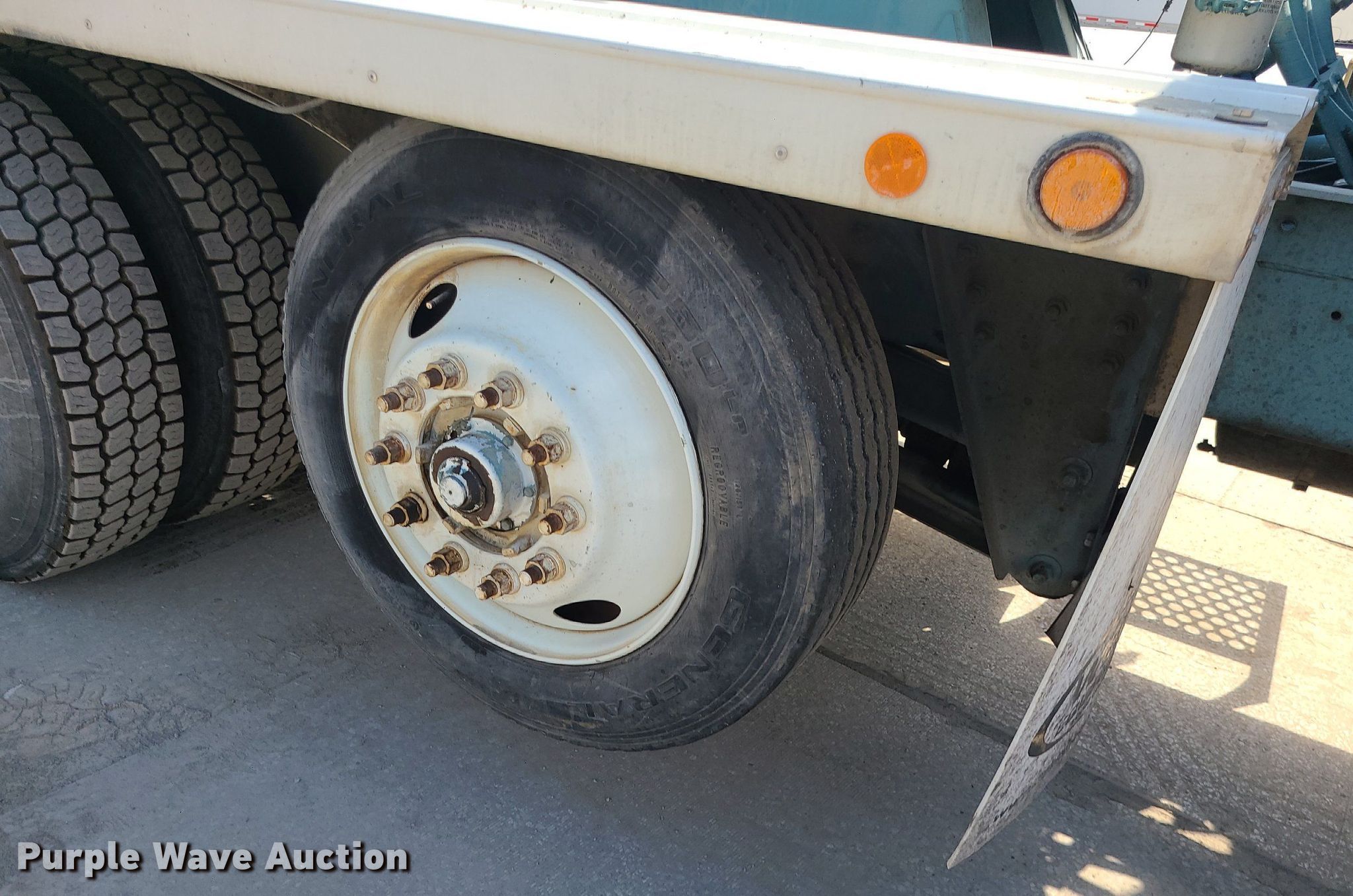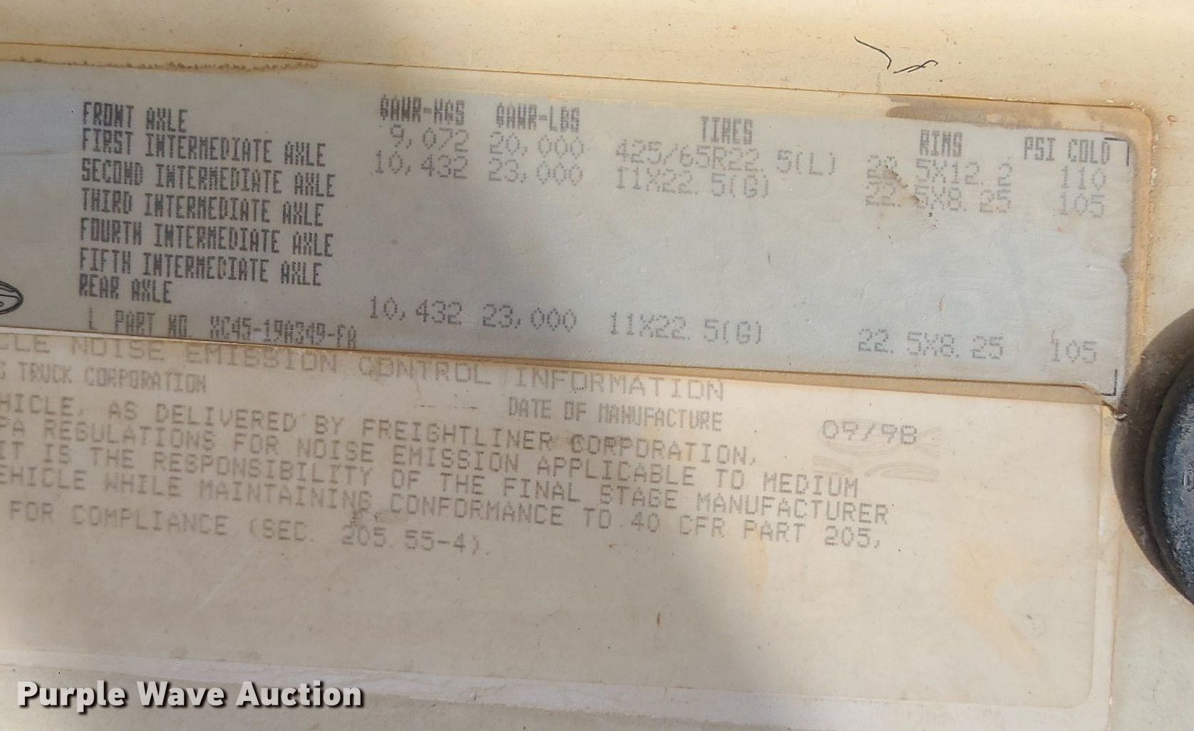 1999 Sterling L-Line ready mix truck. Miles: 116,091 on odometer, VIN: 2FZNNMCB0XAB07968. Engine Cummins ISM, Displacement: 10.8L, Cylinders: 6, Fuel type: Diesel. Transmission Eaton Fuller, Manual. Chassis Axles: Quad, Pusher axle, Tag axle, Differential lock: Full, Suspension: Spring over walking beam, Brakes: Air, PTO, GVWR: 62,000 lbs. Interior Heat. Features Mixer McNeilus, Capacity: 10.5 cu.yd., Discharge: Rear, In-cab controls, Rear drum controls, Chute Extensions: 3, Chute type: Steel.. Tires Front: 425/65R22.5, Rear: 11R22.5 , Lift axle: 255/70R22.5. Notes Non-operational power steering. Missouri title. Title distribution may be delayed up to 14 days from verification of funds. Martinez Company LLC. 2001 Blue Ridge Boulevard. Independence, MO 64052