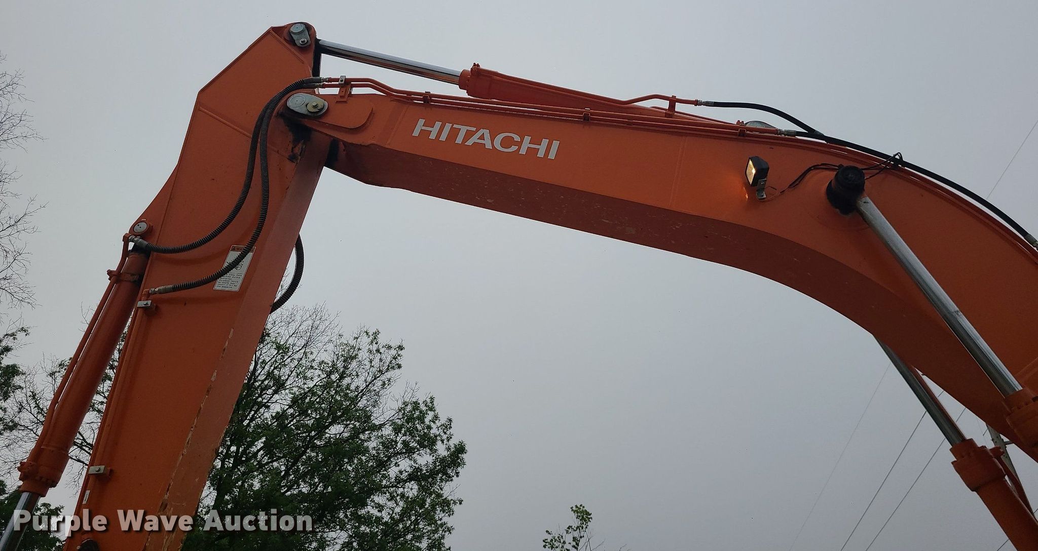 2018 Hitachi ZX350LC-6N excavator. Hours: 1,761 on meter, Serial: 1FFDDR70VHF940325. Engine Cylinders: 6, Fuel type: Diesel. Transmission Hydrostatic, Two speed travel. Operators station Enclosed cab, AC, Heat. Features Auxiliary hydraulics, Boom Standard, Stick Stick length: 162", Quick coupler: Hydraulic, Bucket Width: 32", Cutting edge: Bolt-on, Teeth: 4. Tracks Width: 27.5", Grouser pads: Triple. J & N Utilities Inc.. 1455 Southeast AA Highway. Blue Springs, MO 64014