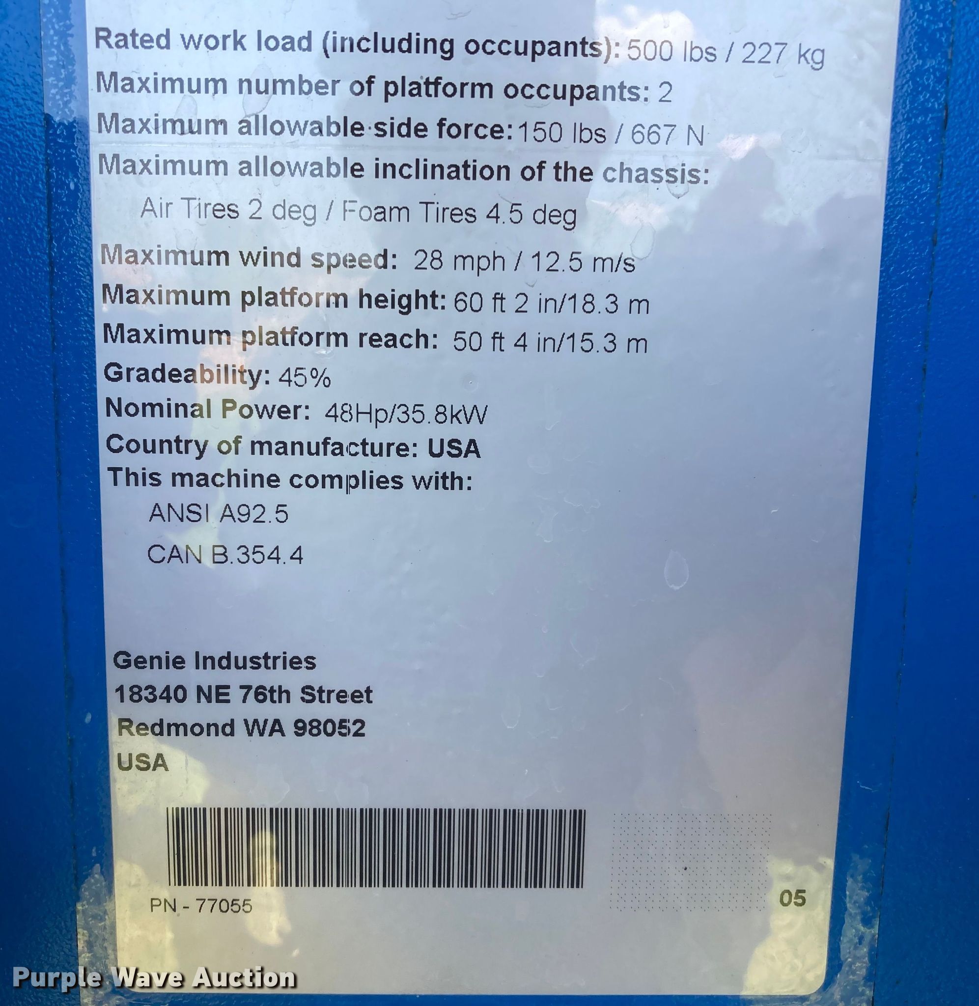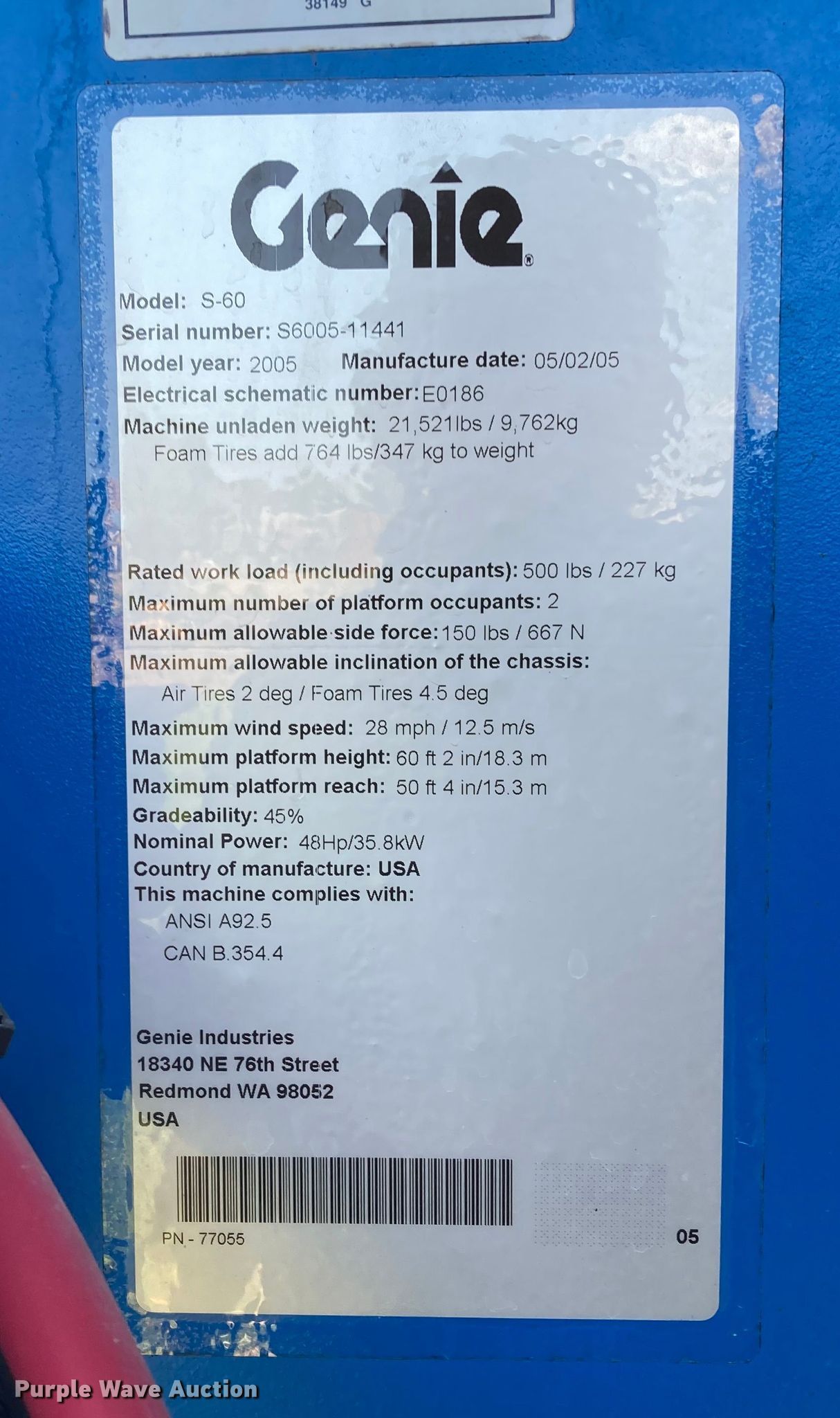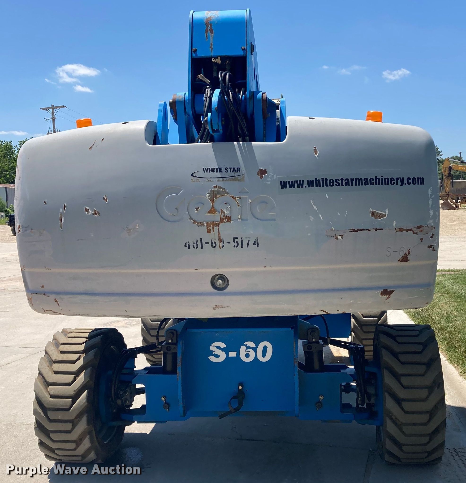 Purple Wave is selling a used Boom Lift in Kansas. This item is a 2005 Genie S-60 boom lift with the following: Hours: 3,352 on meter, Serial: S6005-11441