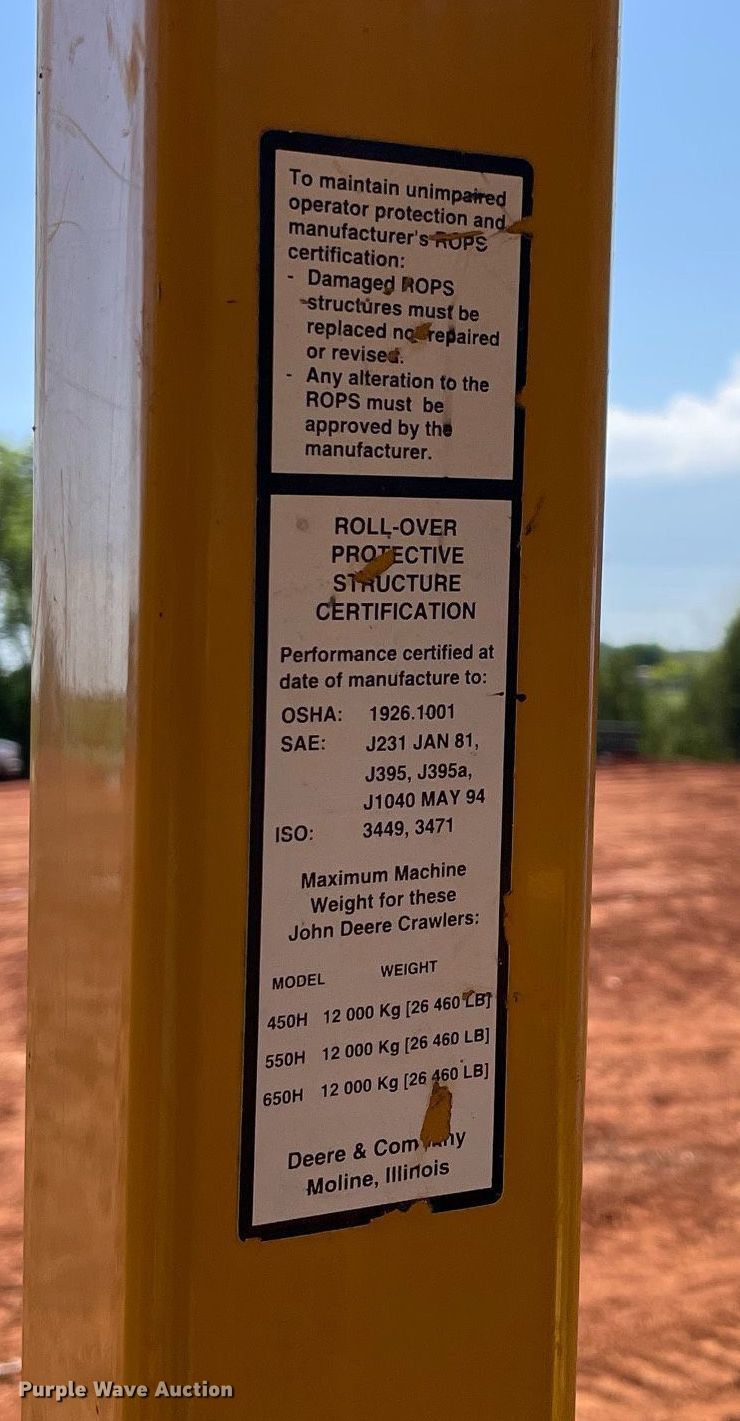 Purple Wave is selling a used Crawler Dozer in Oklahoma. This item is a 2004 John Deere 450H dozer with the following: Hours: 3,145 on meter, Serial: T0450HX926816