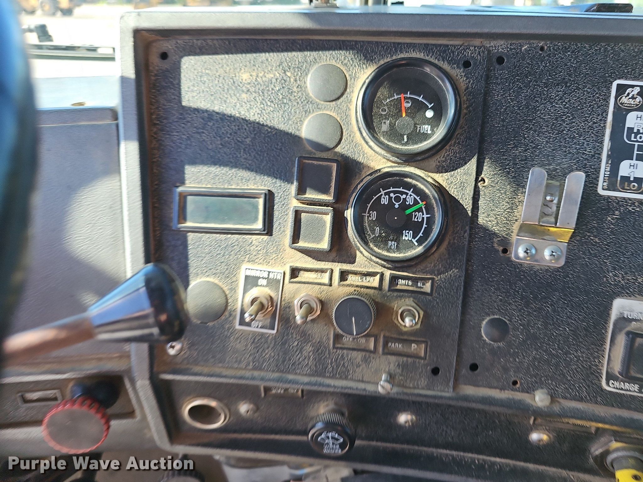 1995 Mack RD690S water truck. Miles: 142,127 on odometer, Hours: 25,070 on meter, VIN: 1M2P264C2SM018507. Engine Displacement: 12.0L, Cylinders: 6, Fuel type: Diesel. Transmission Maxitorque T2070, Manual, Speed: 7. Chassis Axles: Tandem, Suspension: Camelback, Brakes: Air, PTO, Wheelbase: 240". Interior AC, Heat, Heated mirrors. Features Bed / tank Walker 2DOOR, Serial: 72673, Capacity: 3,500 gallons, 17' 3" L x 8' W, Spray bar: Rear, Side discharge, Top fill, Rear outlet: 2.5". Tires Size: 11R24.5, Brand: Kelly. Kansas title. Manhattan, KS 66502