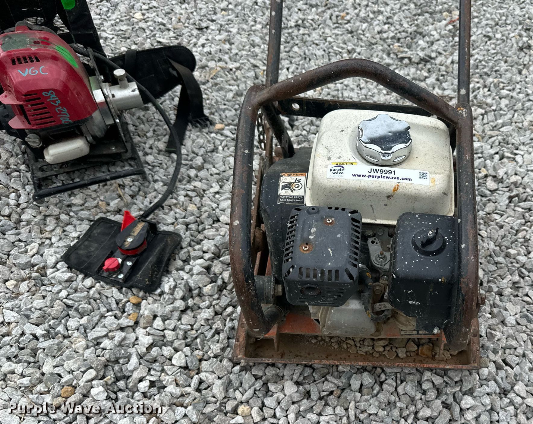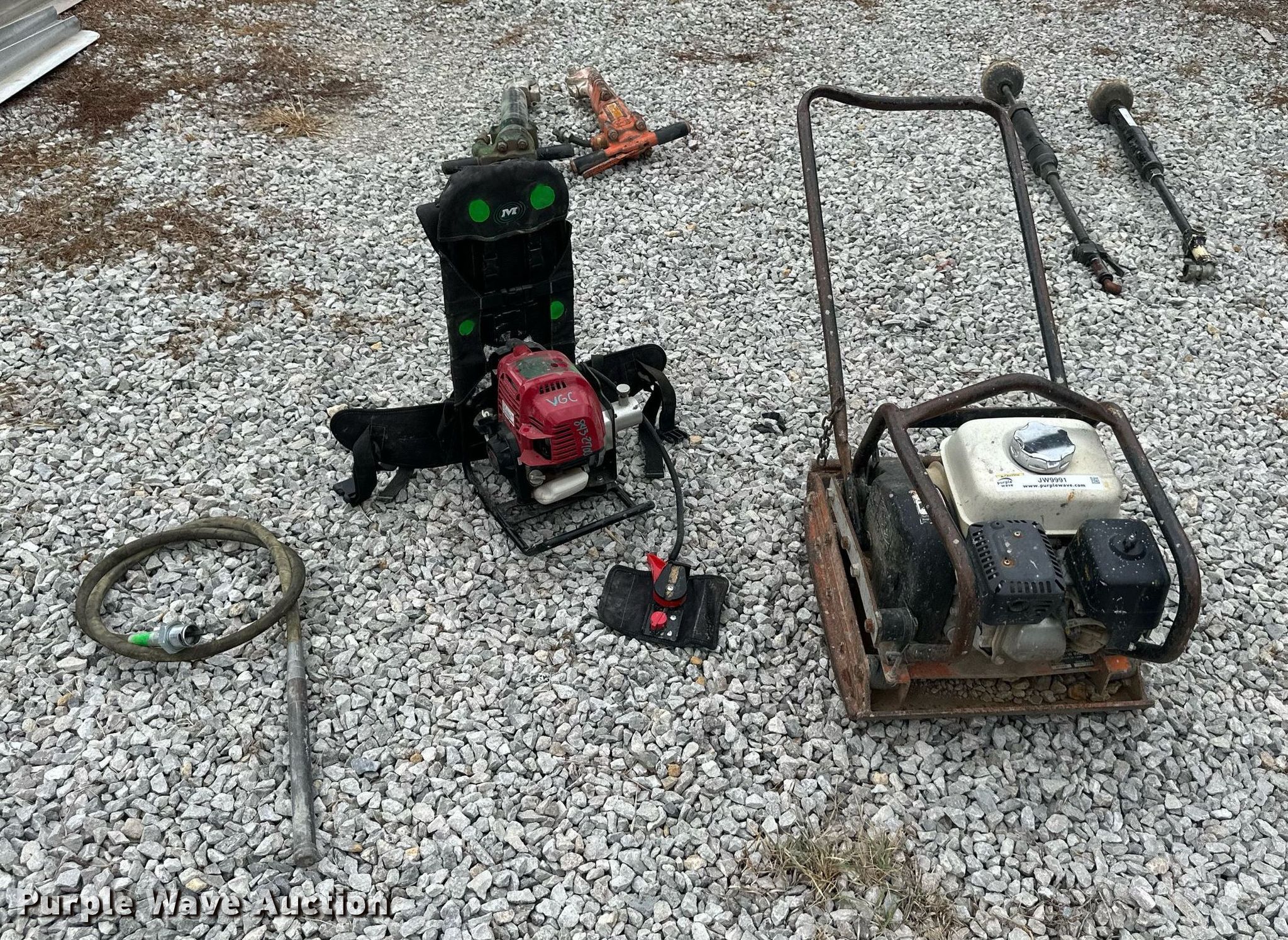 Purple Wave is selling a used Concrete Equip. or Acces. in Kansas. This item is a Concrete equipment with the following: Plate compactor, Honda single cylinder gas engine, Concrete vibrator, Honda gas engine