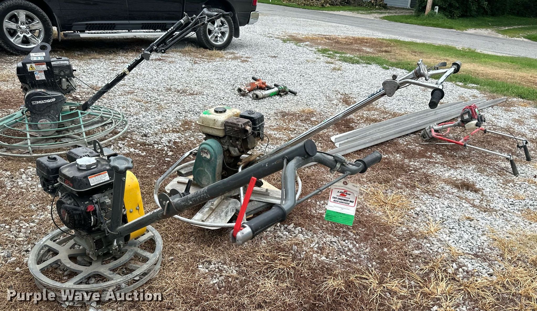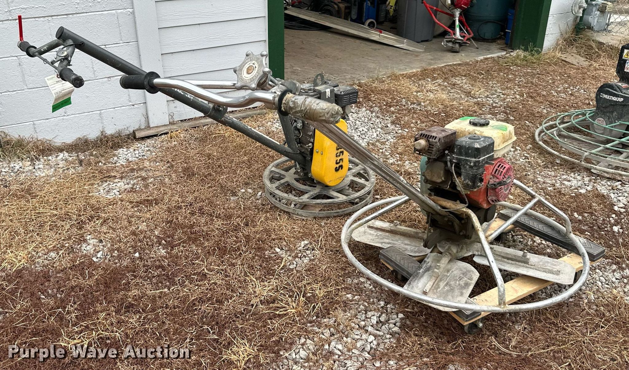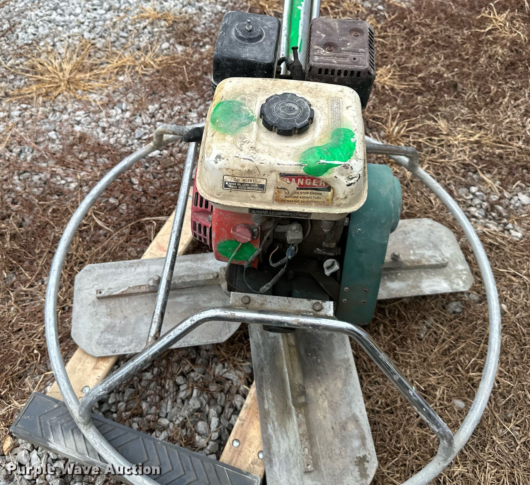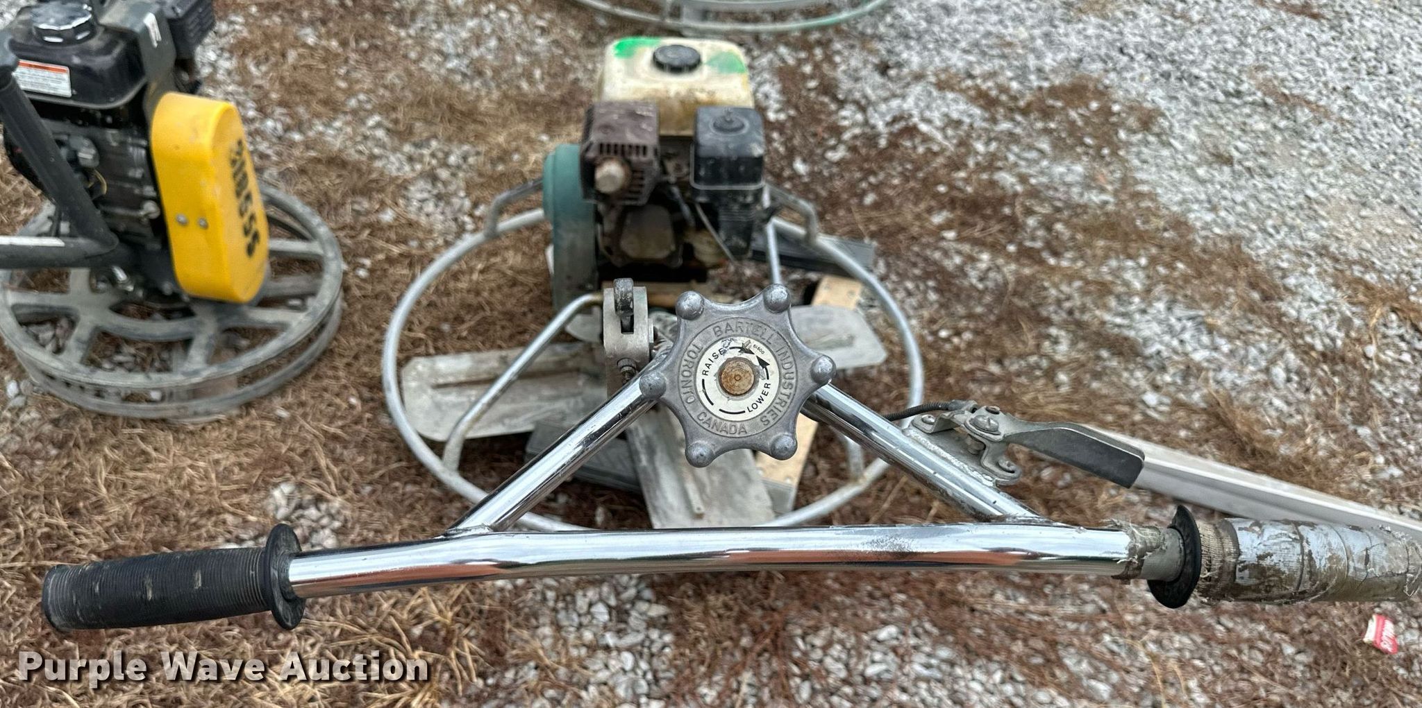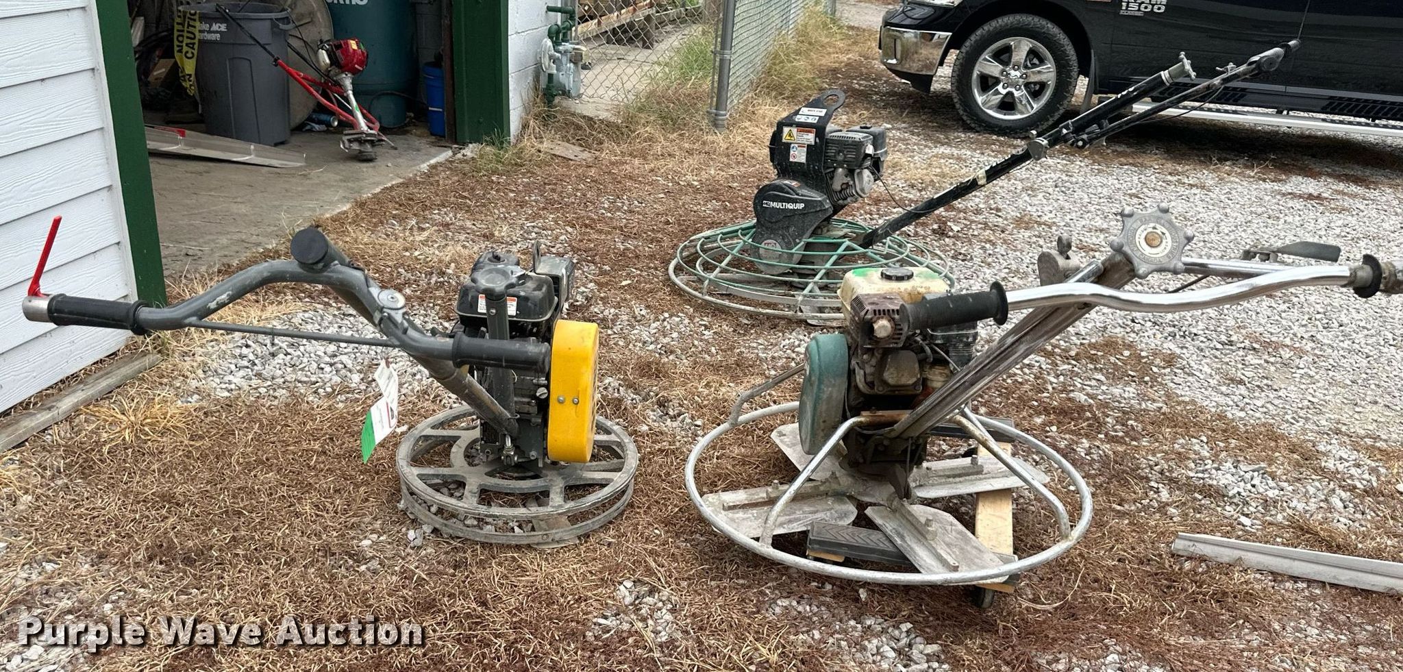 Purple Wave is selling a used Concrete Equip. or Acces. in Kansas. This item is a (2) power trowels with the following: Wacker, 24" W, Honda gas engine, Bartell, 36" W, Honda gas engine