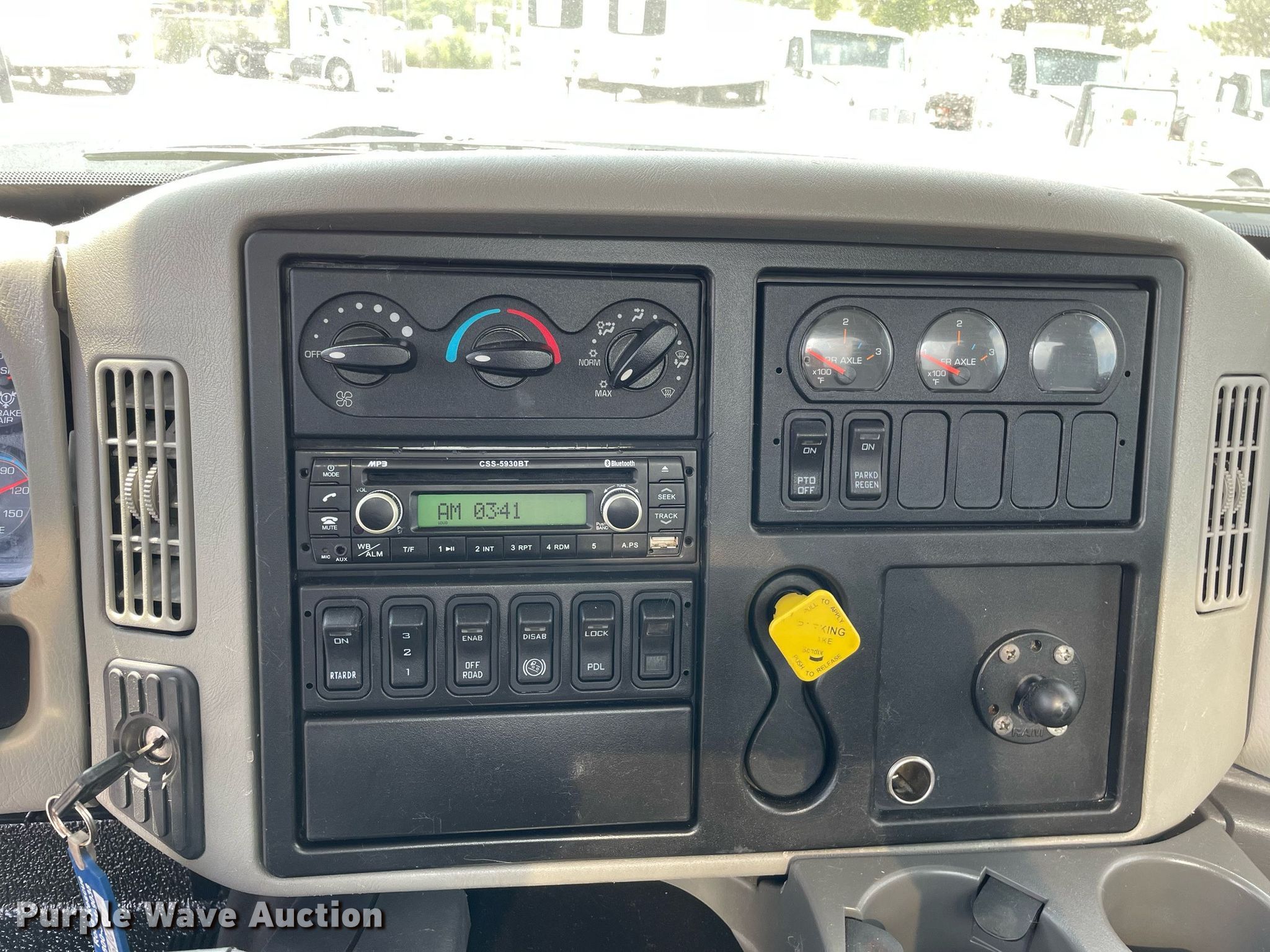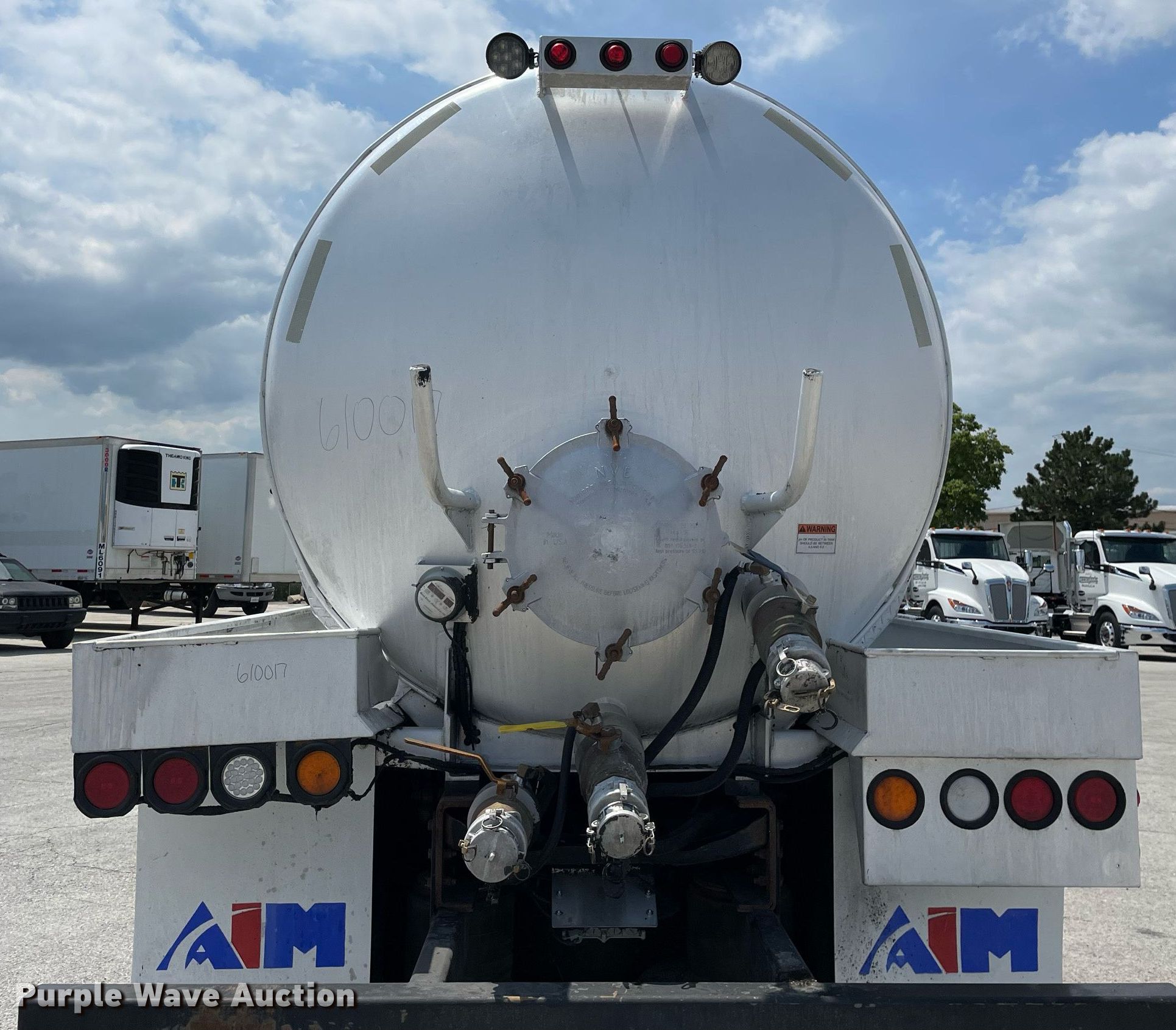 2016 International WorkStar 7600 vacuum truck. Miles: 442,928 on odometer, Hours: 14,918 on meter, VIN: 3HAGSSNT9GL217336, Unit #: 610017. Engine International A410, Displacement: 12.4L, Cylinders: 6, Fuel type: Diesel. Transmission Automatic. Chassis Axles: Tandem, Pusher axle, Suspension: Air, Brakes: Air, PTO, GVWR: 60,000 lbs. Interior AC, Heat, Heated mirrors, Power windows, Cruise control. Features Tank bed 2015 Advance Pump and Equipment, Capacity: 4,750 gallons, Top hatches: 3, Rear outlet: 3", Water pump General pump TS2021, PSI: 3500, GPM: 5, Vacuum pump Challenger 607P-FD. Tires Front: 425/65R22.5, Rear: 11R22.5, Lift axle: 255/70R22.5. Ohio title. Aim Transportation Solutions. 16055 Van Drunen Road. South Holland, IL 60473