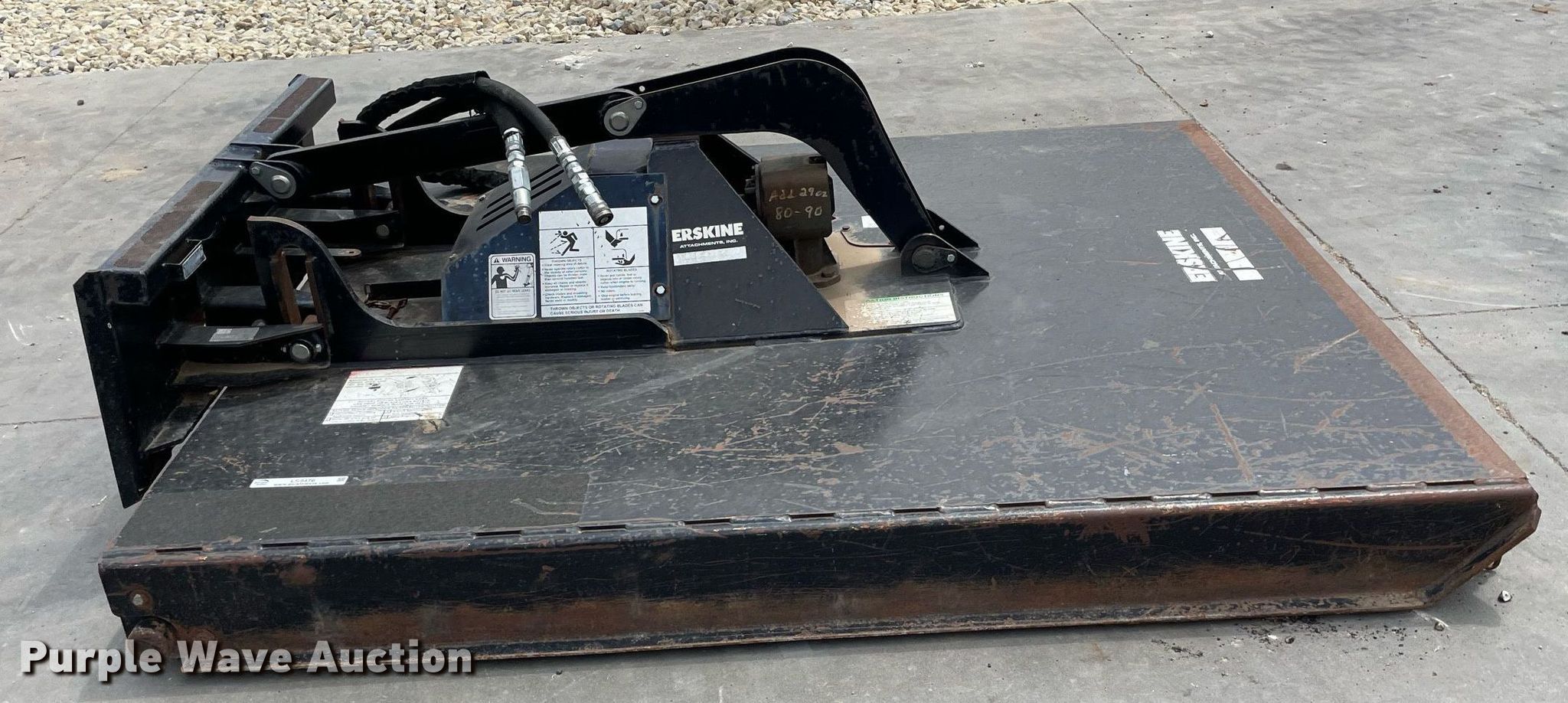 Purple Wave is selling a used Skid Steer Attach. in Kansas. This item is a Erskine skid steer rotary mower with the following: Serial: 1033932