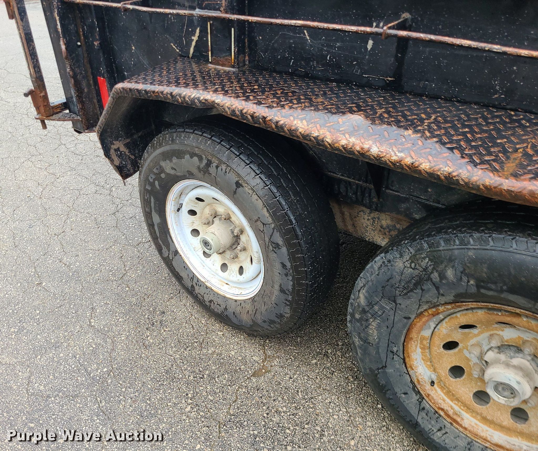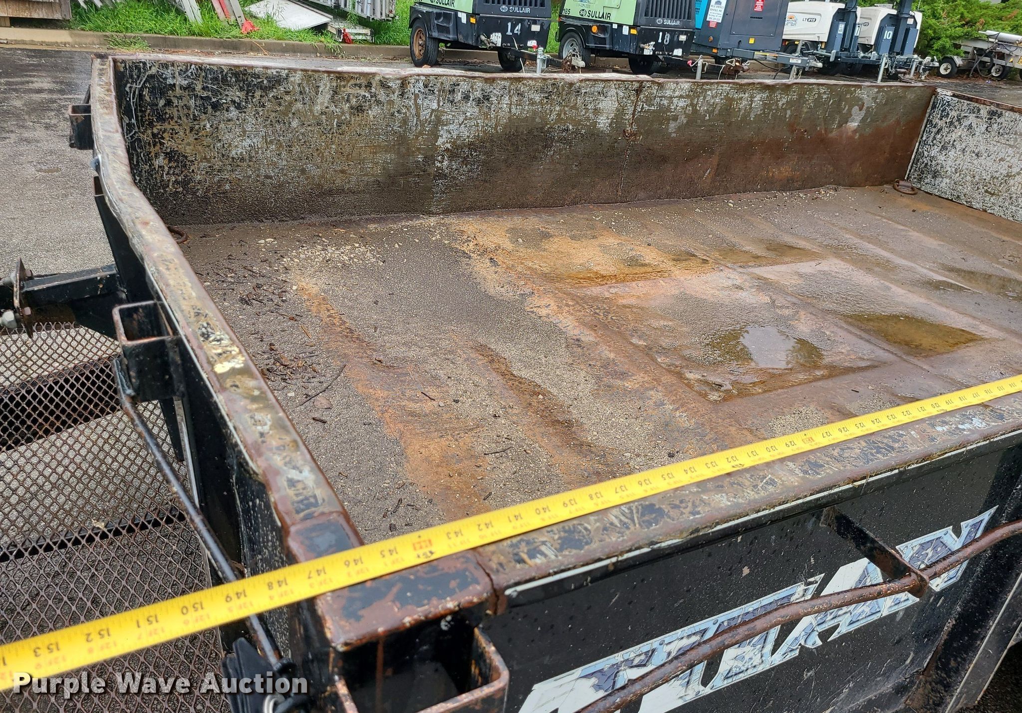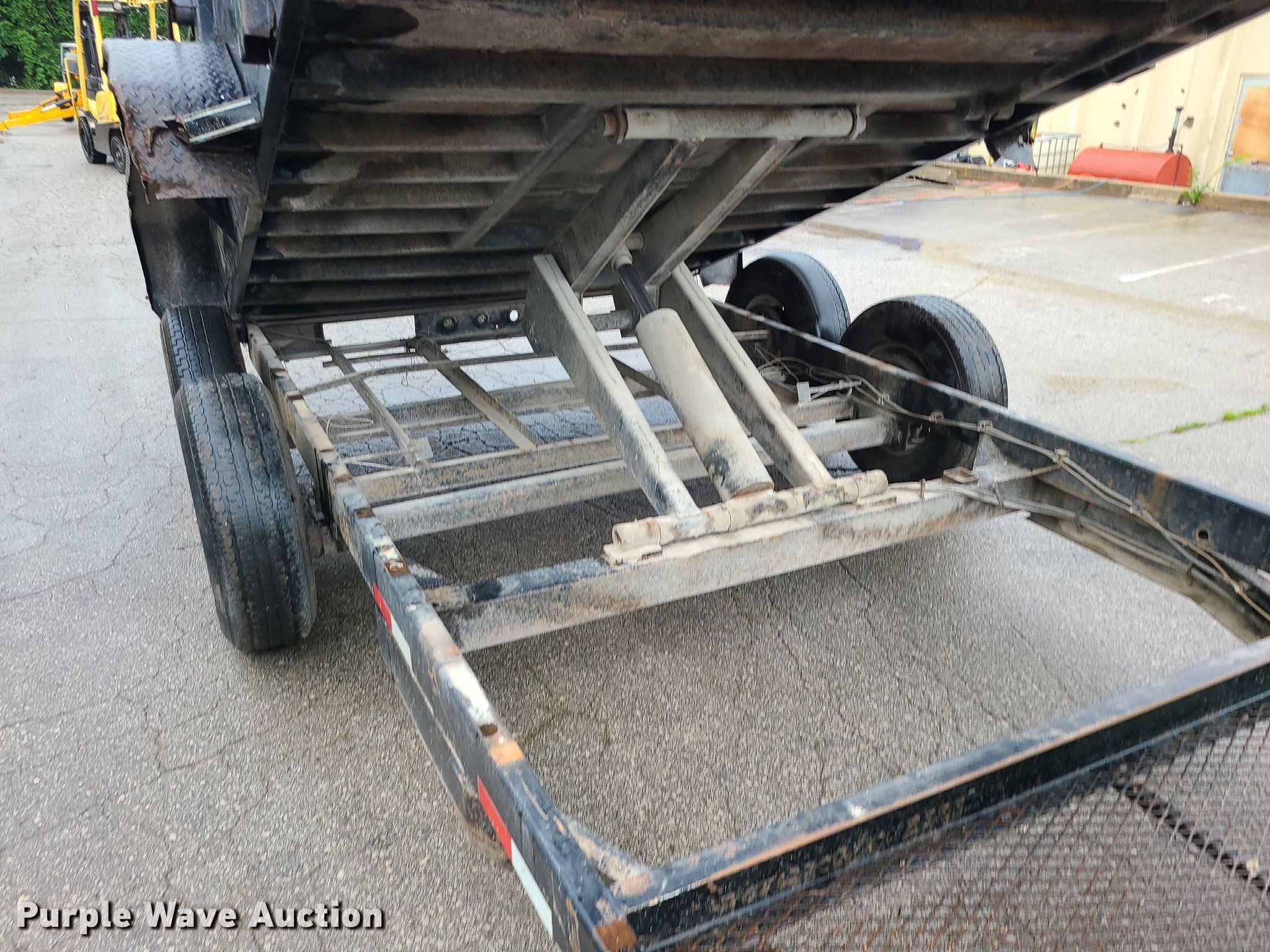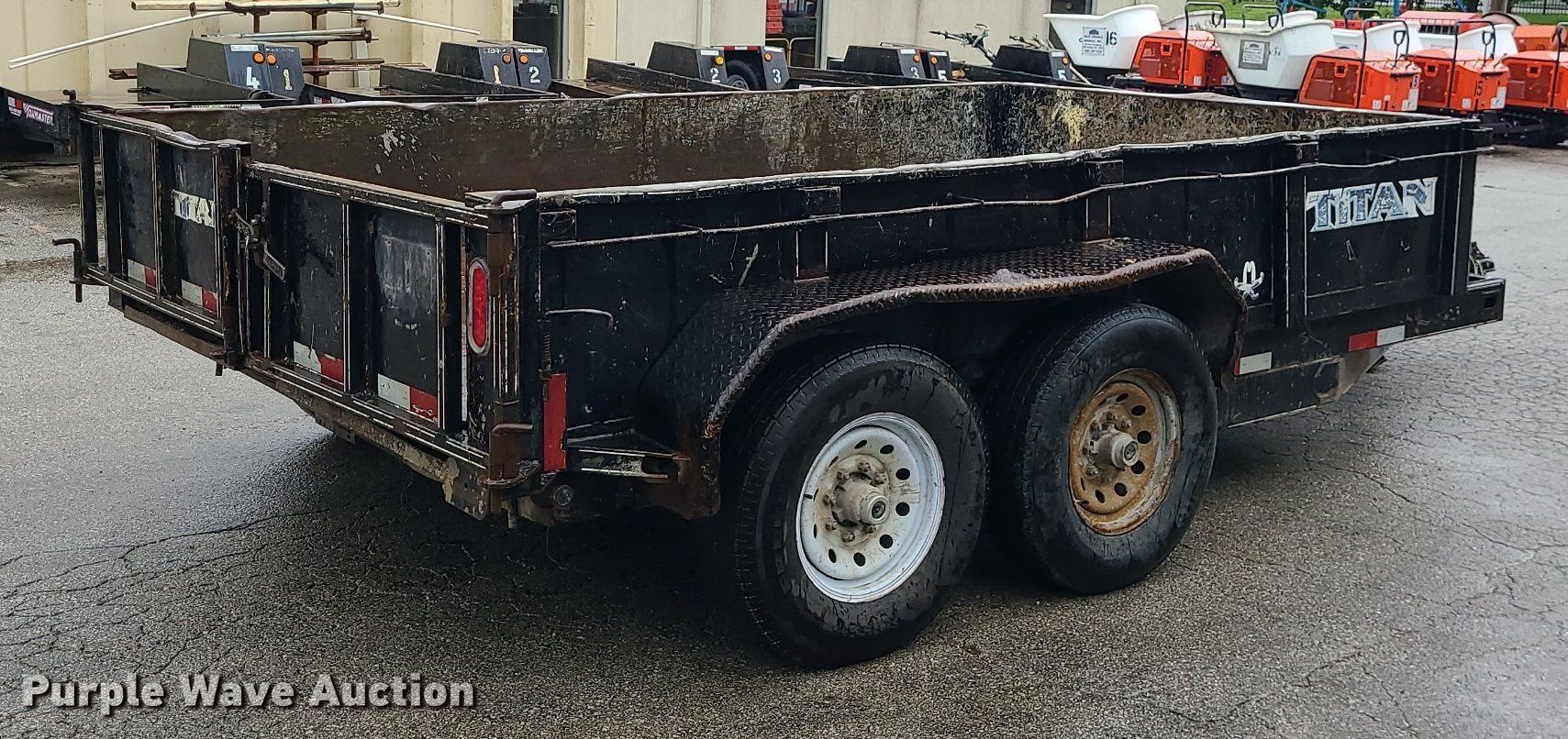 2011 Titan dump trailer. VIN: 4TGF12203B1058599. Dimensions Overall: 20' L x 102" W, Body: 12' L x 82" W, Side height: 18". Features Body type: Steel, Ram: Single, End gate: Manual. Chassis Ball hitch: 2 5/16", Landing gear: Single, Suspension: Spring, Brakes: Electric, Axles: Tandem, GVWR: 14,000 lbs. Tires Size: 235/80R16. Missouri title. Title distribution may be delayed up to 14 days from verification of funds. Blue Springs Rental. 1615 SW US 40 Hwy. Blue Springs, MO 64015